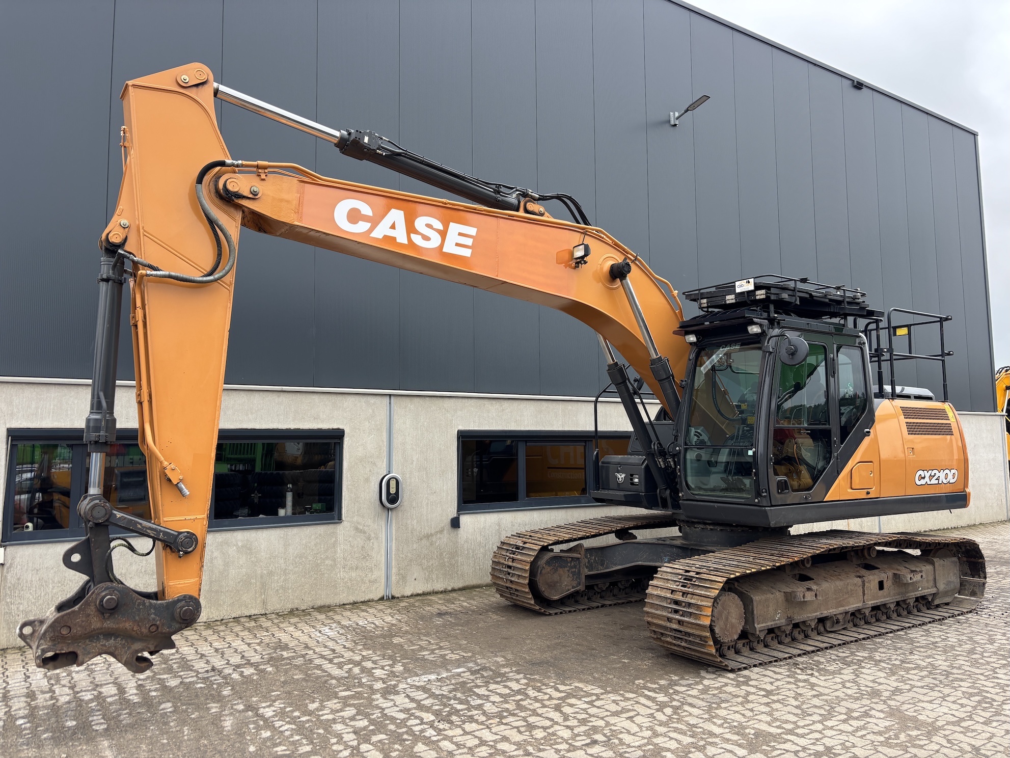 This Case CX210D tracked excavator is equipped with a 4 cilinder water cooled turbo charged Isuzu AR-4HK1X diesel engine with 7254 working hours on the service meter. Hydraulic quick hitch, hydraulic for hammer function, check valves, cab protection panels, safe guards on top, extra work lights, 800mm plates, books, rear and side view camera, airco, radio, electric diesel pump etc..