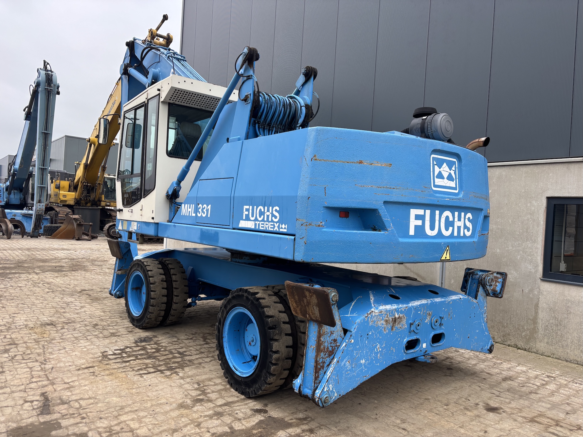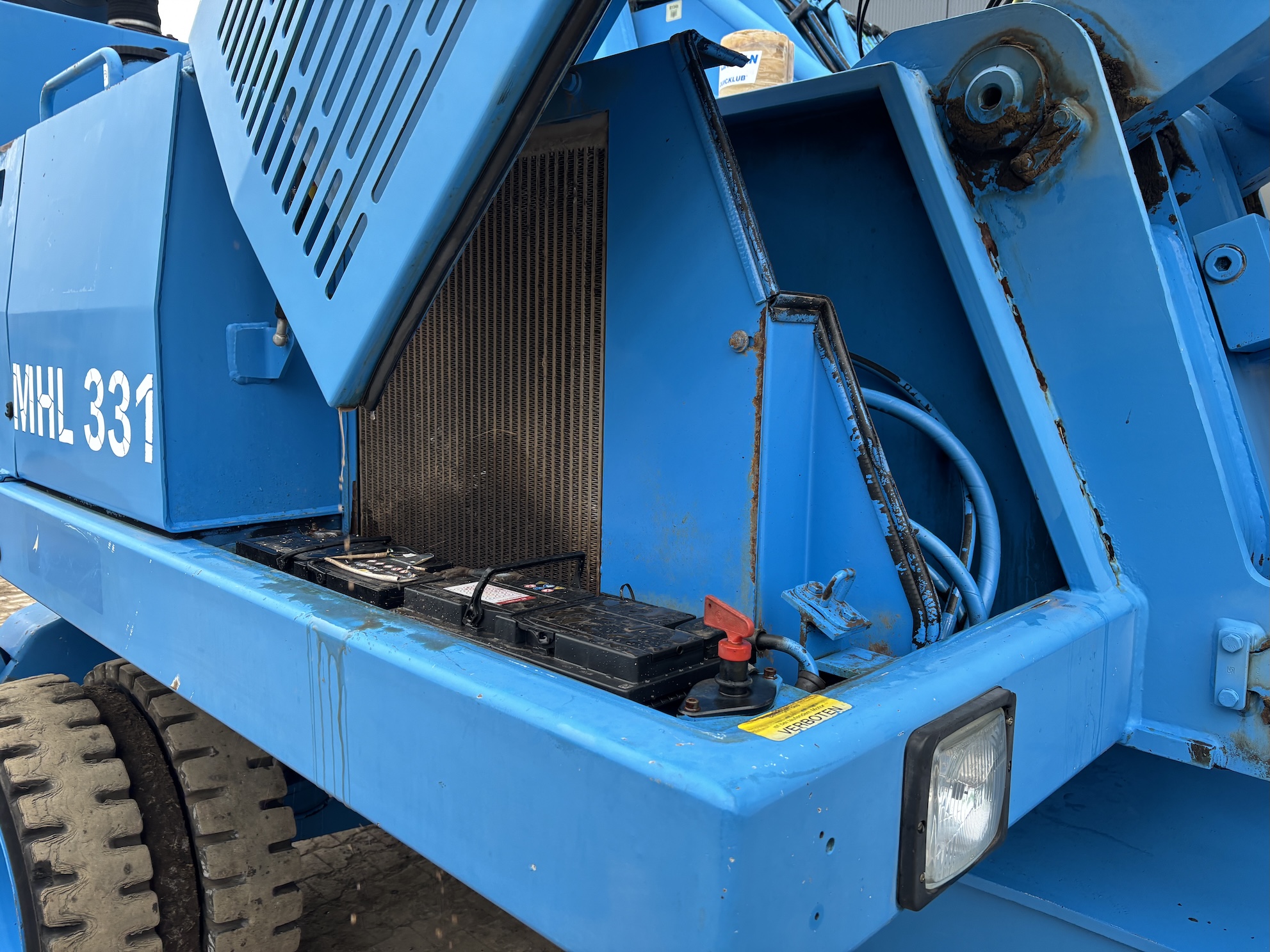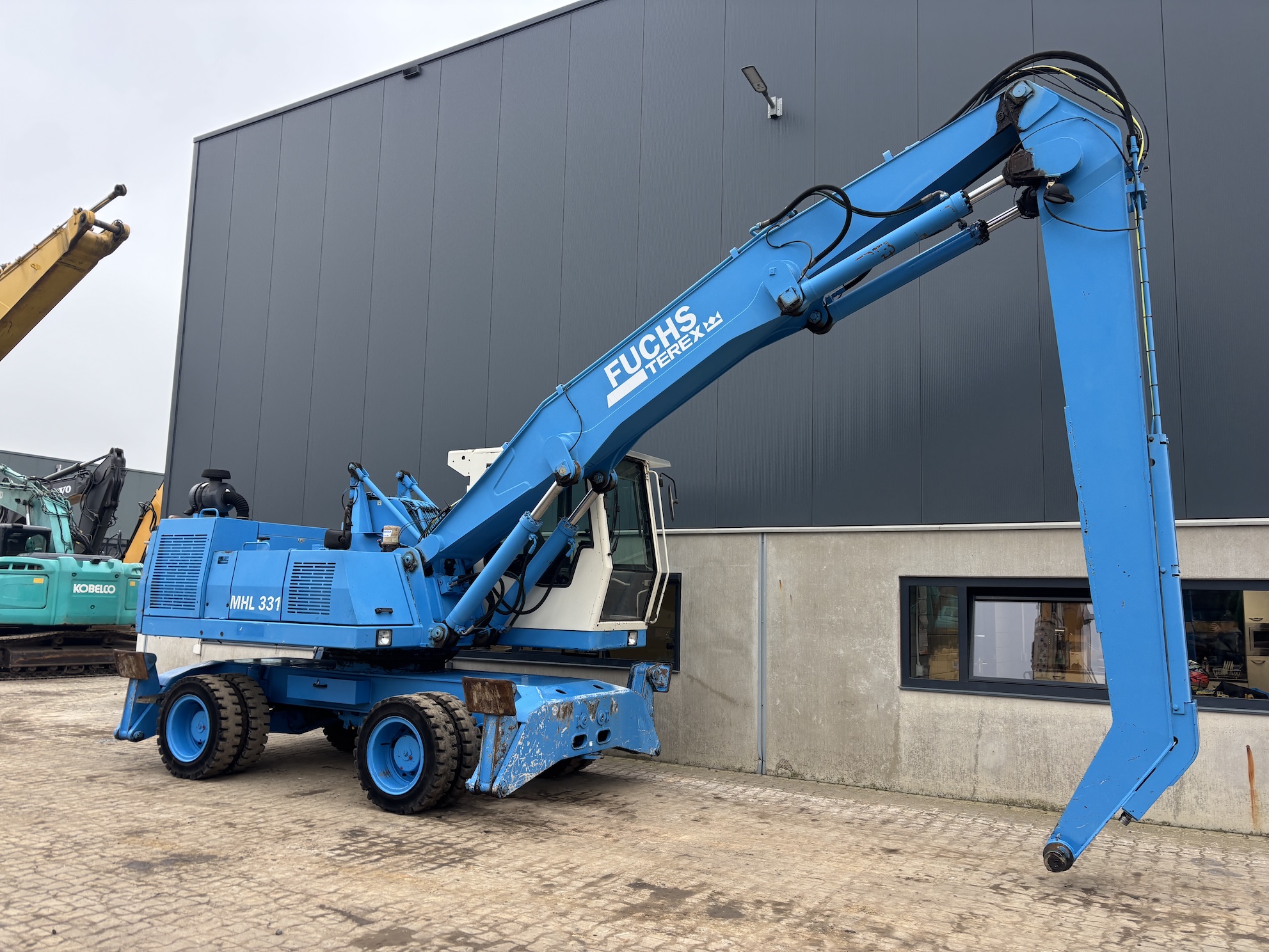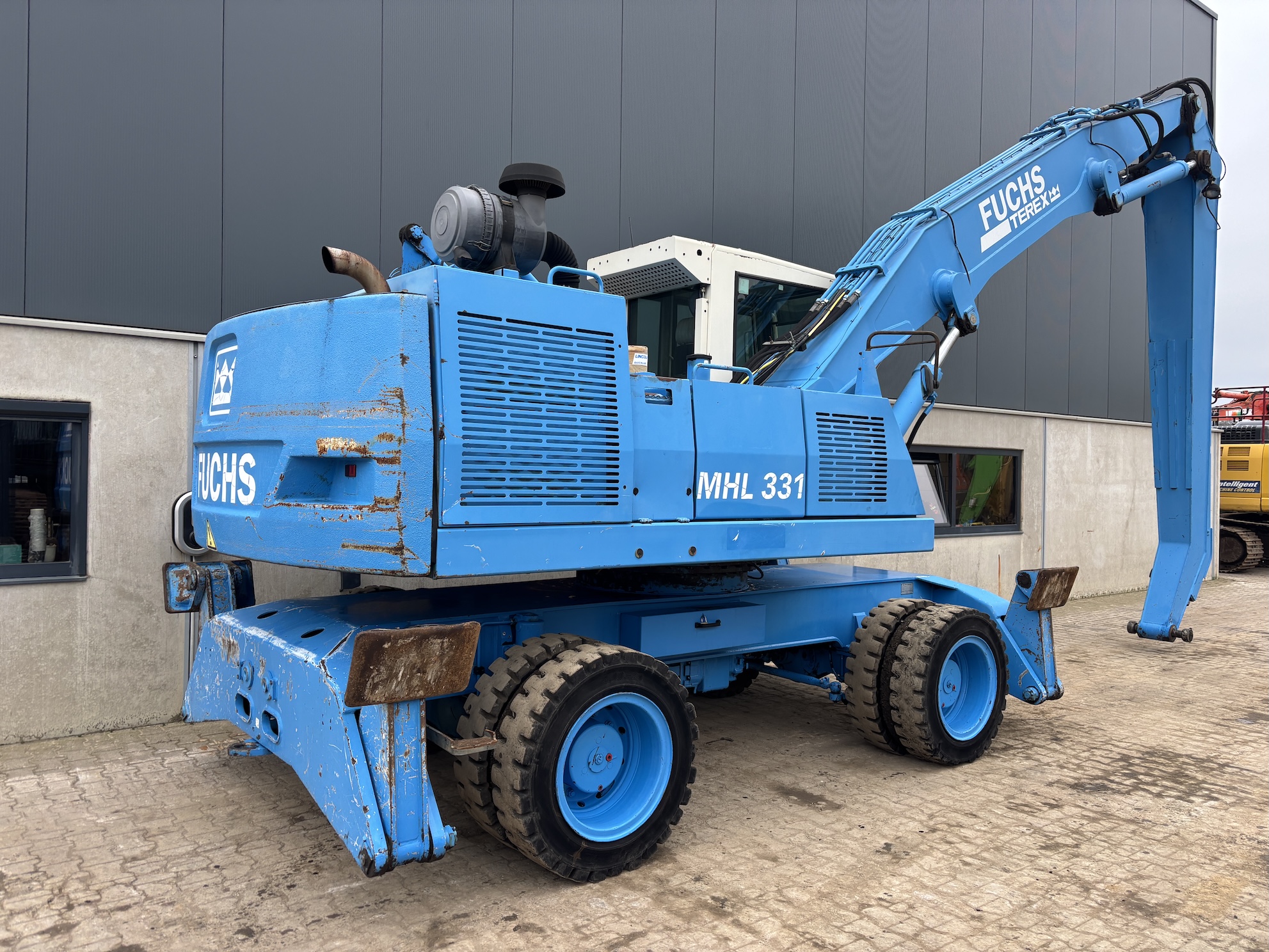 This Fuchs MHL331C is equipped with a 4 cilinder water cooled turbo charged Deutz BF 6M 2012 C (99kW) diesel engine with 14658 working hours on the service meter. 9kW generator for magnet gear, central lubrication, 4x full rubber tires, hydraulic high rise cabin etc.