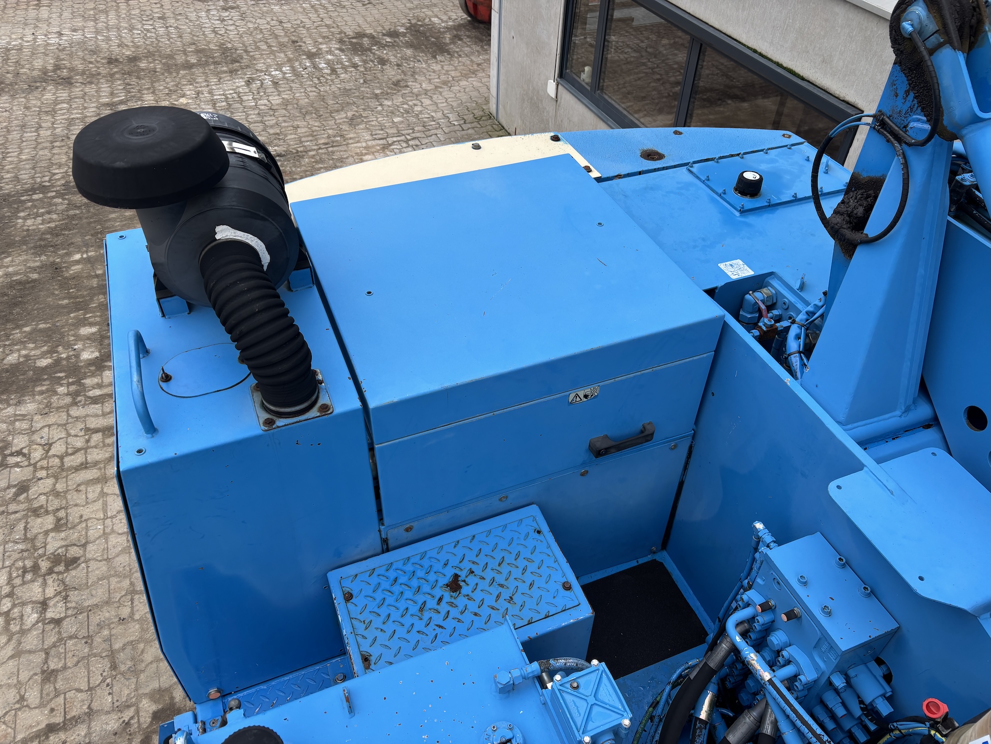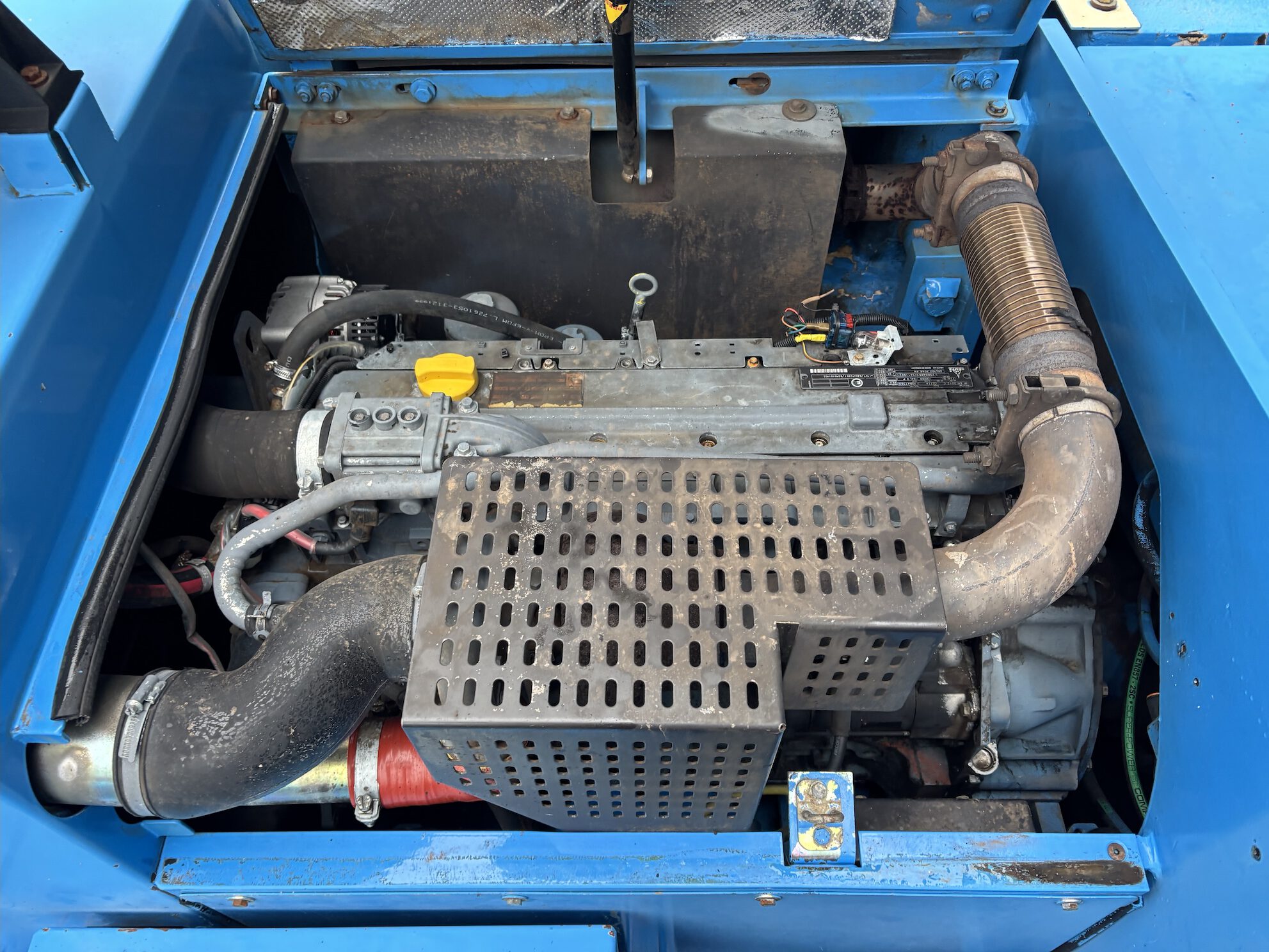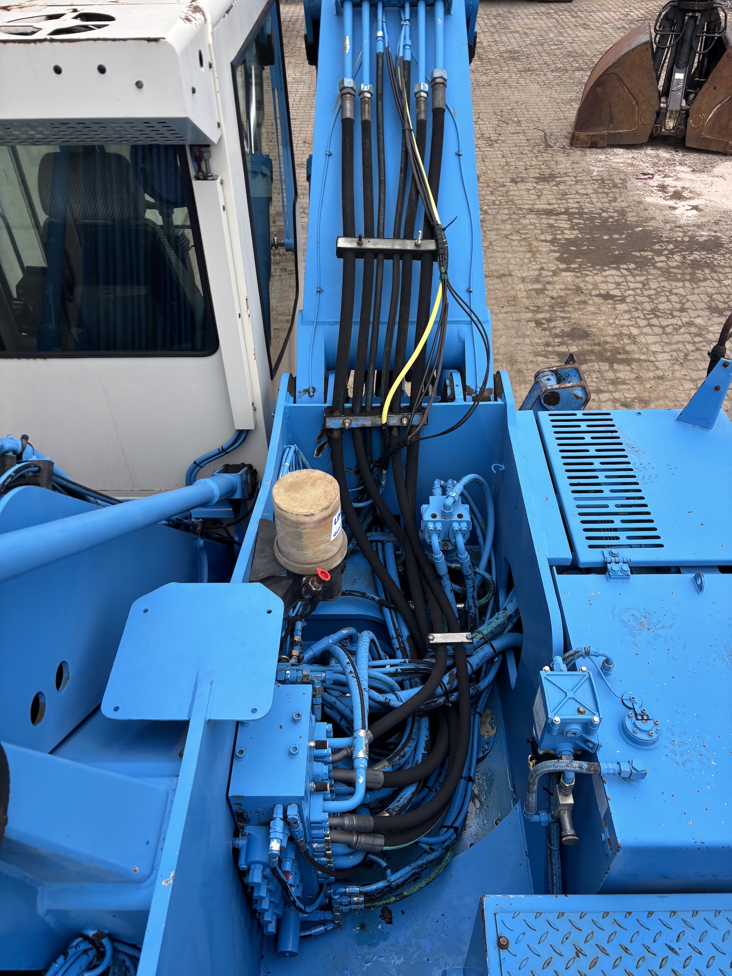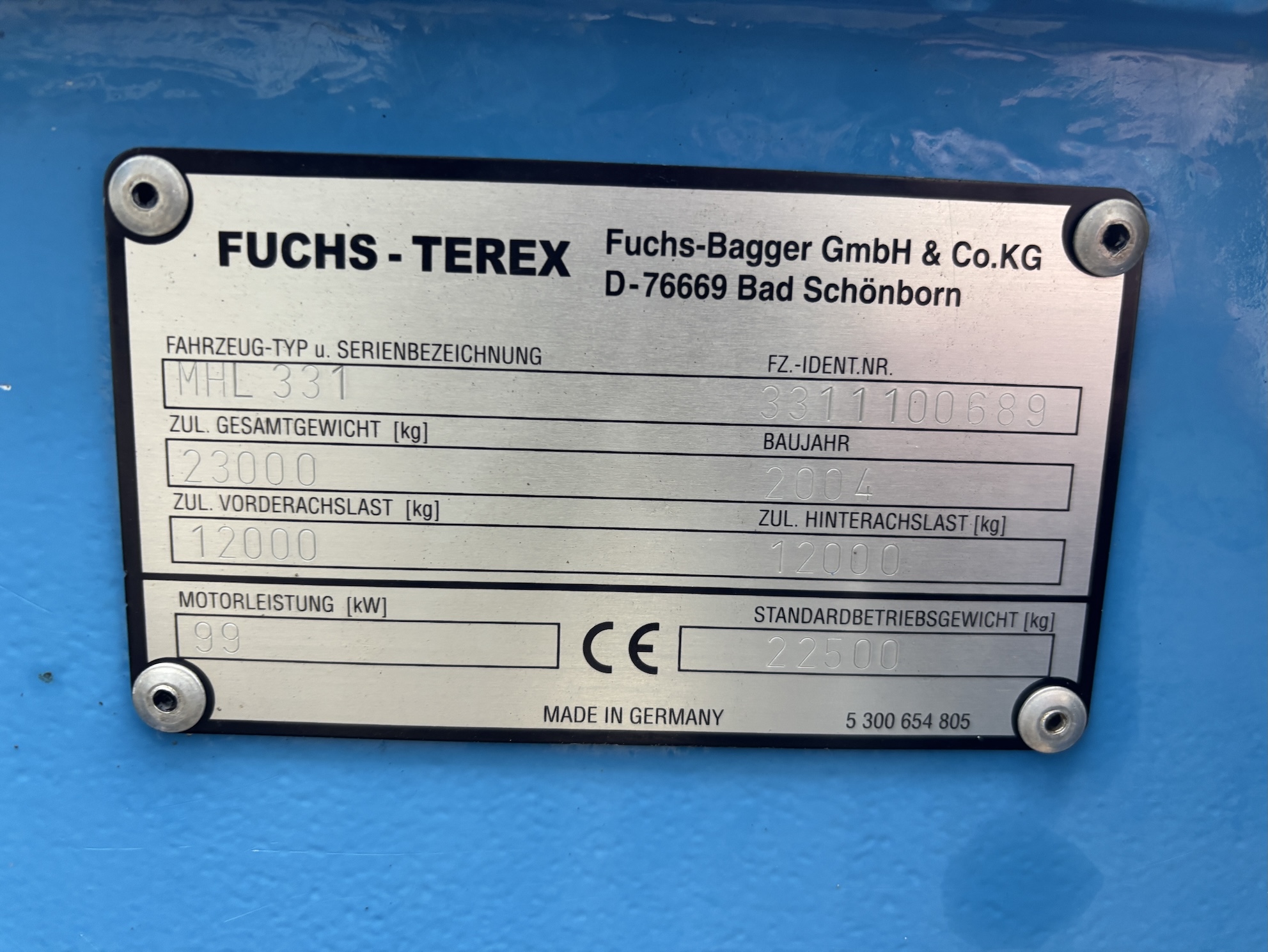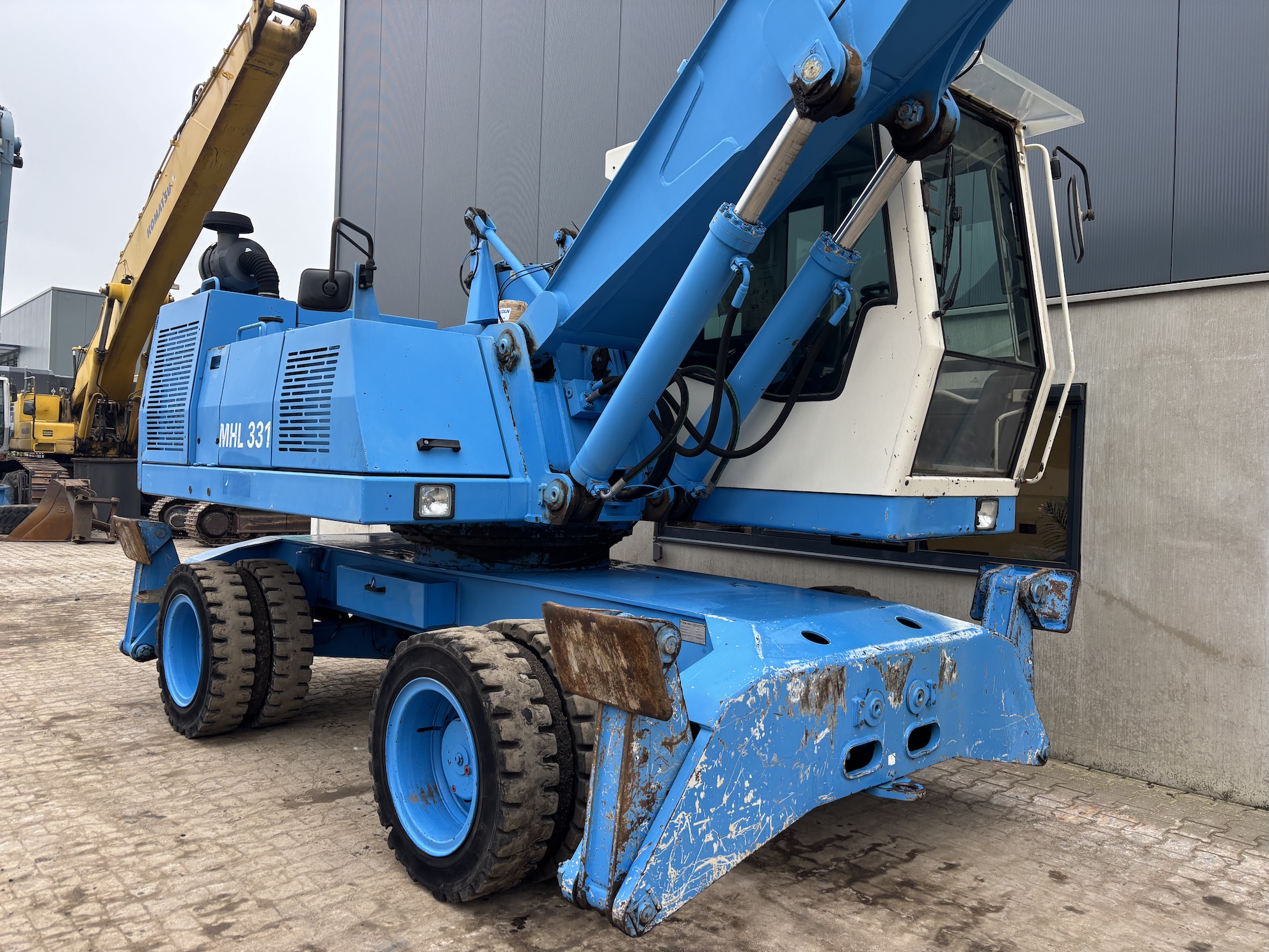This Fuchs MHL331C is equipped with a 4 cilinder water cooled turbo charged Deutz BF 6M 2012 C (99kW) diesel engine with 14658 working hours on the service meter. 9kW generator for magnet gear, central lubrication, 4x full rubber tires, hydraulic high rise cabin etc.