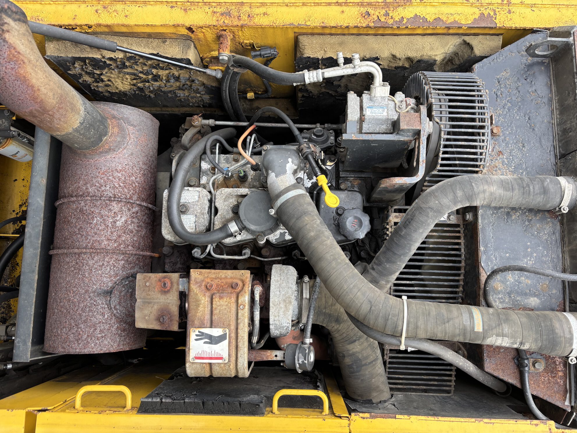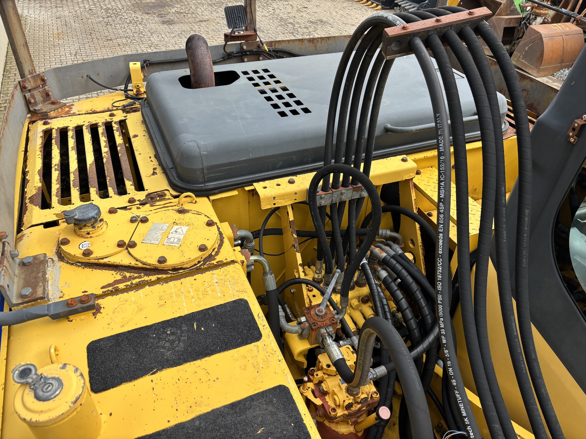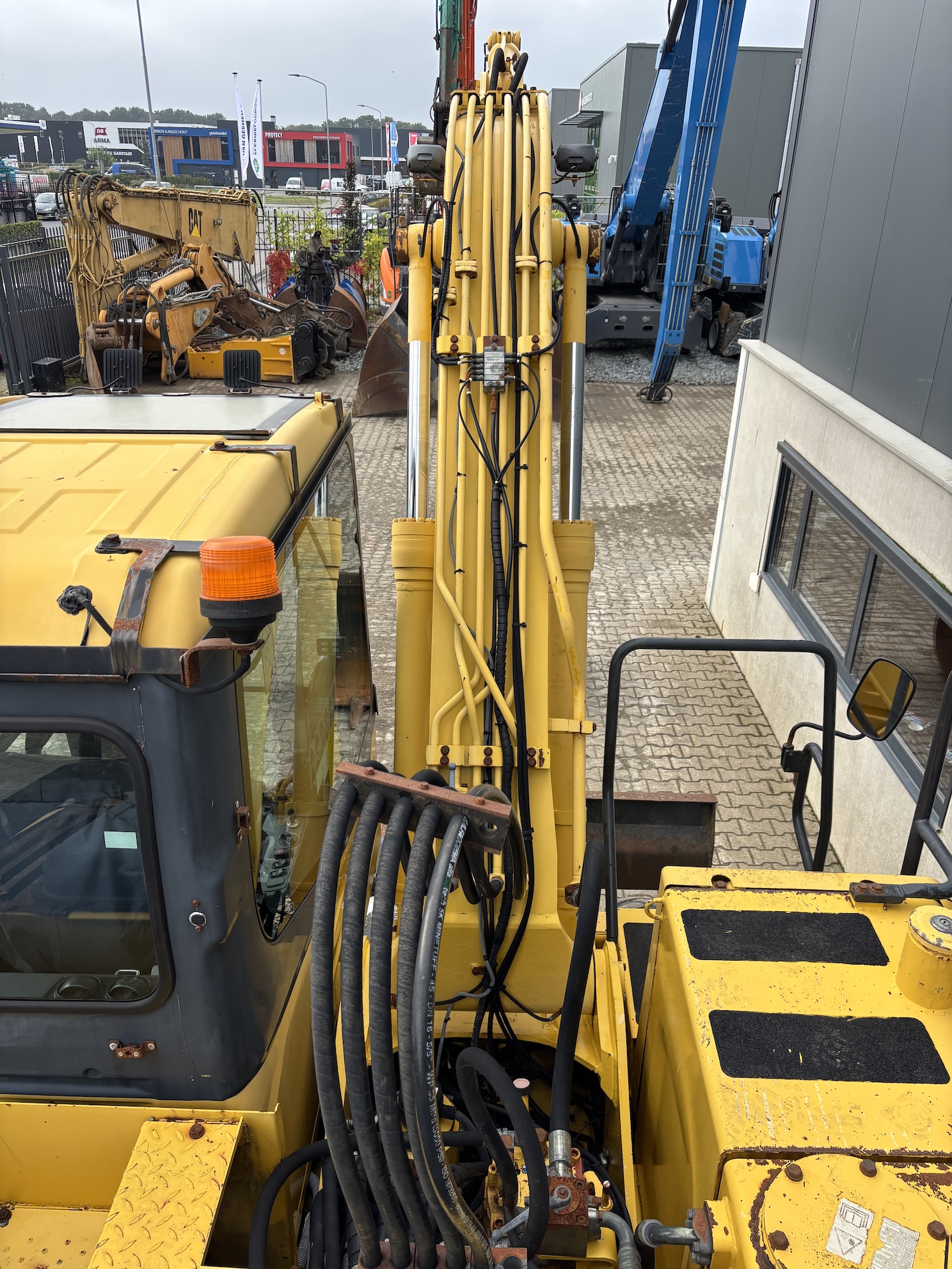 This Komatsu PW160-7 is equipped with a 4 cilinder water cooled turbo charged Komatsu SAA4D107E (88kW) diesel engine with 7552 working hours on the service meter. outriggers, dozer blade, hydraulic quick hitch, teeth bucket, mono boom, additional work lights, safe guard rails, camera (not working), airco, radio etc.