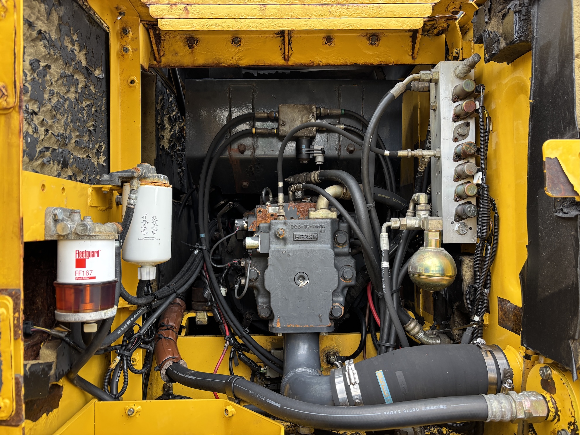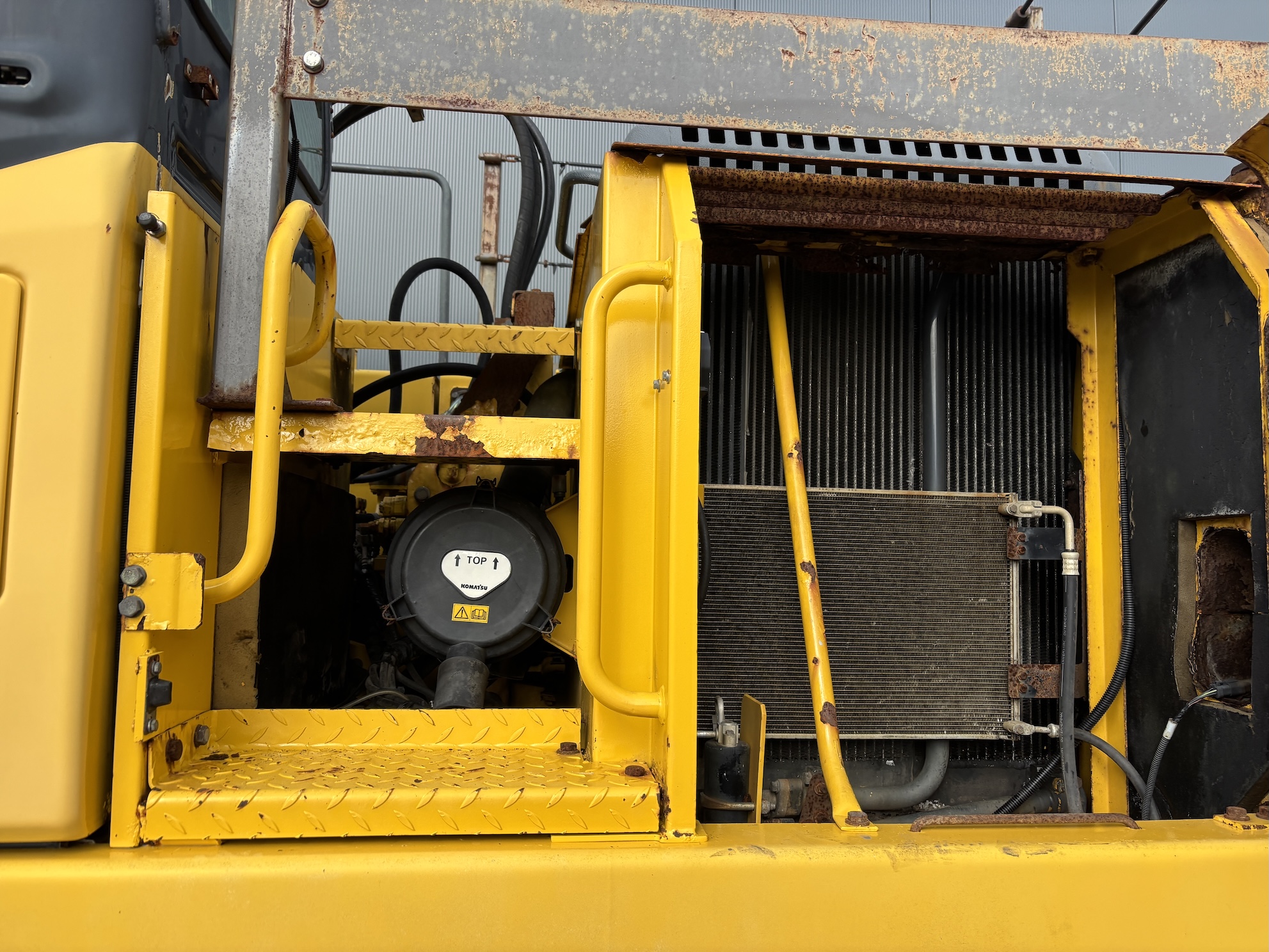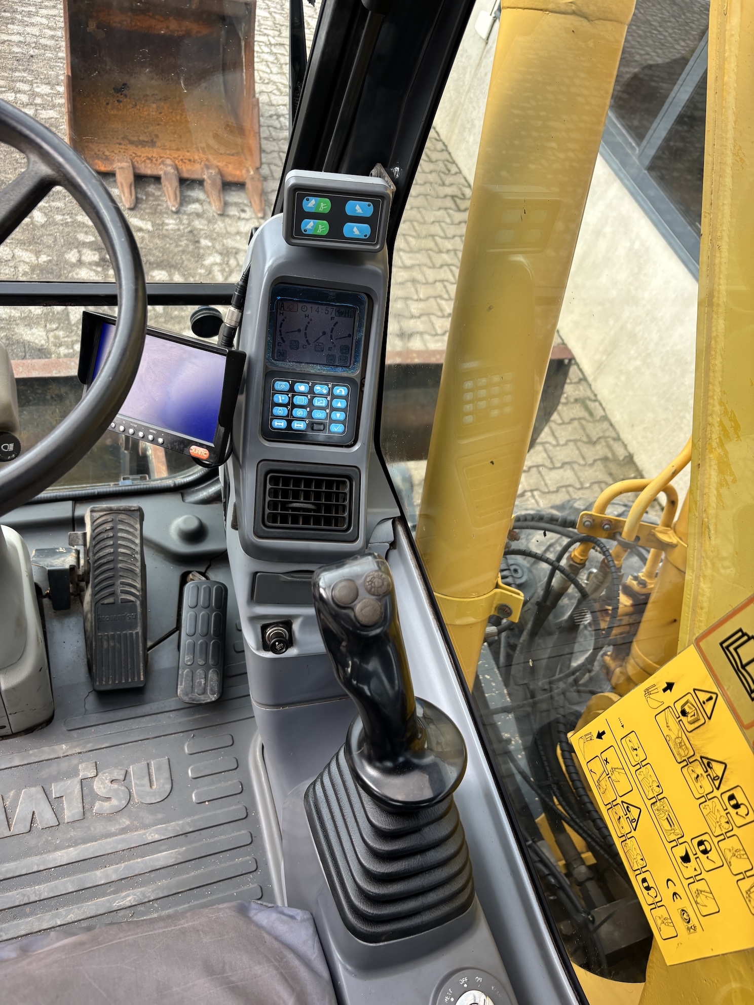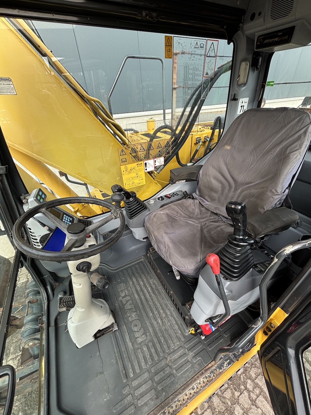 This Komatsu PW160-7 is equipped with a 4 cilinder water cooled turbo charged Komatsu SAA4D107E (88kW) diesel engine with 7552 working hours on the service meter. outriggers, dozer blade, hydraulic quick hitch, teeth bucket, mono boom, additional work lights, safe guard rails, camera (not working), airco, radio etc.