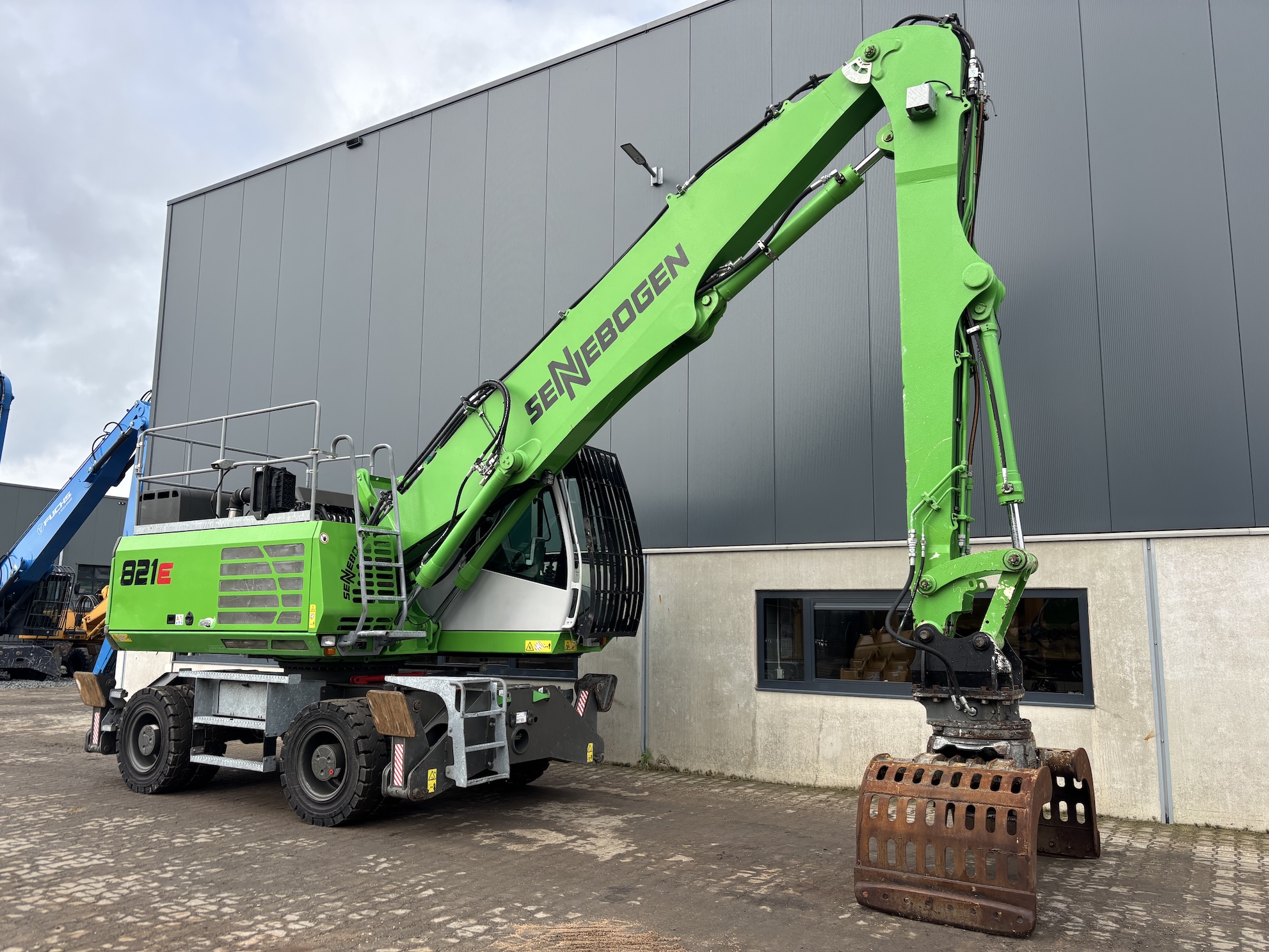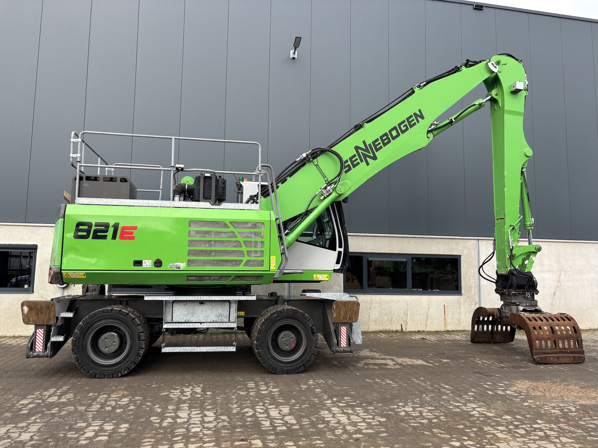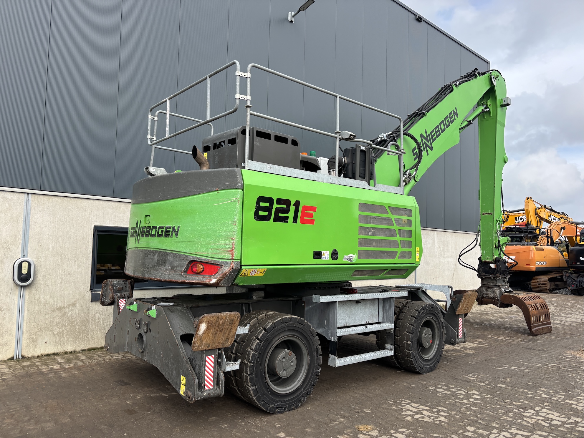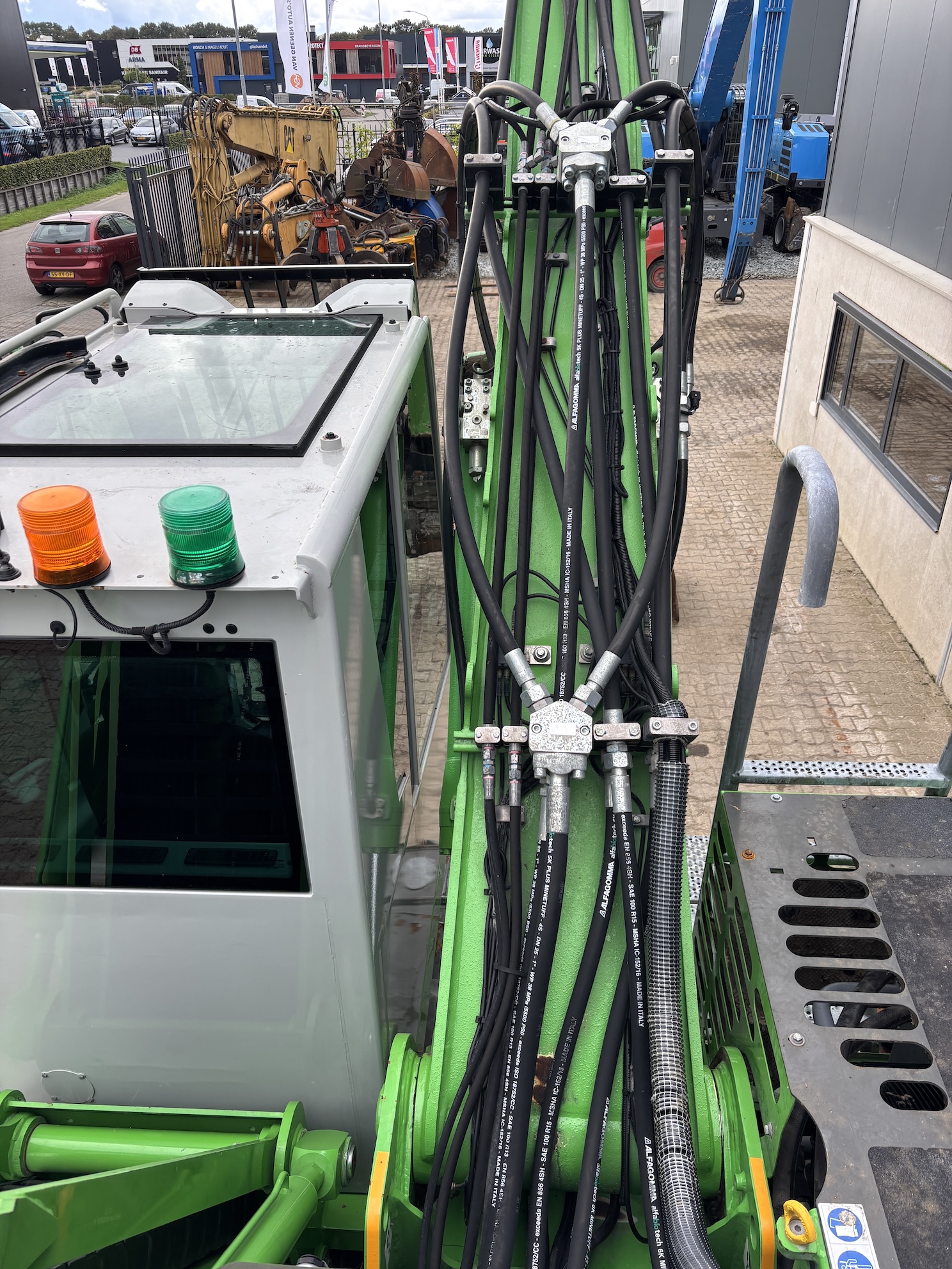 This Sennebogen 821M E is equipped with a 4 cilinder water cooled turbo charge Cummins QSB 4.5 (104kW) diesel engine with 12340 working hours on the service meter. K11 ULM equipment with Kinshofer sorting grab, cabin protection, safety rails on top of machine, camera (not operational), extra work lights, full rubber tires, airco, radio etc.