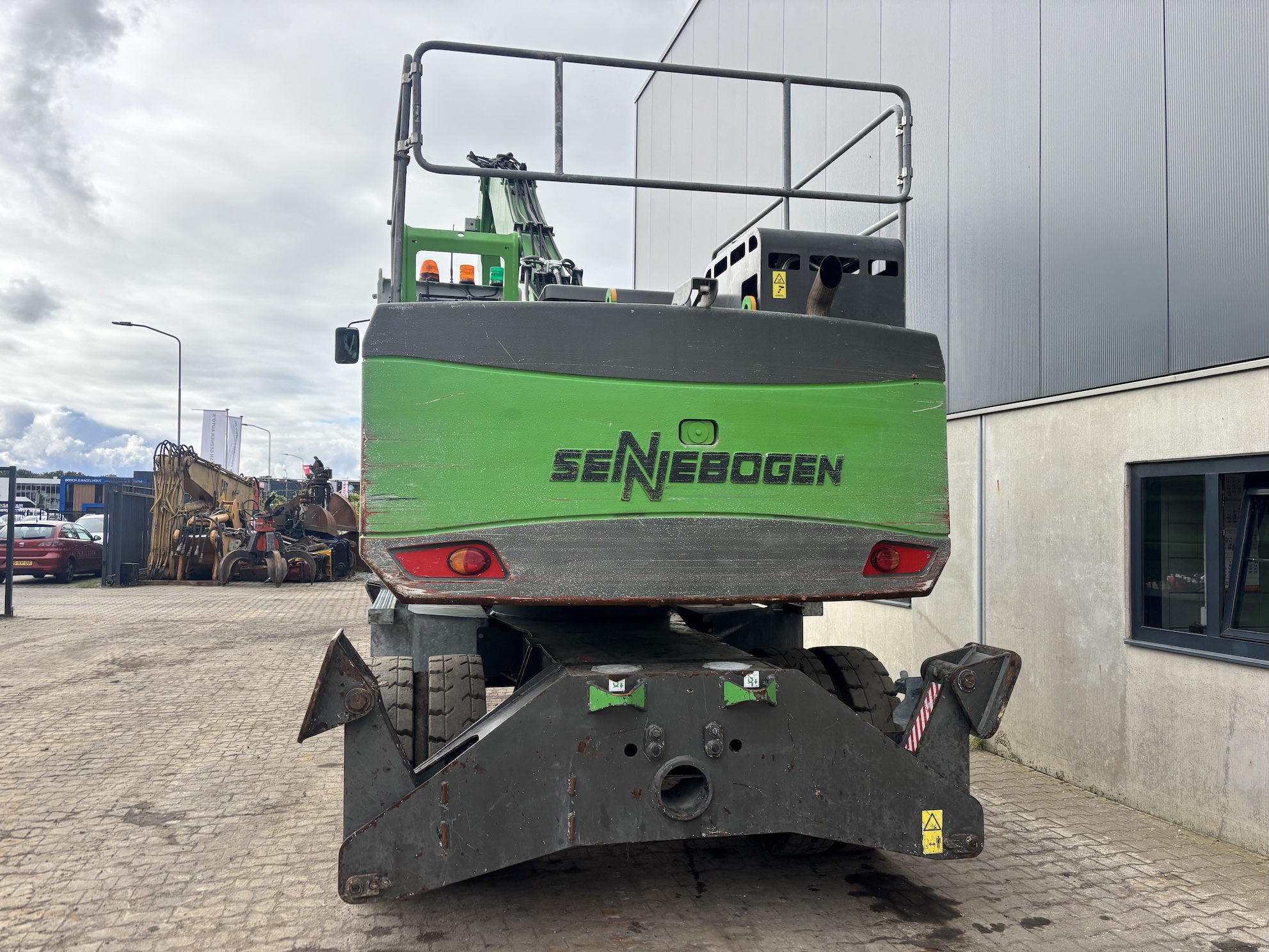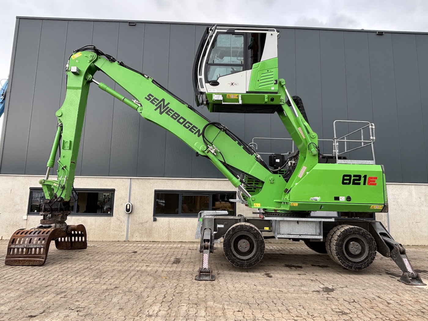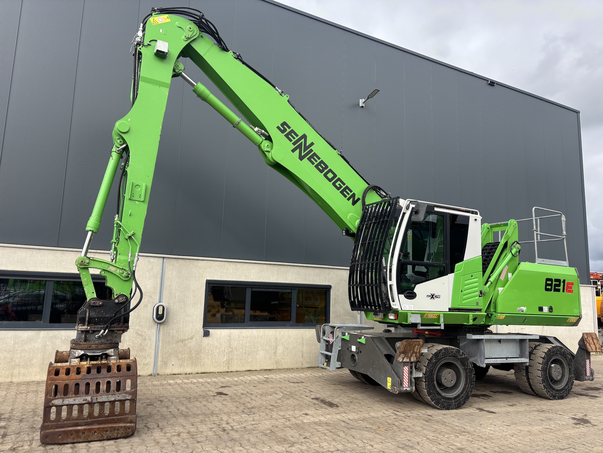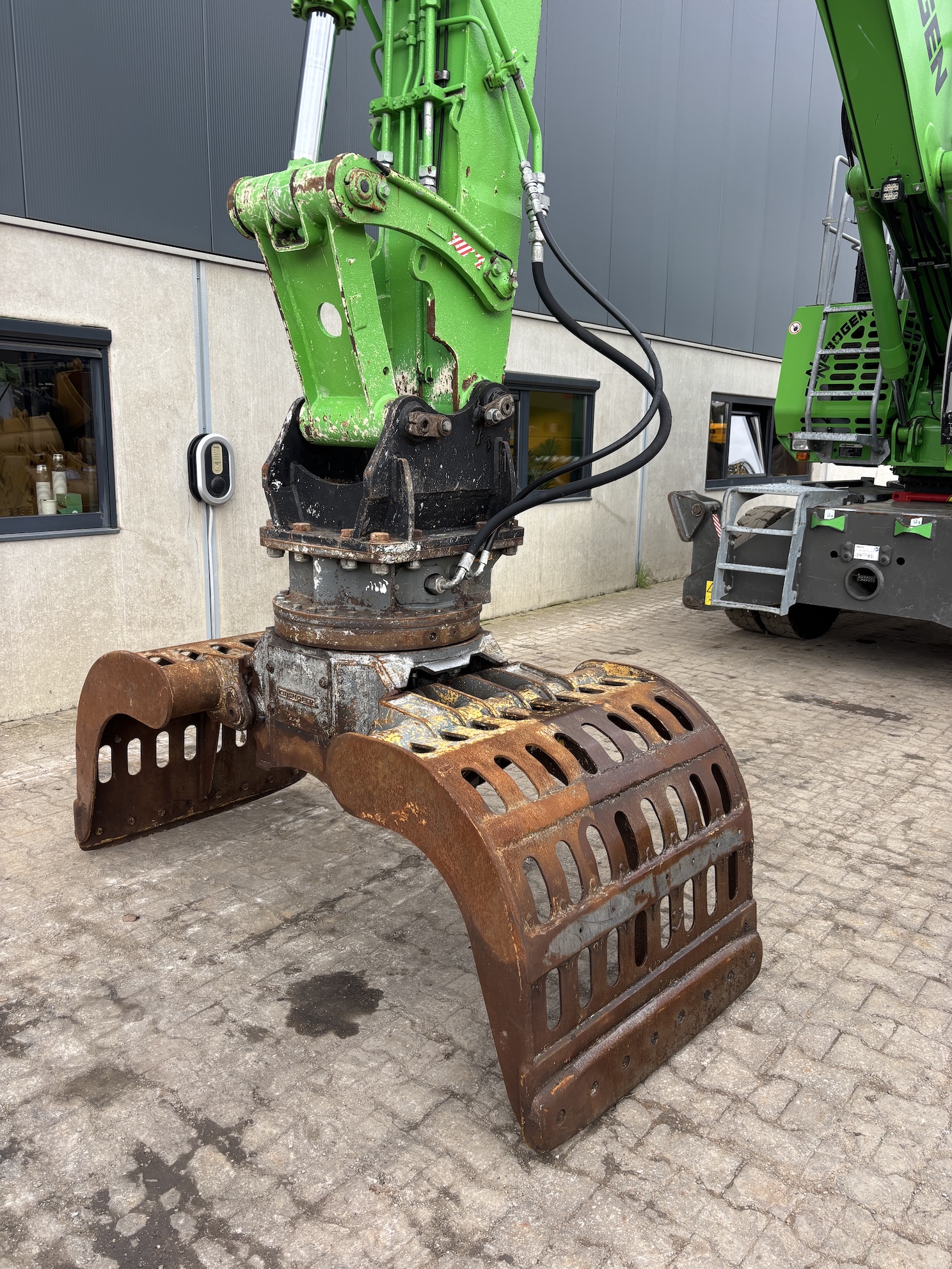 This Sennebogen 821M E is equipped with a 4 cilinder water cooled turbo charge Cummins QSB 4.5 (104kW) diesel engine with 12340 working hours on the service meter. K11 ULM equipment with Kinshofer sorting grab, cabin protection, safety rails on top of machine, camera (not operational), extra work lights, full rubber tires, airco, radio etc.