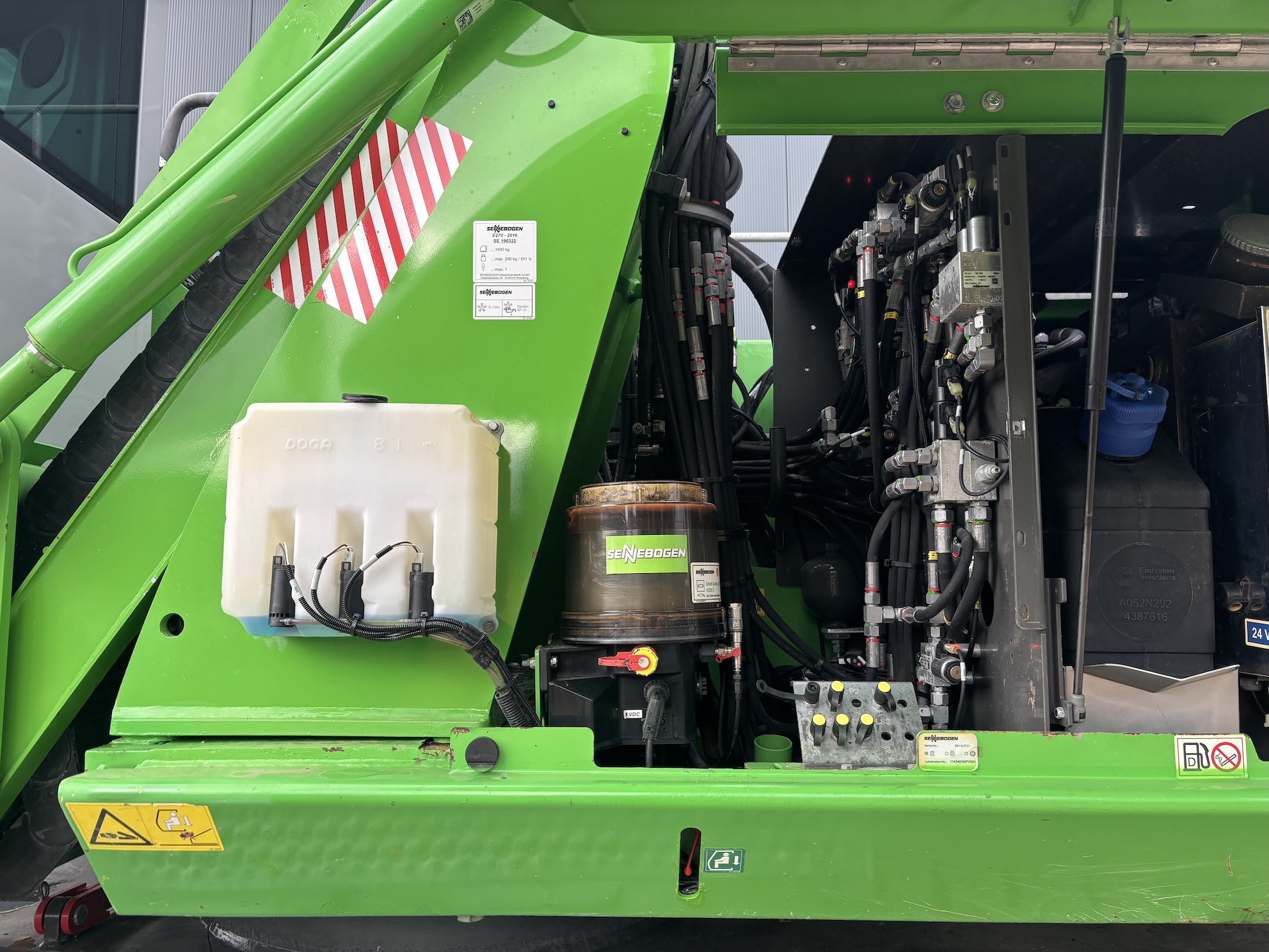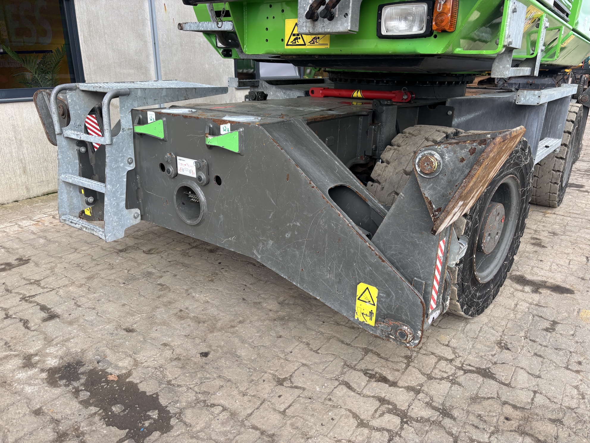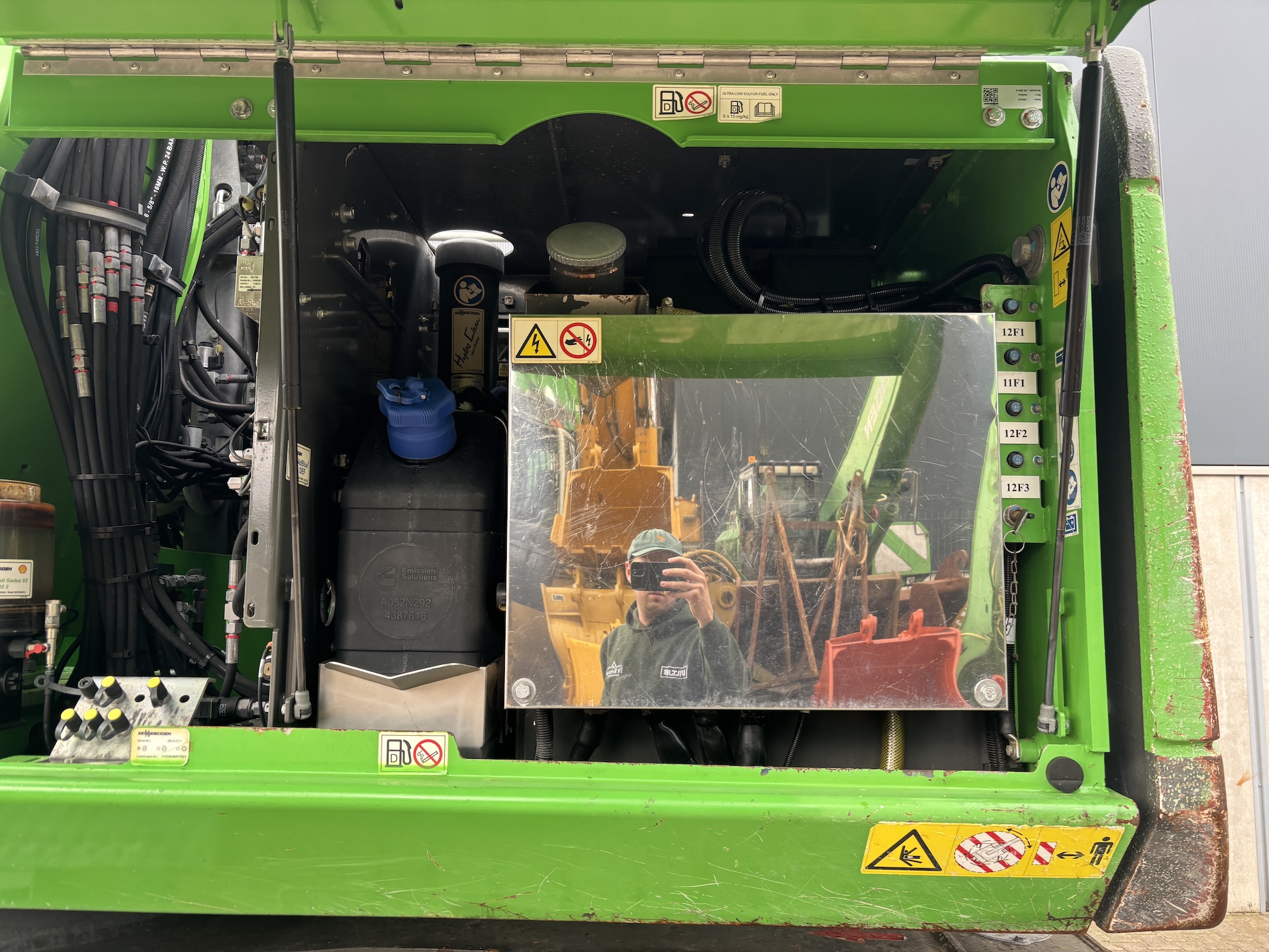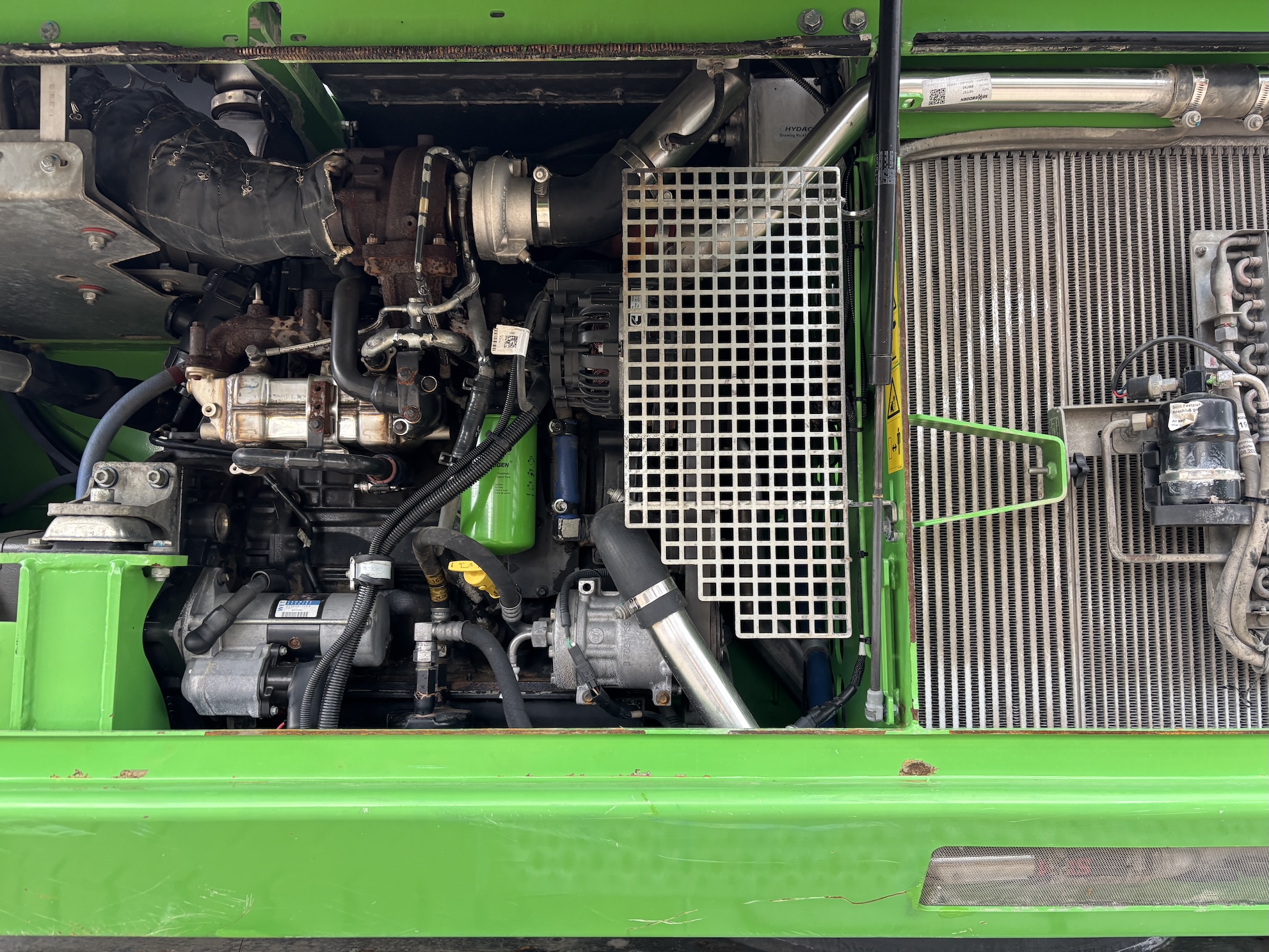 This Sennebogen 821M E is equipped with a 4 cilinder water cooled turbo charge Cummins QSB 4.5 (104kW) diesel engine with 12340 working hours on the service meter. K11 ULM equipment with Kinshofer sorting grab, cabin protection, safety rails on top of machine, camera (not operational), extra work lights, full rubber tires, airco, radio etc.