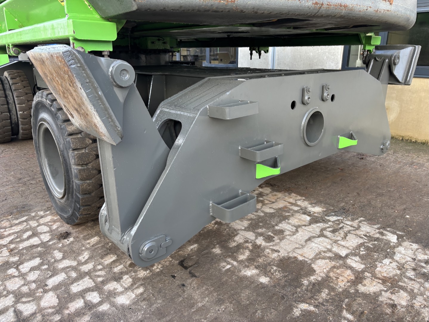This Sennebogen 835M is equipped with a new (December 2022) Deutz TCD2013 L06 2Vc(186kW) 6 cilinder water cooled turbo charged diesel engine. Total machine hours are just 9090, K18 equipment, 1.5 meter pylon, platforms included for surrounding the body, central lubrication, service history and books available, airco, radio etc.