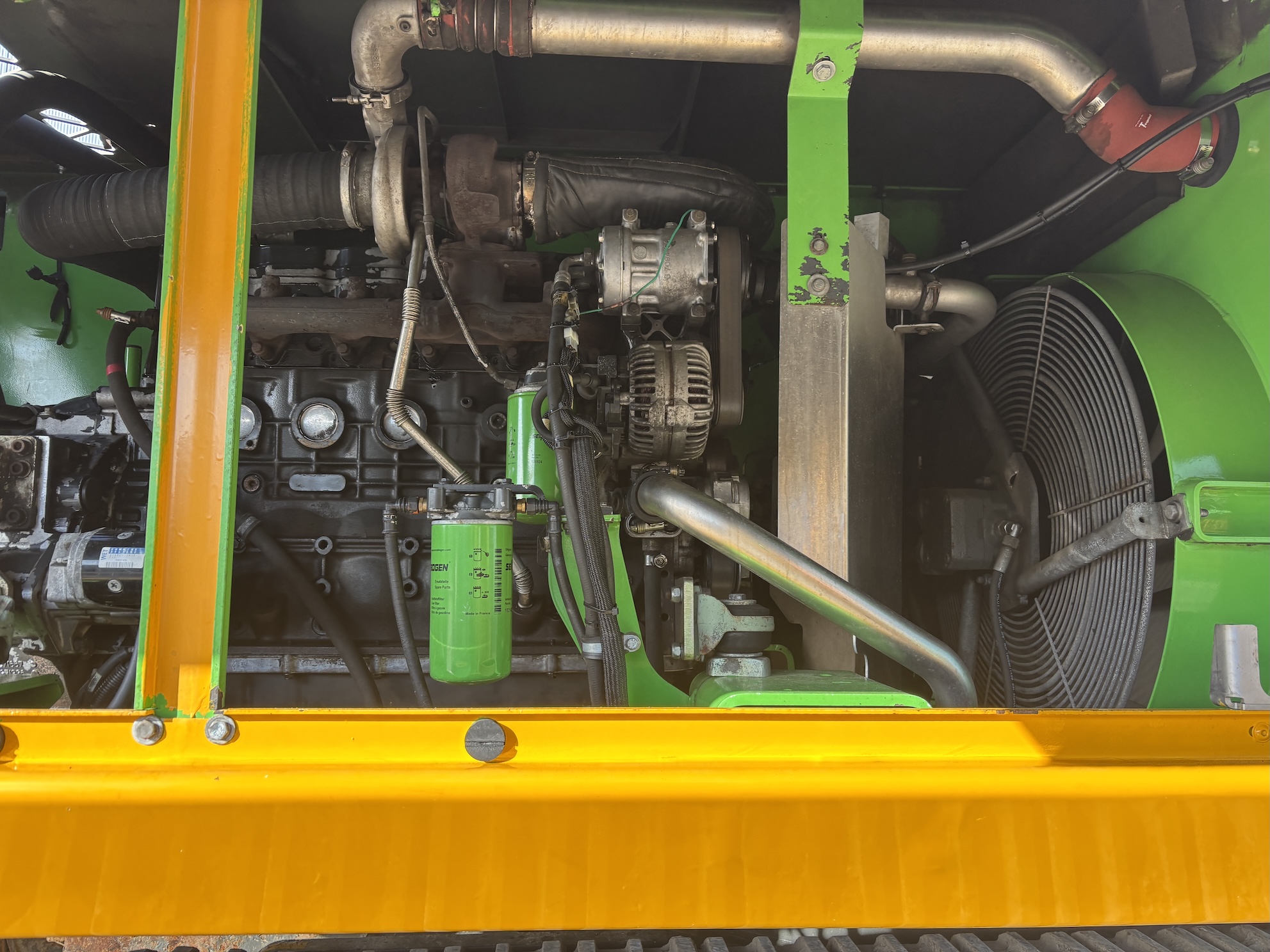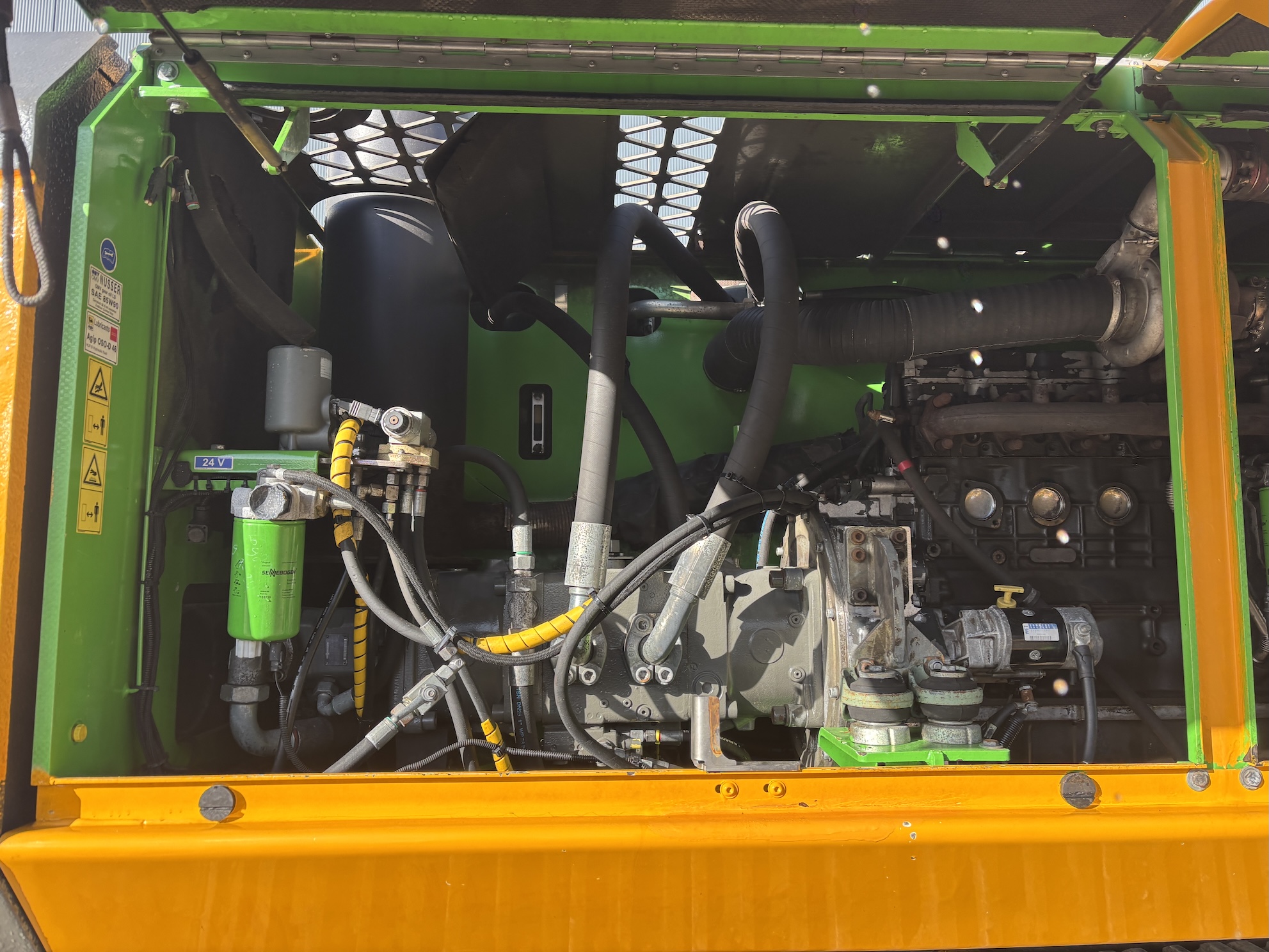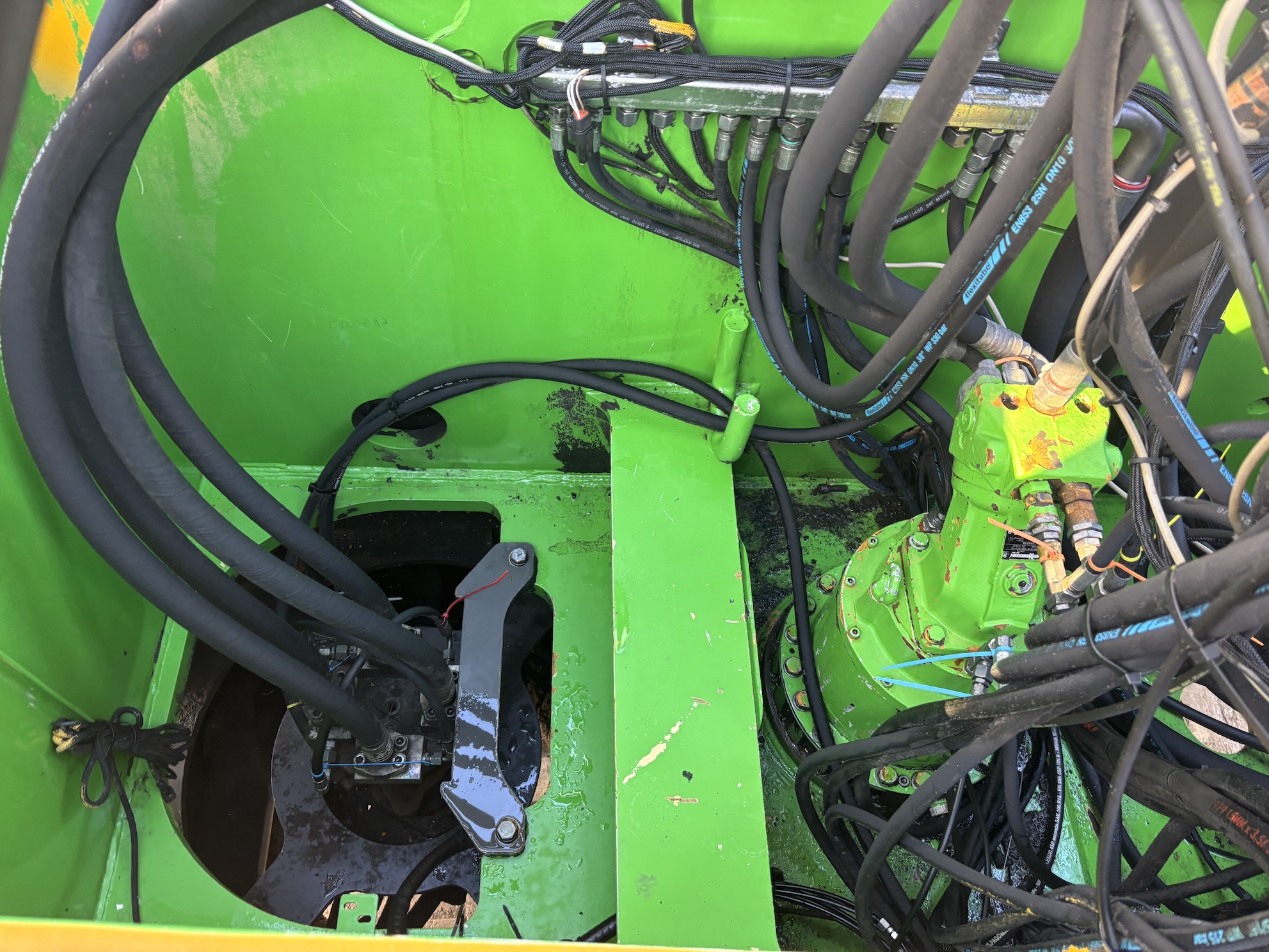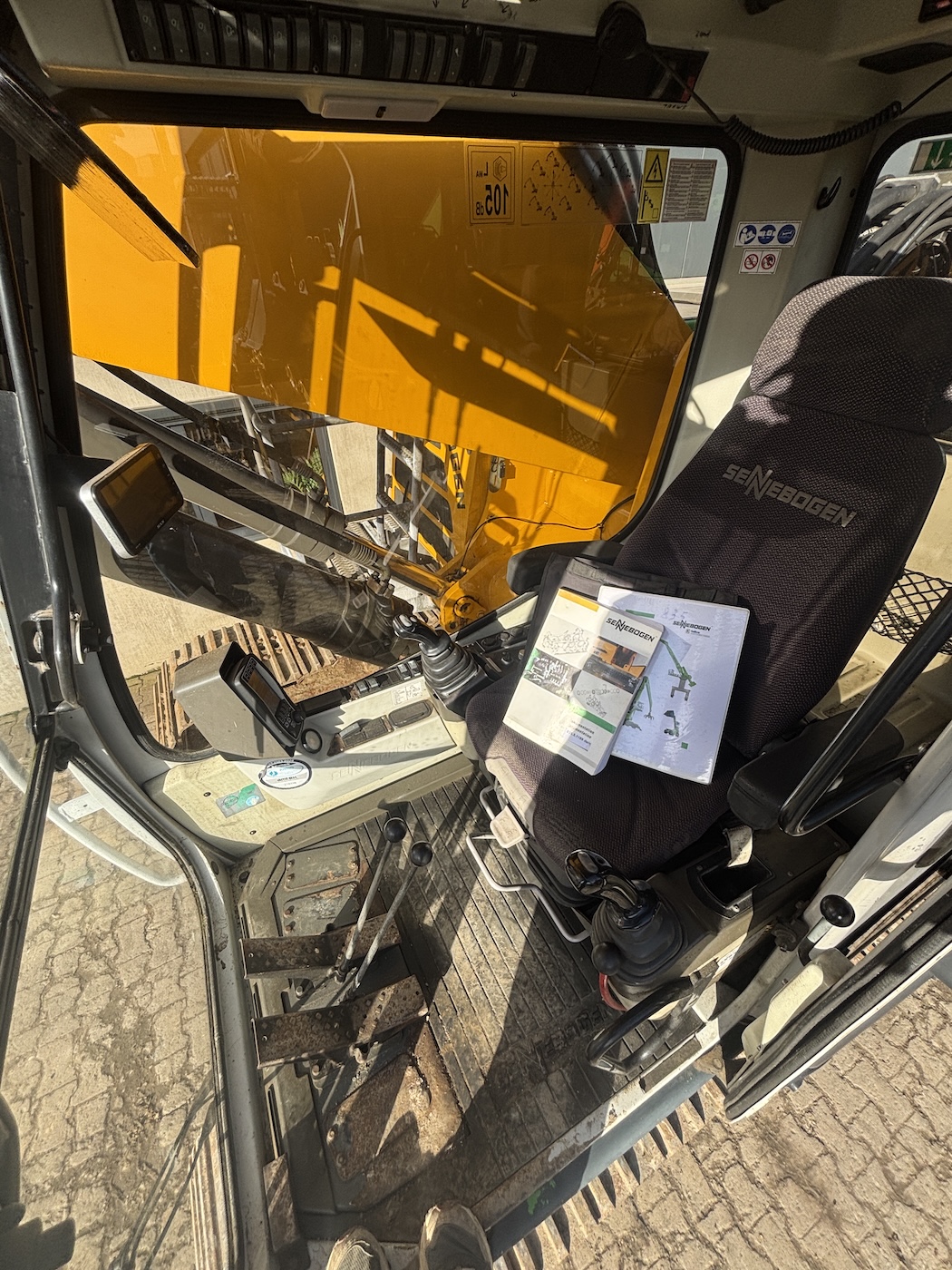 This Sennebogen 835R D-serie is equipped with a 6 cilinder water cooled turbo charged Cummins QSB6.7 (194kW) diesel engine with 17497 working hours on the service meter. 9.1 meter boom, 6.9 meter stick which results in K16 equipment, mechanically extendable undercarriage, body platform in front of cabin (not in pictures), extra work lights, maintenance history and additional books, camera on stick, airco, radio, central lubrication etc..