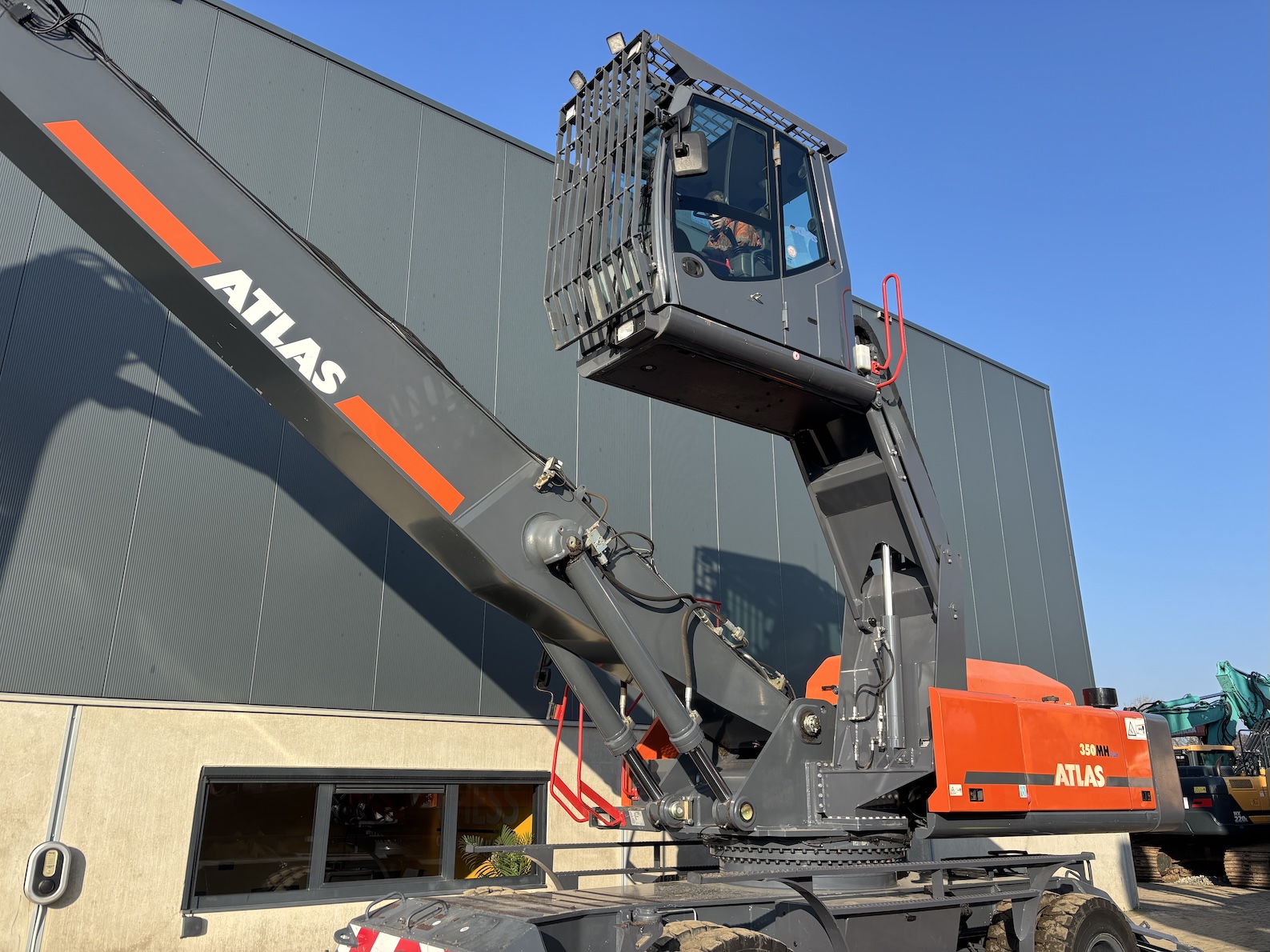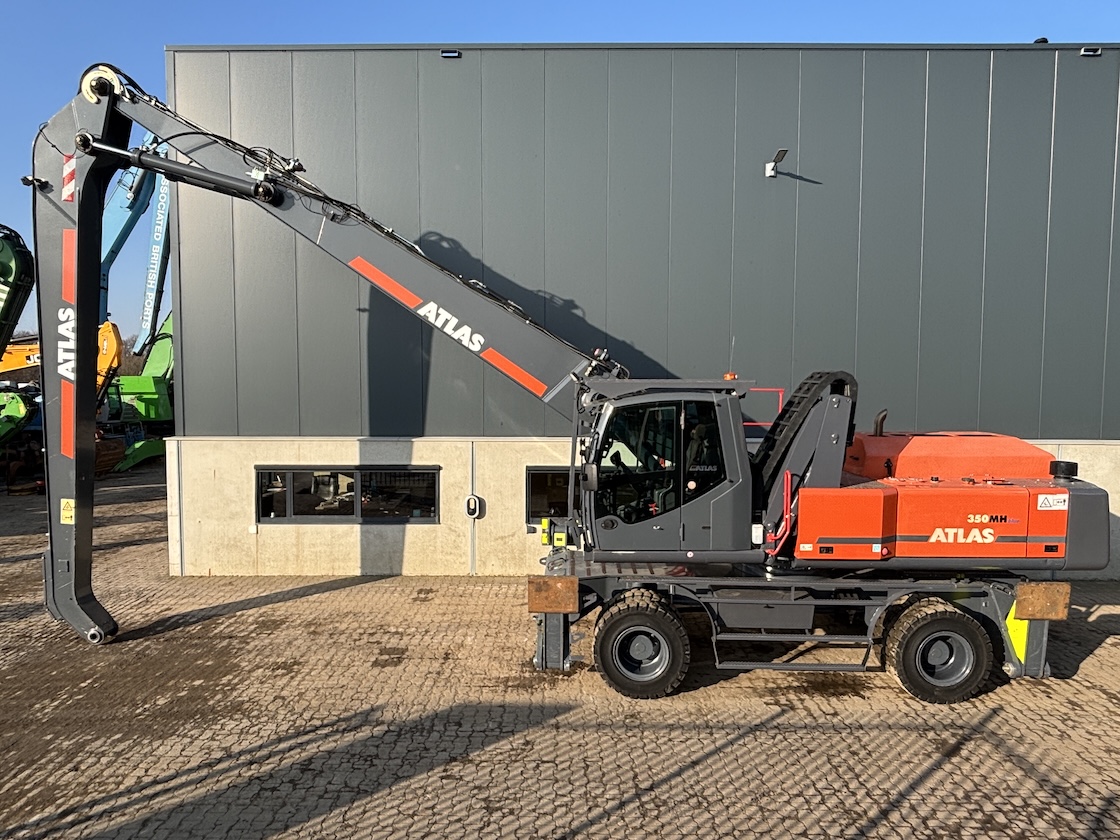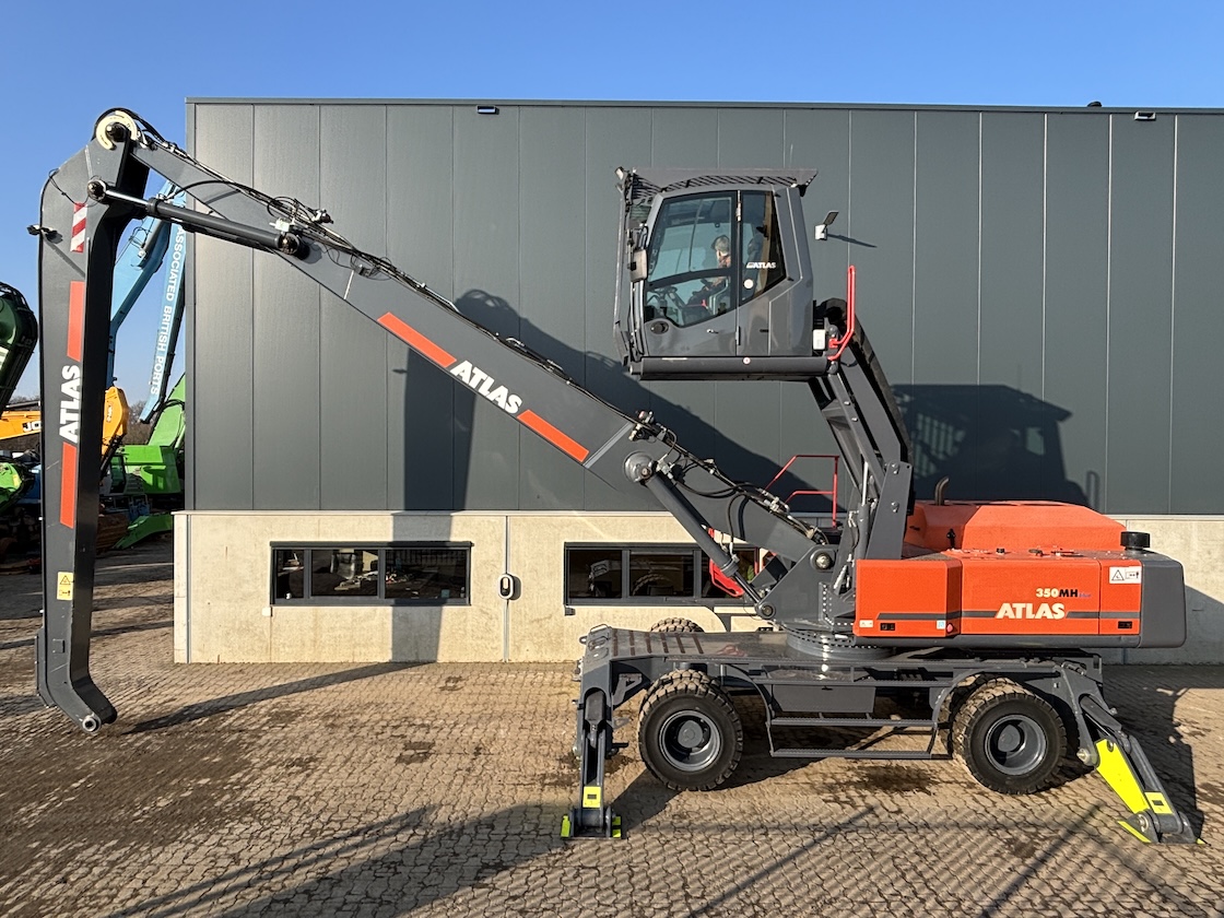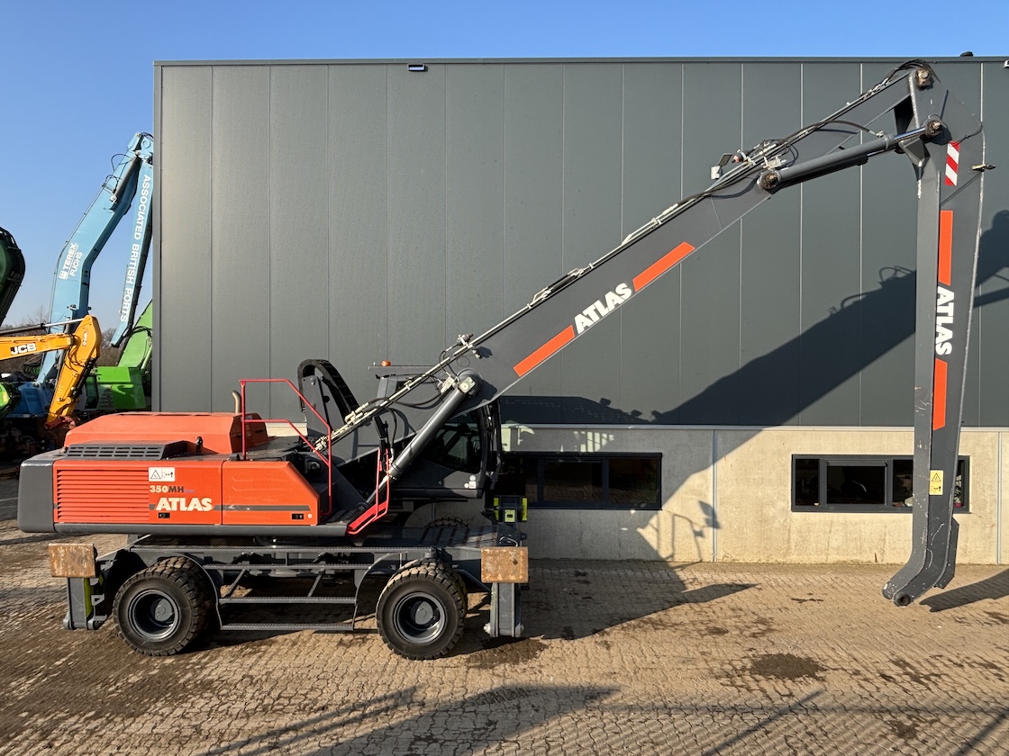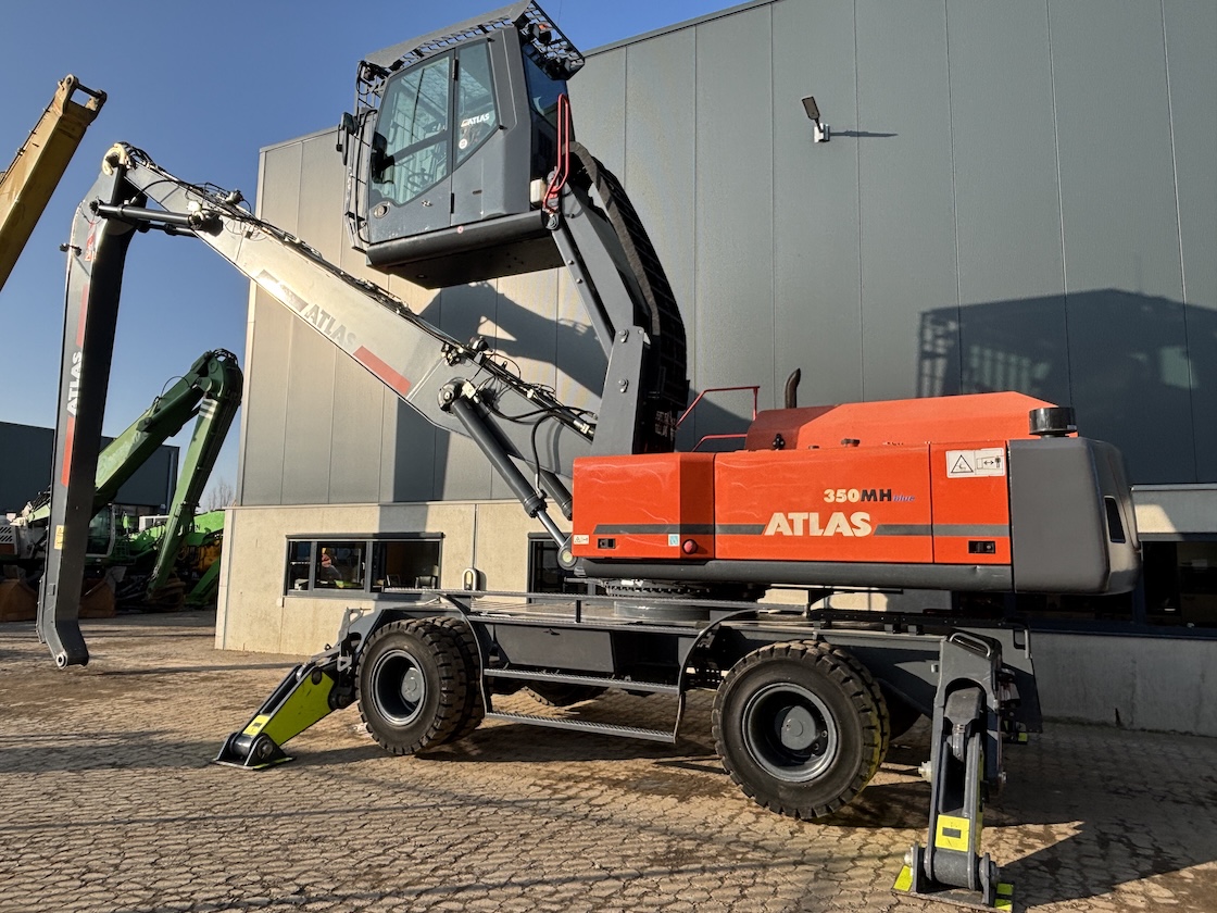 Very nice Atlas 350MH, original paintwork except counter weight. Original tires as well. Tidy! Ready for its next job. For more information please contact us. 5 tyne grab optional.