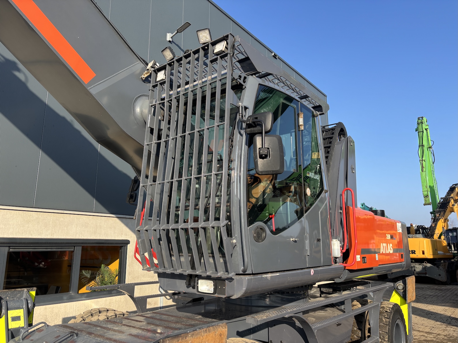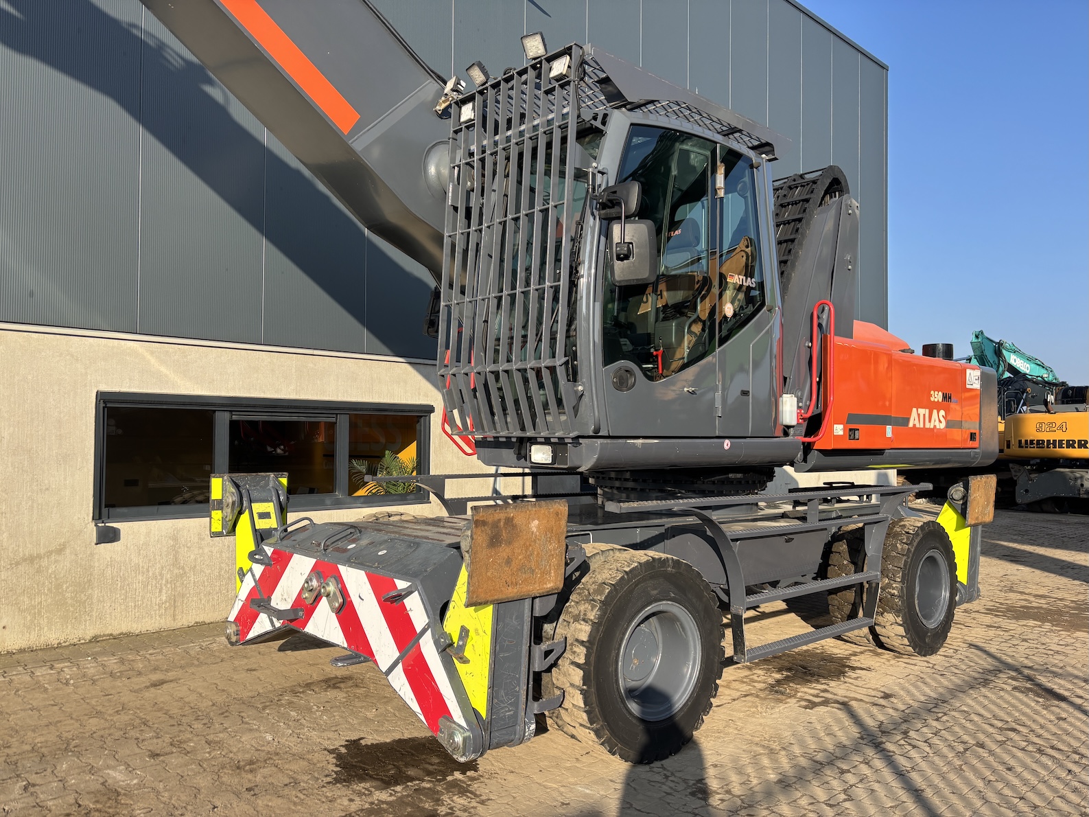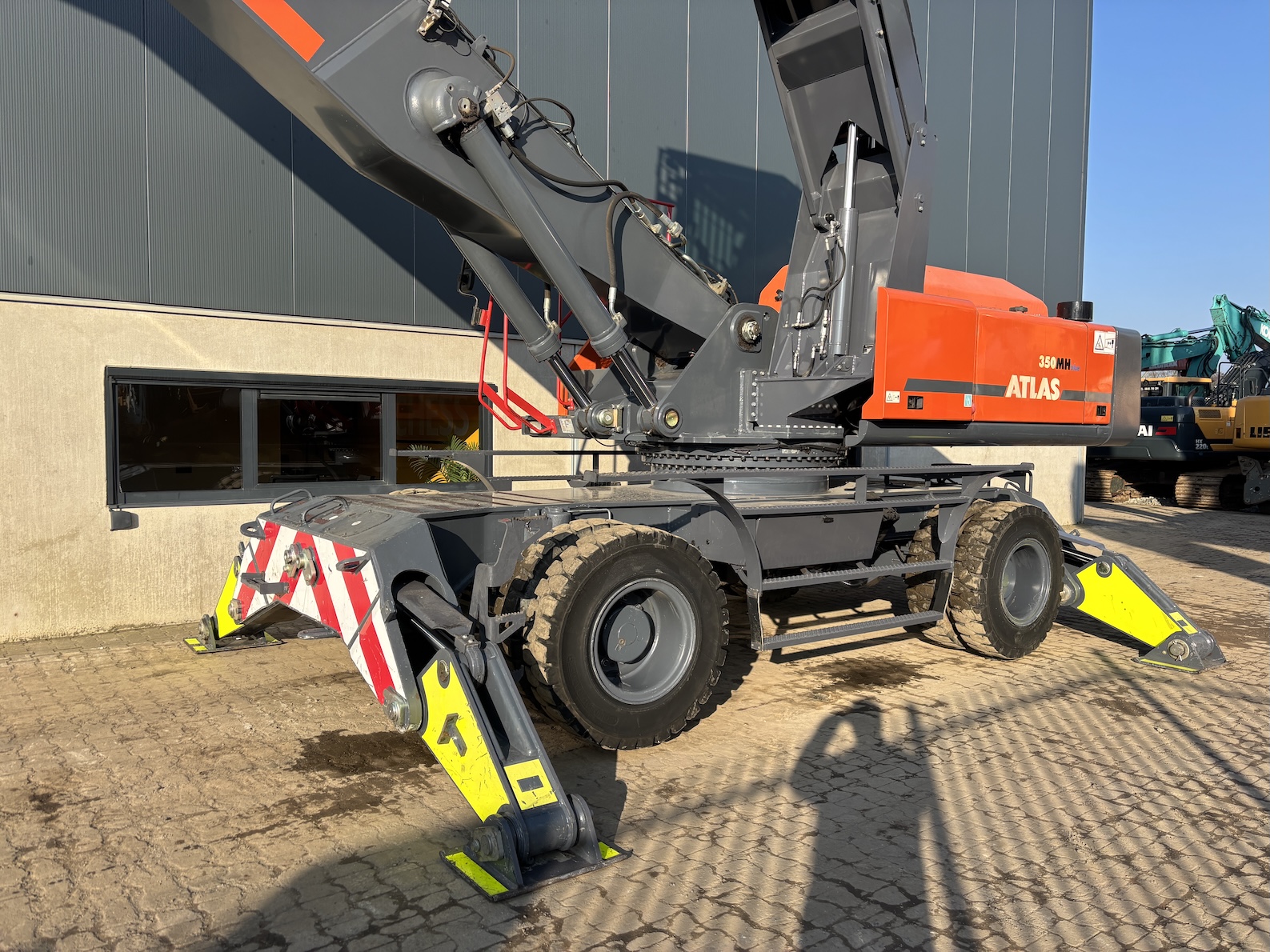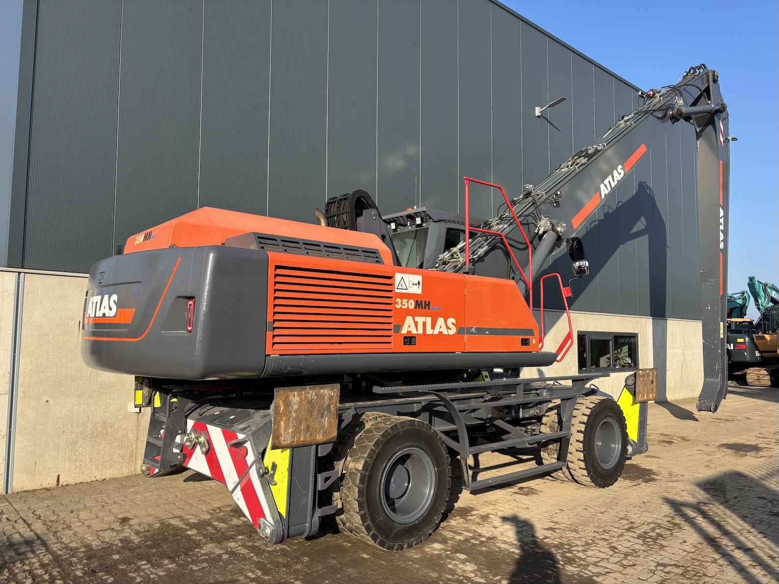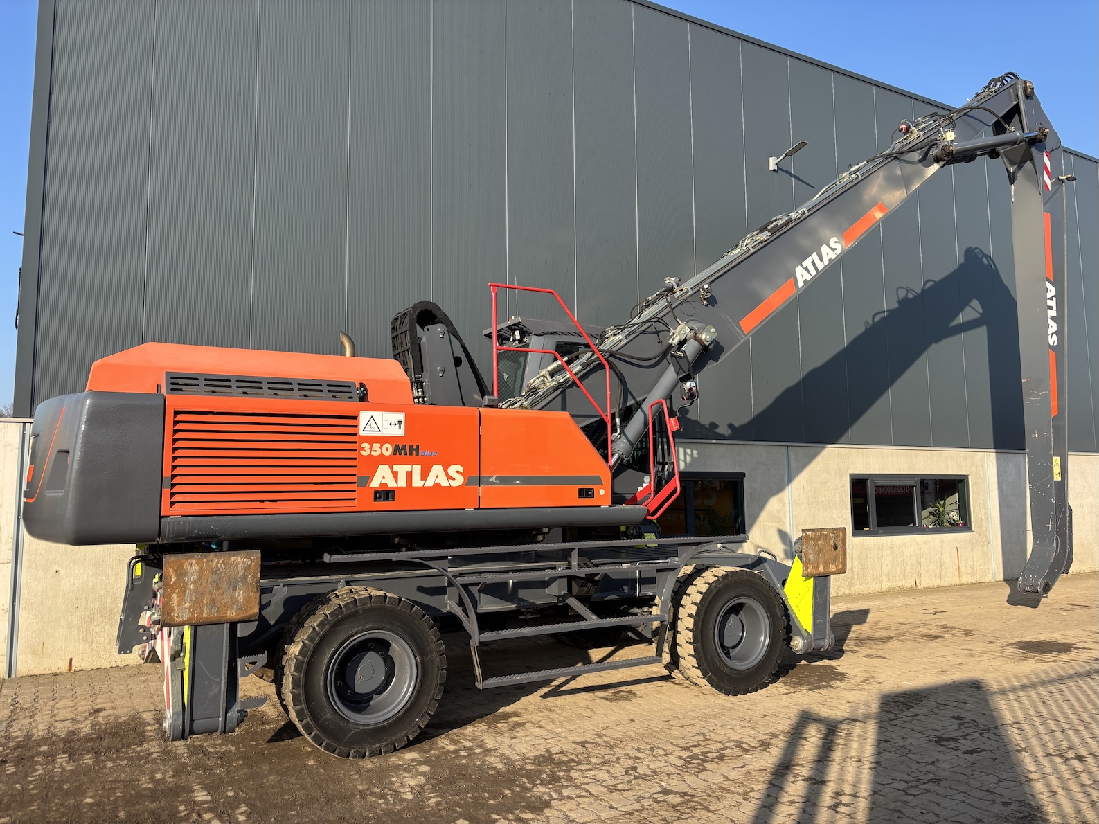Very nice Atlas 350MH, original paintwork except counter weight. Original tires as well. Tidy! Ready for its next job. For more information please contact us. 5 tyne grab optional.
