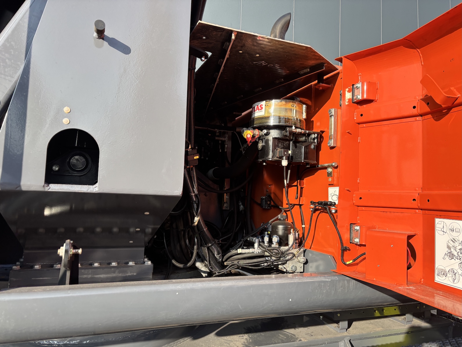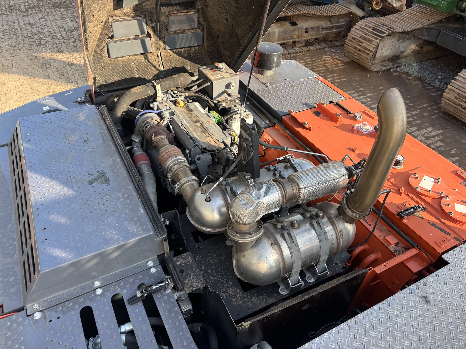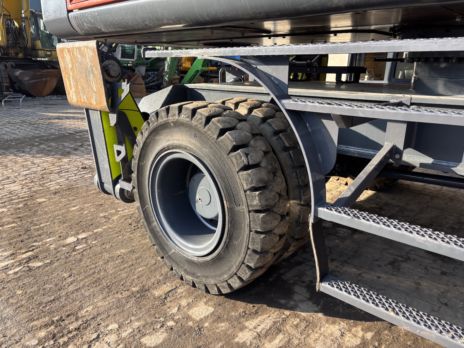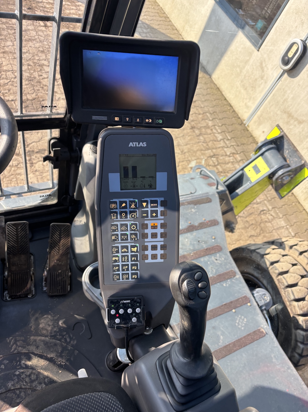 This Atlas 350MH is equipped with a 6 cilinder water cooled turbo charged Deutz TCD6.1 L6 (180kW) diesel engine with 8865 working hours (of which just 5413 hydraulic working hours). Boom is 9.45 meters with stick 6.9 meters, resulting in 16 meter reach. Central lubrication, cabin protection, additional work lights, excellent full rubber tires, rear view camera (currently faded), airco, radio etc.