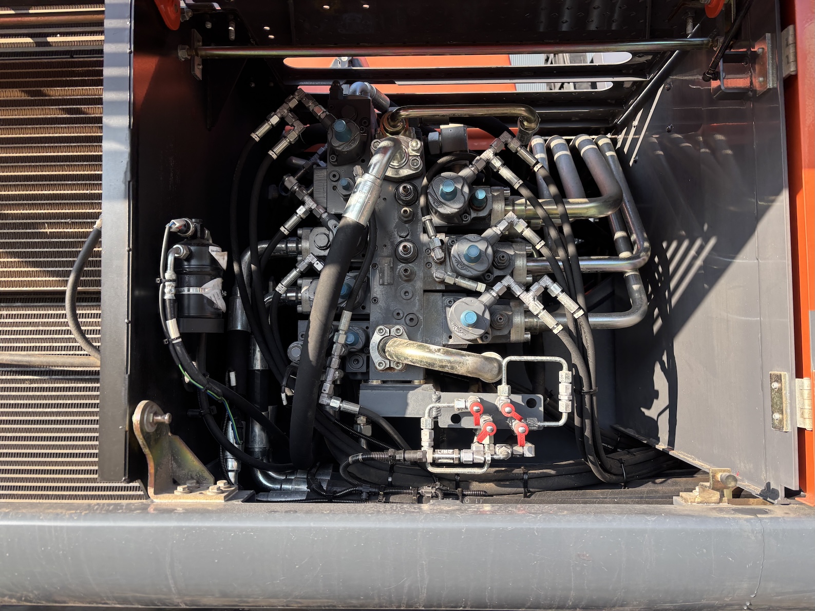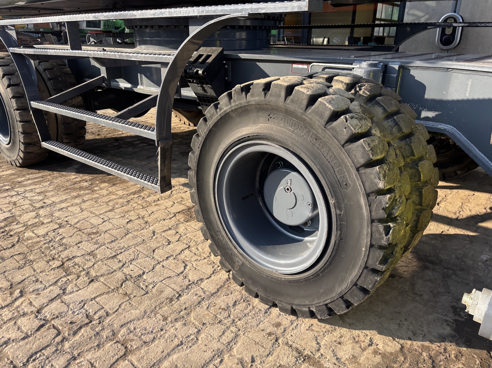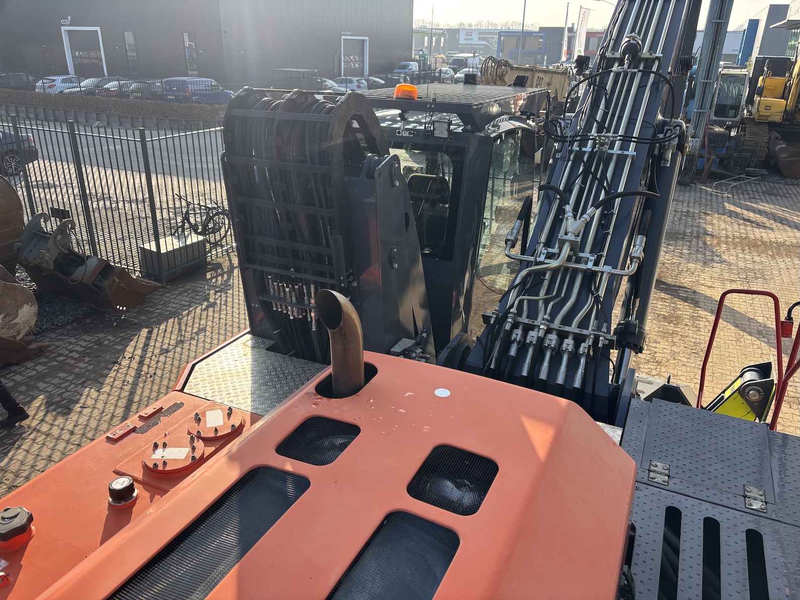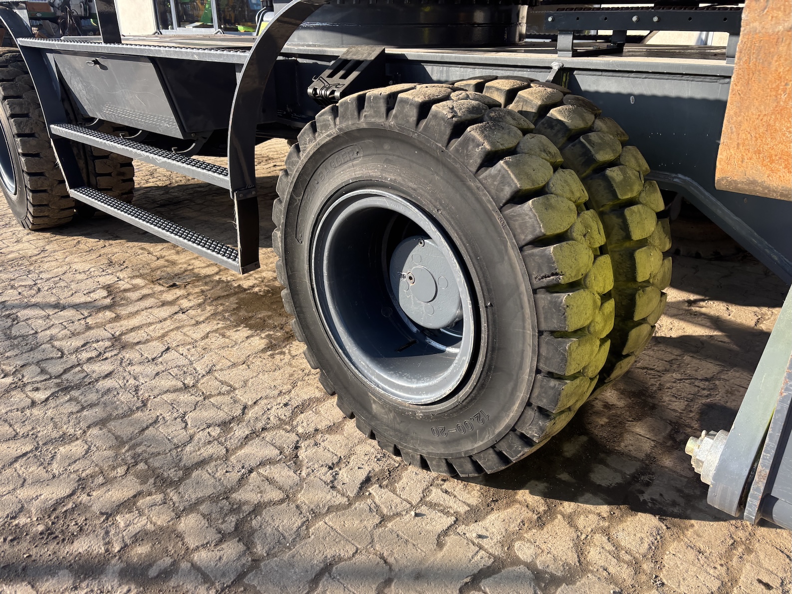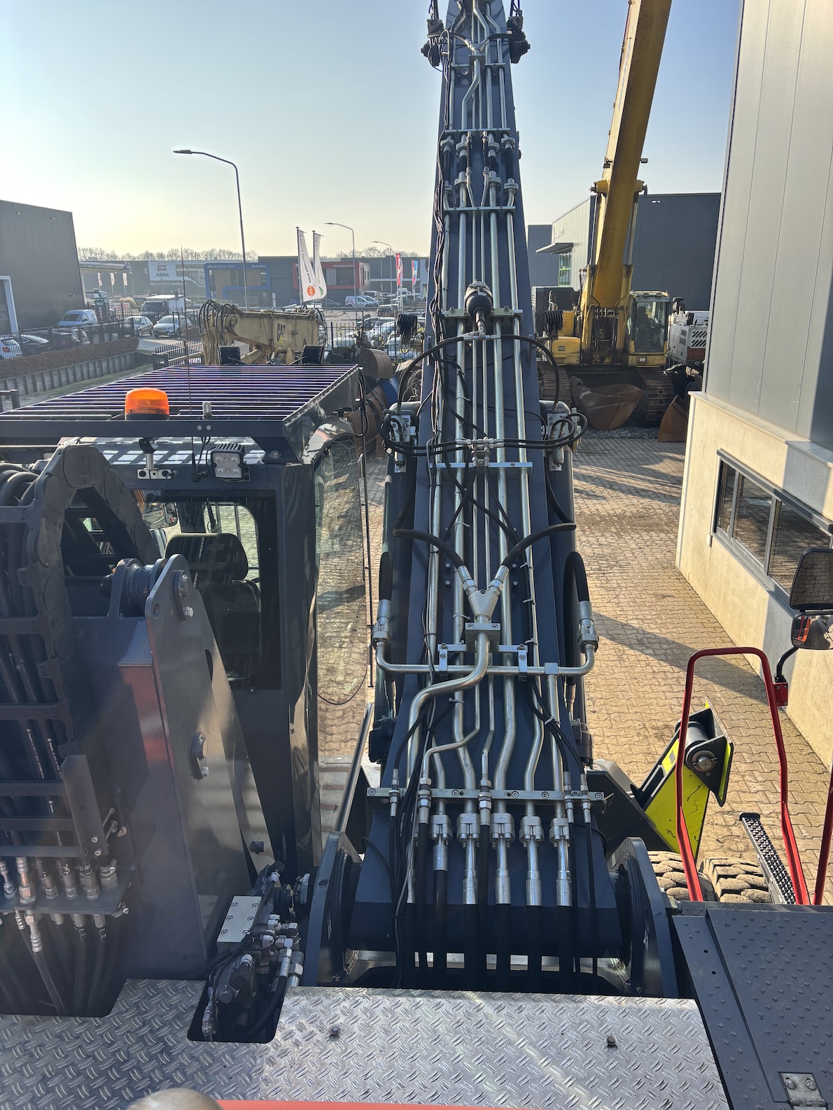 This Atlas 350MH is equipped with a 6 cilinder water cooled turbo charged Deutz TCD6.1 L6 (180kW) diesel engine with 8865 working hours (of which just 5413 hydraulic working hours). Boom is 9.45 meters with stick 6.9 meters, resulting in 16 meter reach. Central lubrication, cabin protection, additional work lights, excellent full rubber tires, rear view camera (currently faded), airco, radio etc.