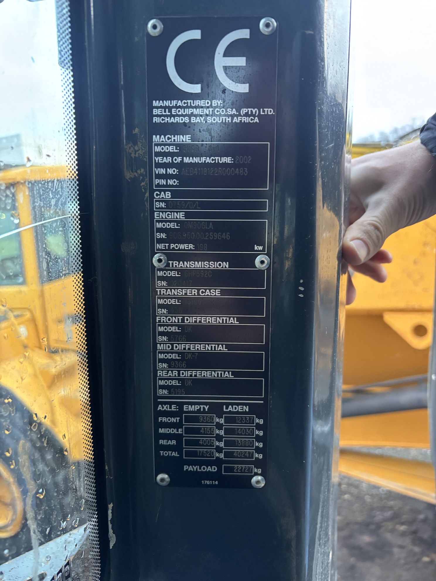 This Bell B25D is equipped with a 6 cylinder water cooled turbo charged Mercedes OM 906 LA (205kW) diesel engine with 22440 working hours on the service meter. 6×6 drive line, automatic gear box, rear view camera, airco, etc.