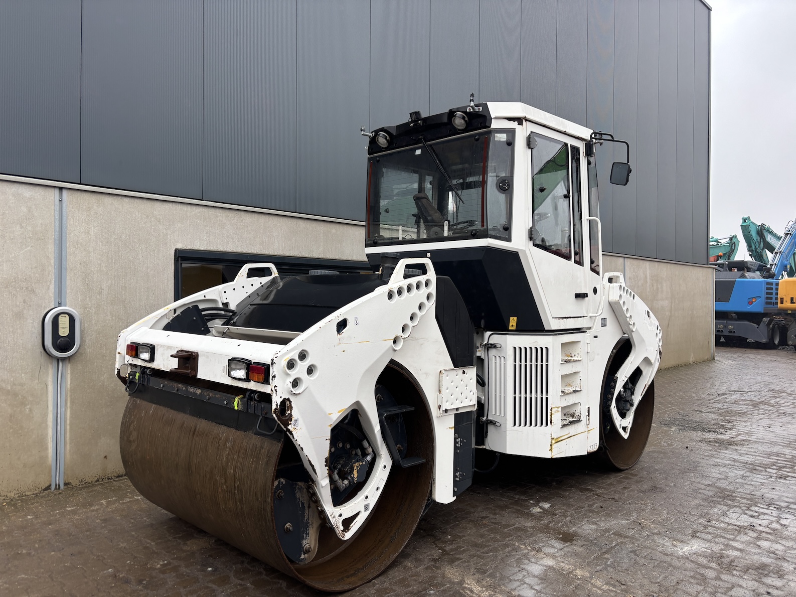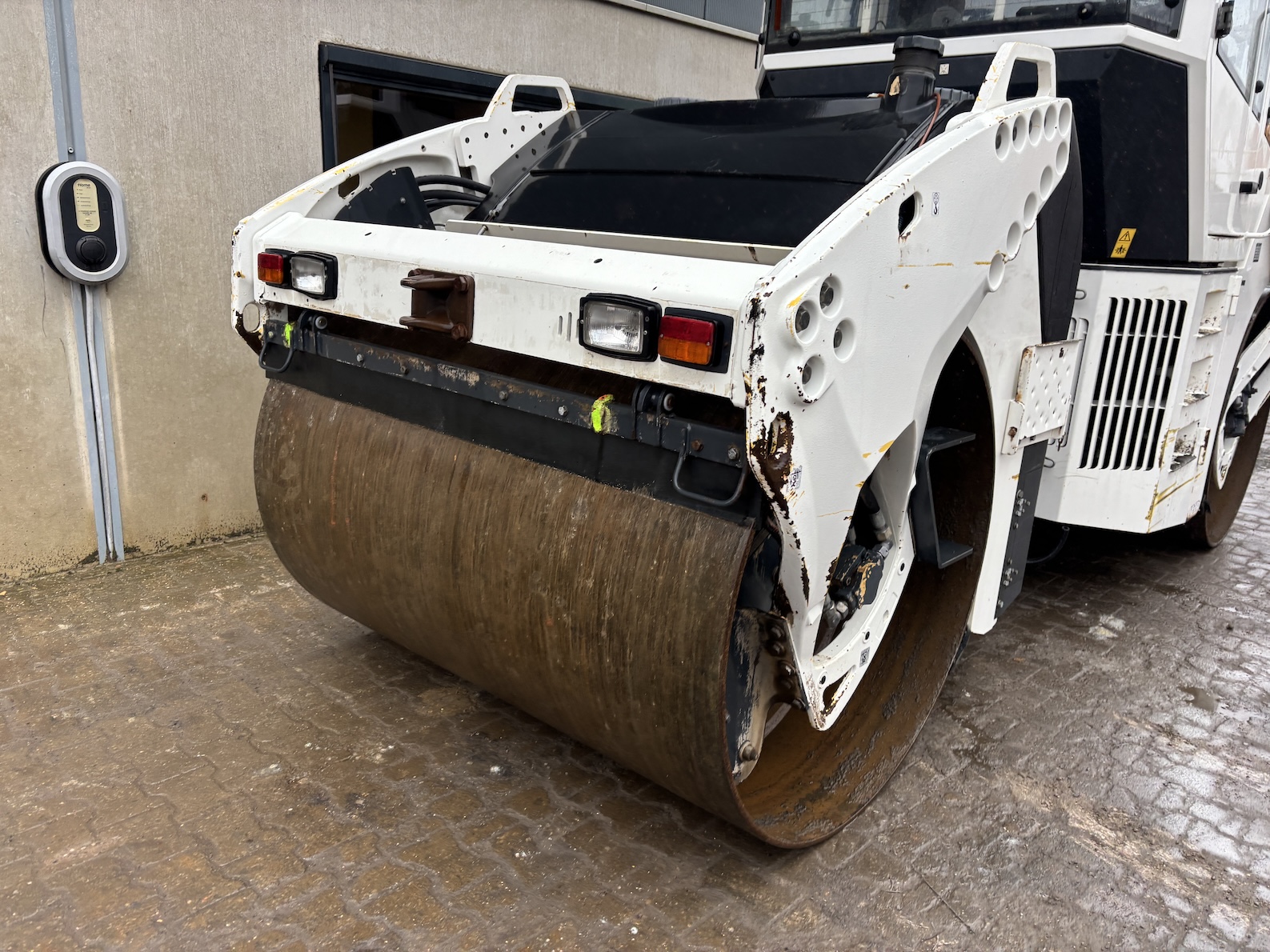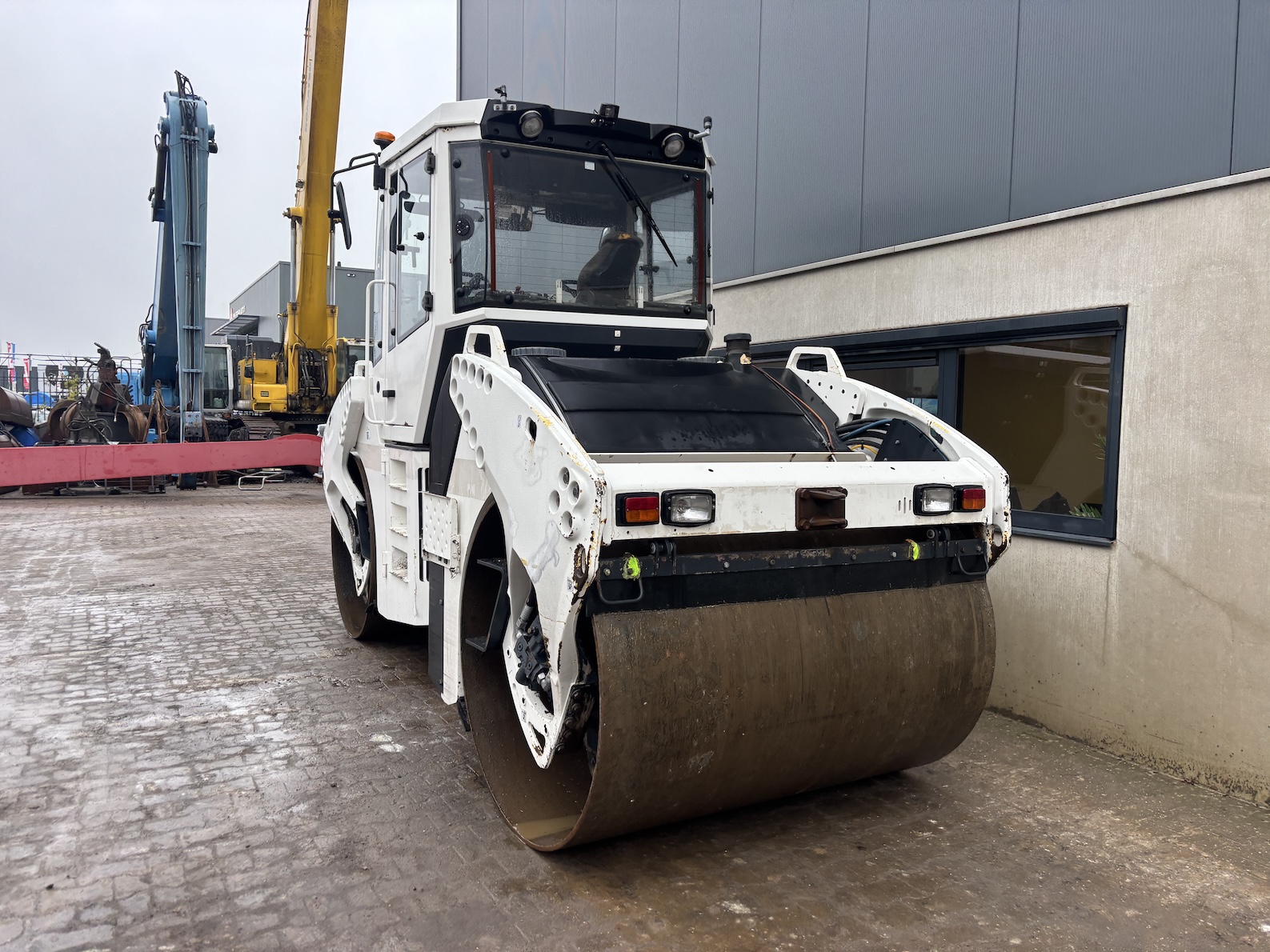 This Bomag BW161 AD-4 Tandem Roller is equipped with a 4 cilinder water cooled turbo charged Deutz TCD 2011 (75kW) diesel engine with 8449 working hours on the service meter. Hydraulic steering, vibration rollers, water tanks, radio, airco, all books included.