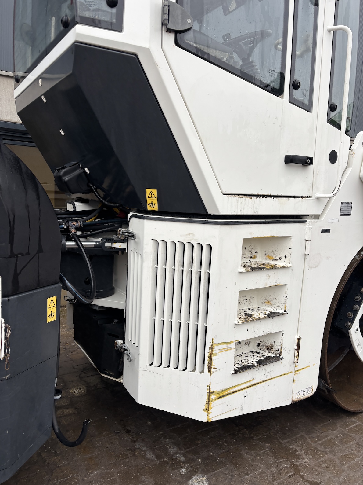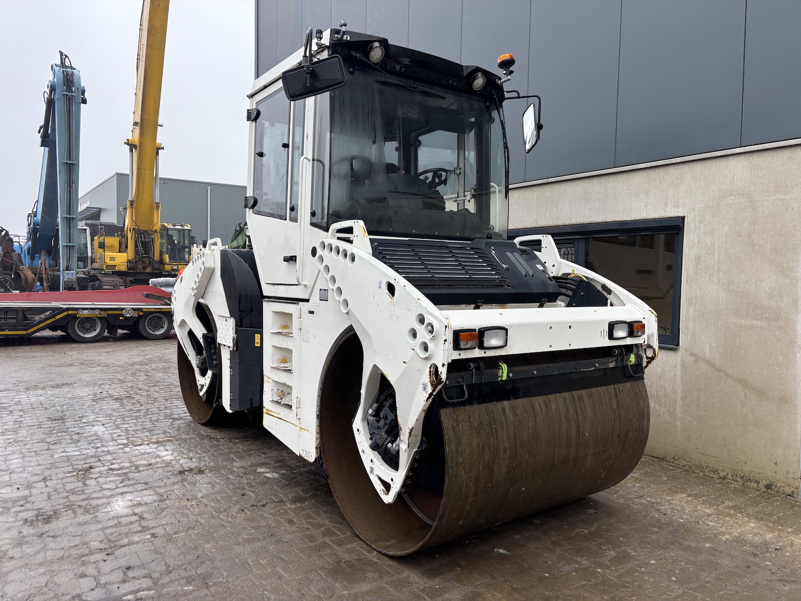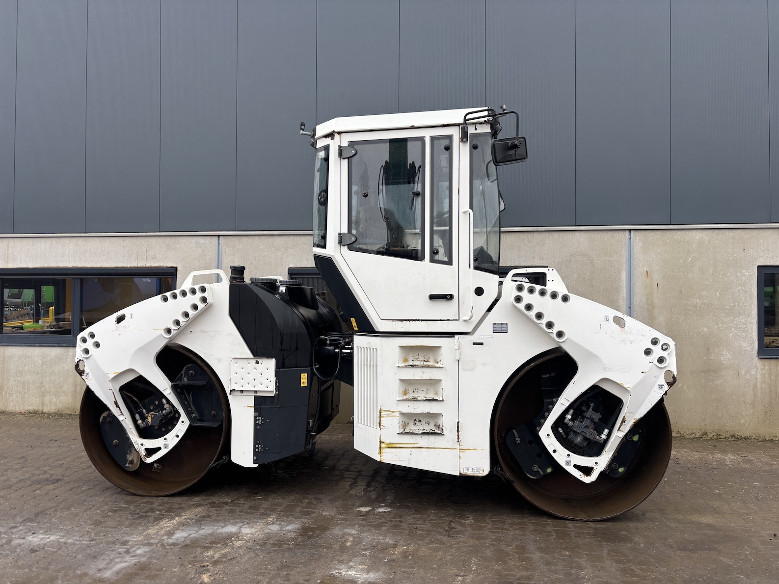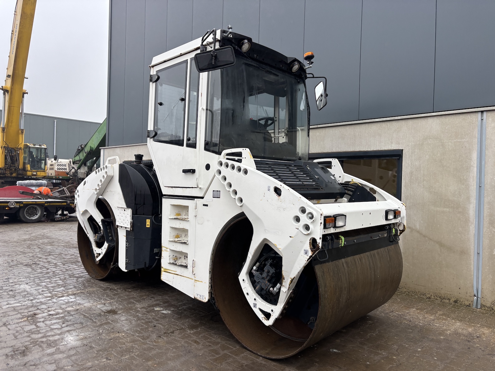 This Bomag BW161 AD-4 Tandem Roller is equipped with a 4 cilinder water cooled turbo charged Deutz TCD 2011 (75kW) diesel engine with 8449 working hours on the service meter. Hydraulic steering, vibration rollers, water tanks, radio, airco, all books included.
