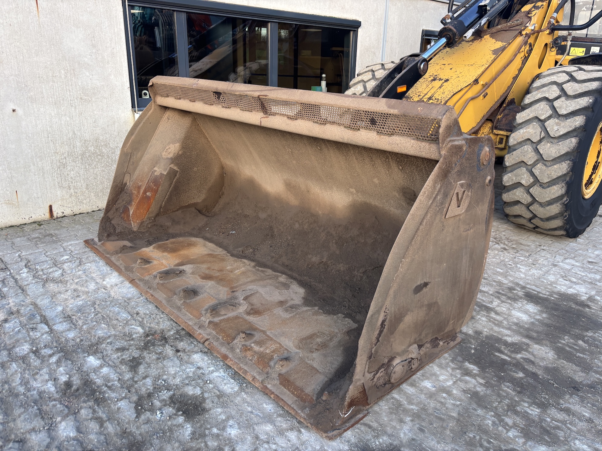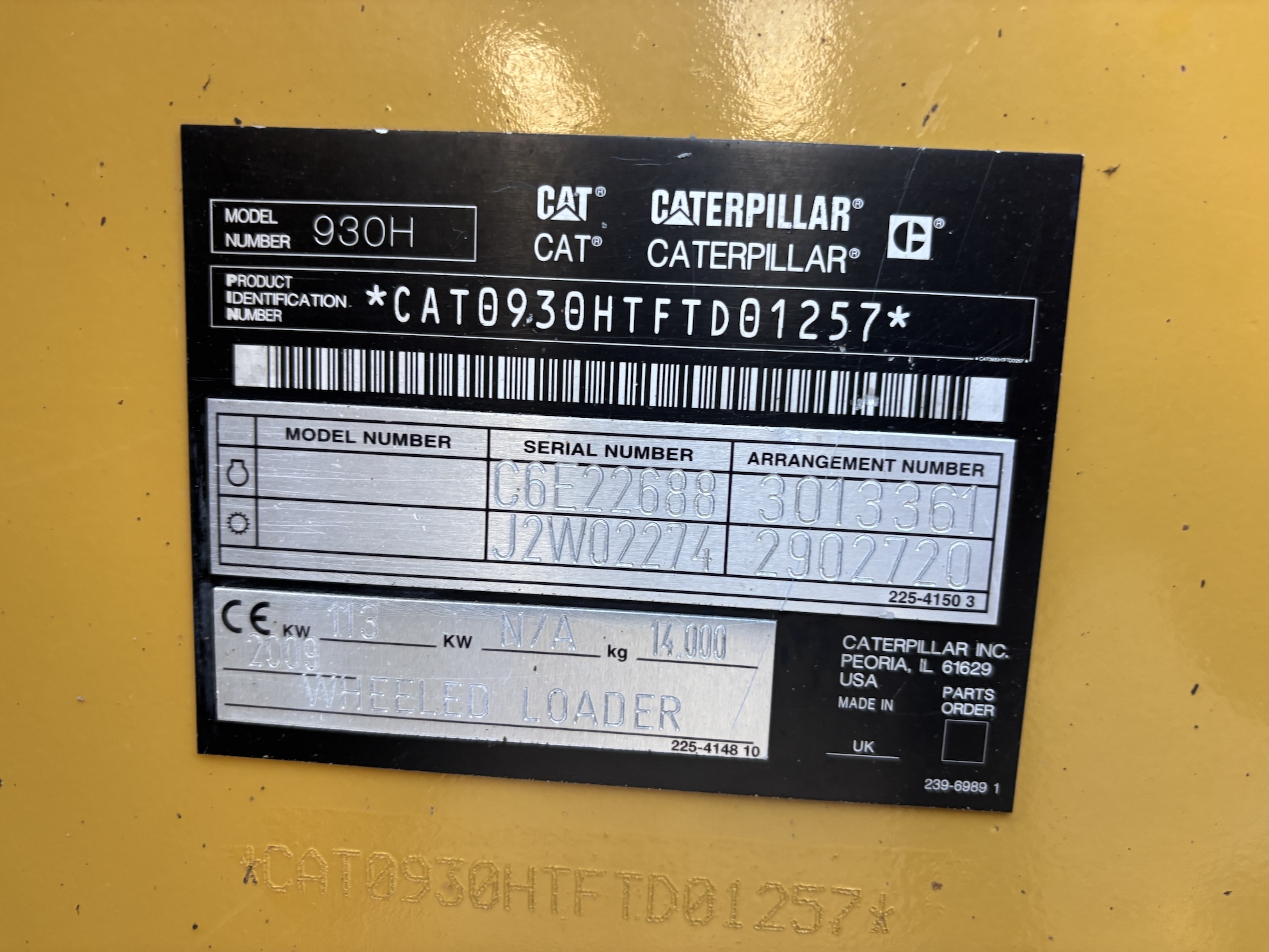 This CAT 930H is equipped with a 6 cilinder water cooled turbo charged CAT C6.6 ACERT (113kW) diesel engine with 13988 working hours on the service meter. Excellent tires, high tip bucket, high lift frame, extra work lights, cabin air filter system, airco, radio, rear view camera etc.
