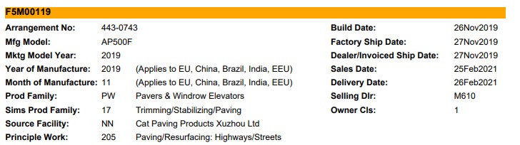 Build date November 2019, first sold in February 2021. Really tidy and genuine CAT AP500F paver, bought from the first owner. For more information please contact us.