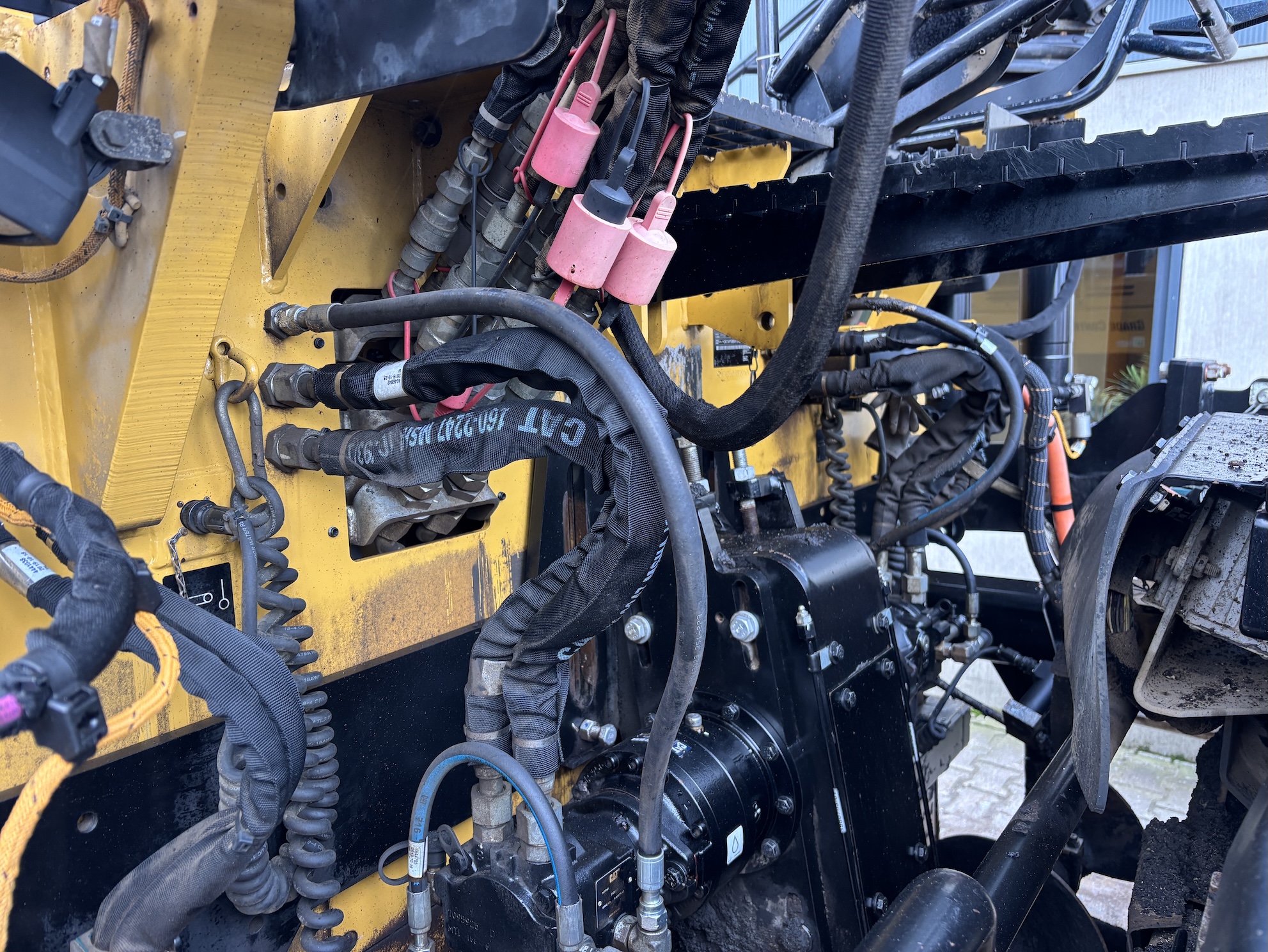 This CAT AP500F paver is equipped with a 4 cilinder turbo charged water cooled CAT C4.4 Acert (106kW) diesel engine with 1756 working hours on the service meter. Hard top canopy, levelling devices, additional work lights, 4 control panels, conveyor belt, intergrated CAT grade control, trailing edge screed plate adjusters, quick change heating elements, free floating tow point, generator activation, temperature selection unit, temperature zone monitoring, spring loaded end gates, screed controls etc…