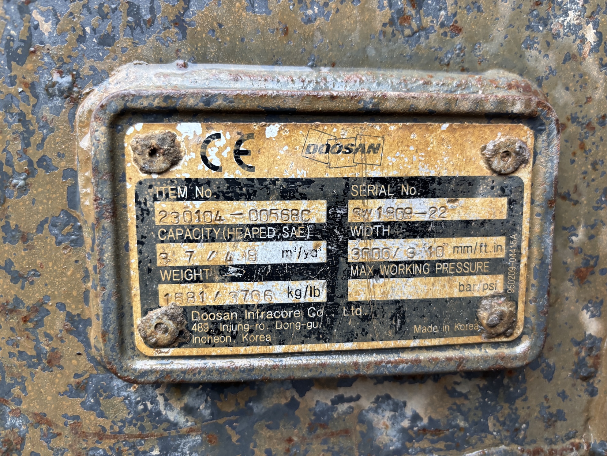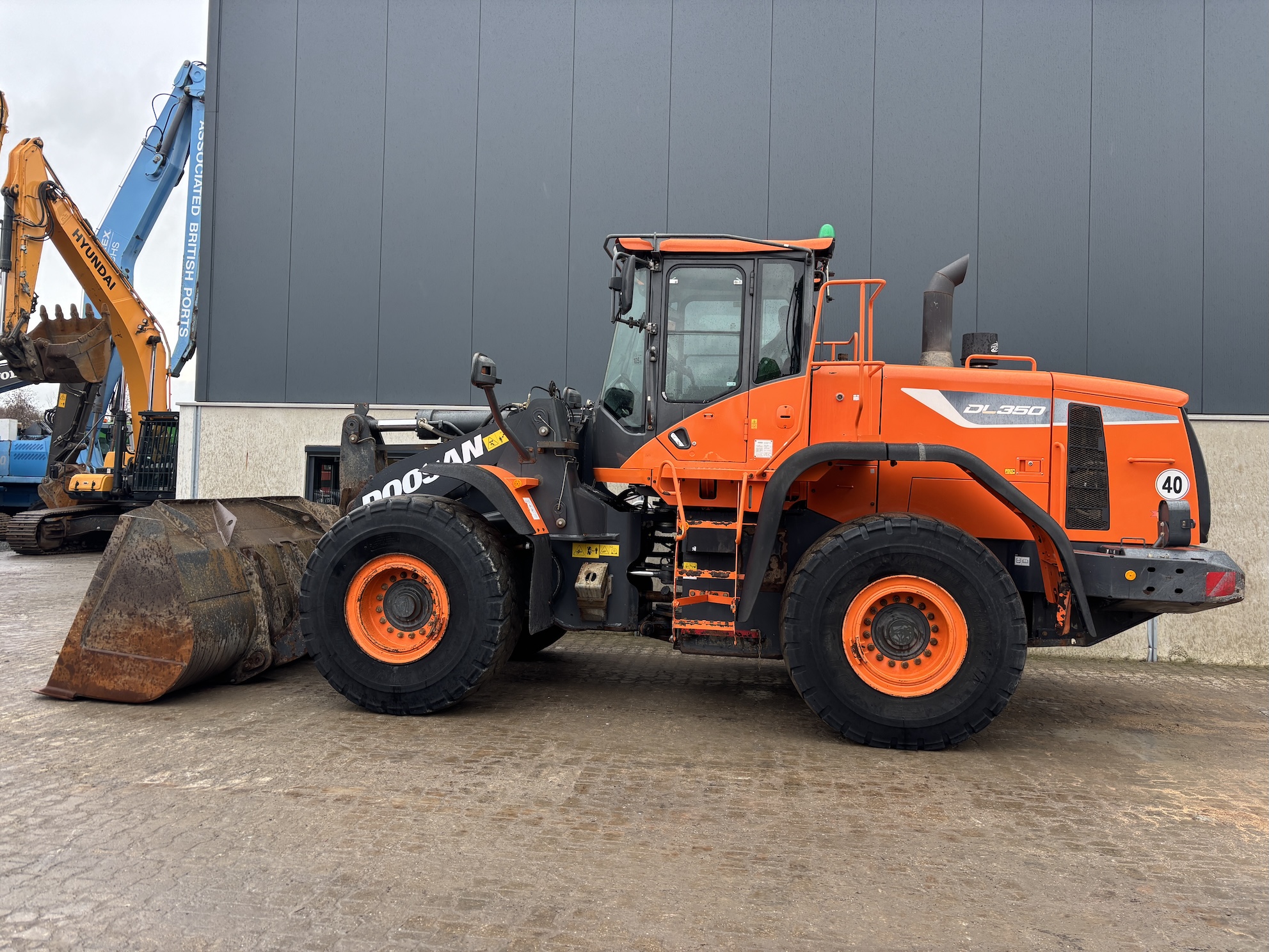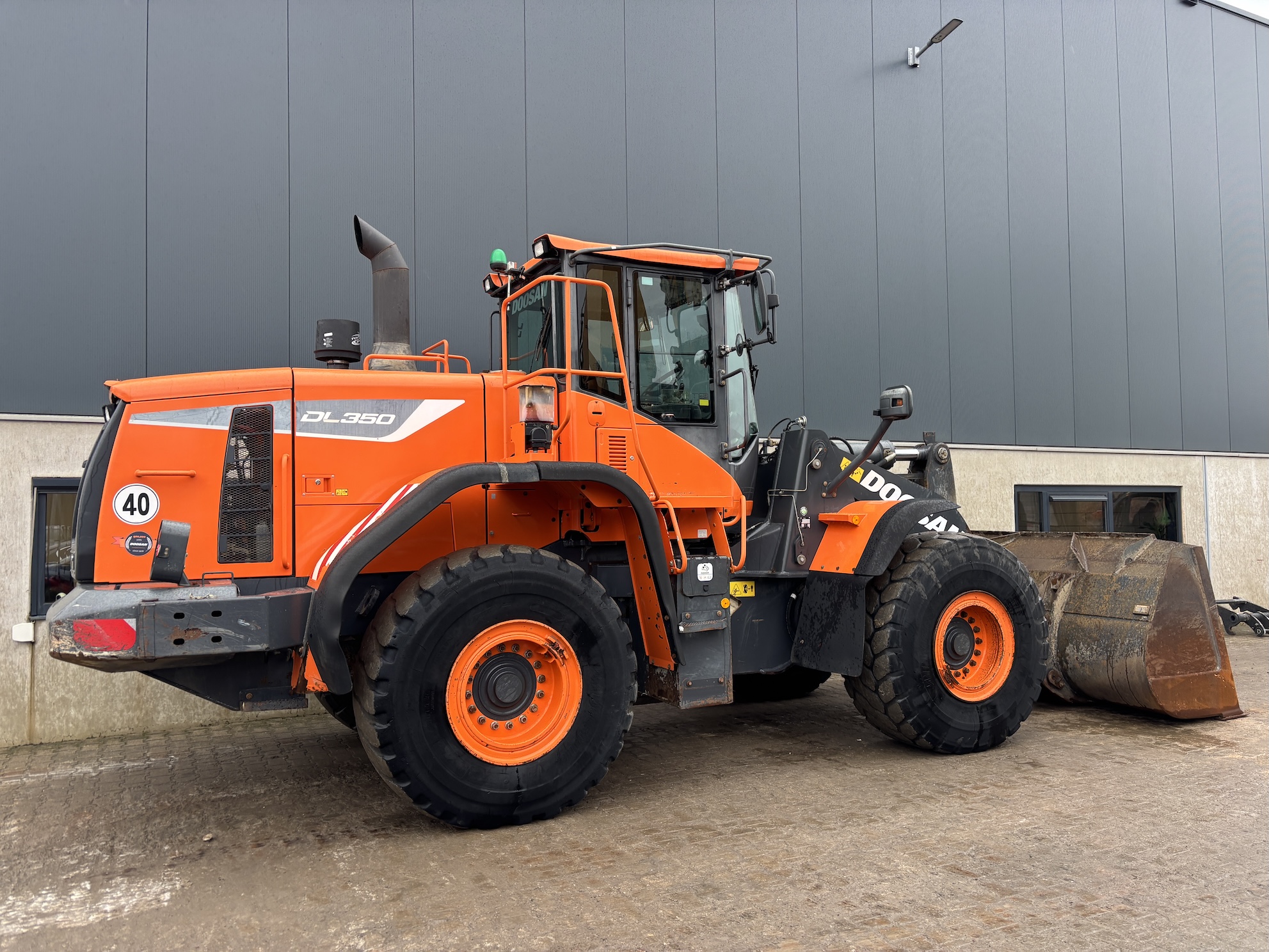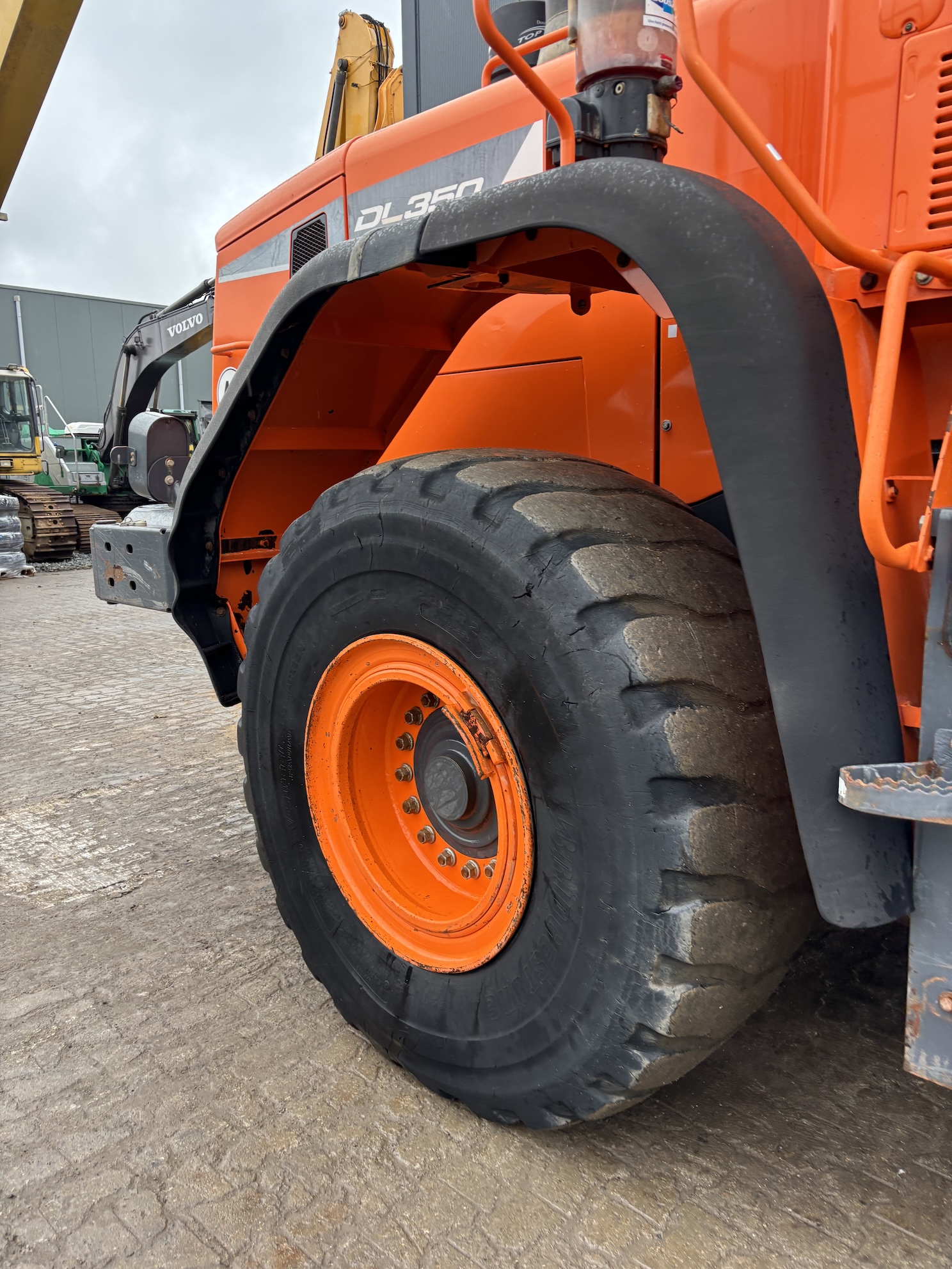 This Doosan DL350-5 wheel loader is equipped with a 6 cilinder water cooled turbo charged Doosan DL08-MEL01 diesel engine (202kW) with just 7284 working hours on the service meter. 3.7m3 Doosan bulk bucket, central lubrication, extra work lights, rear view camera, airco, radio etc.