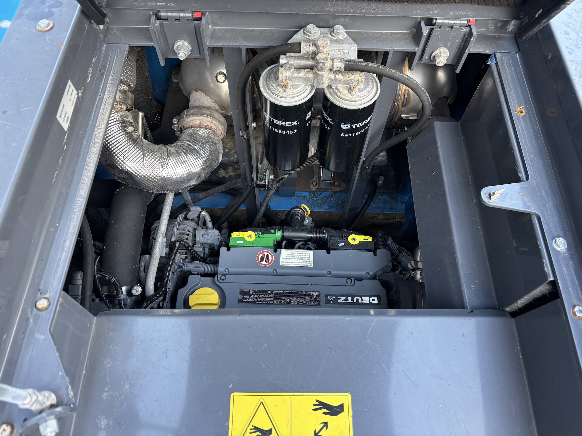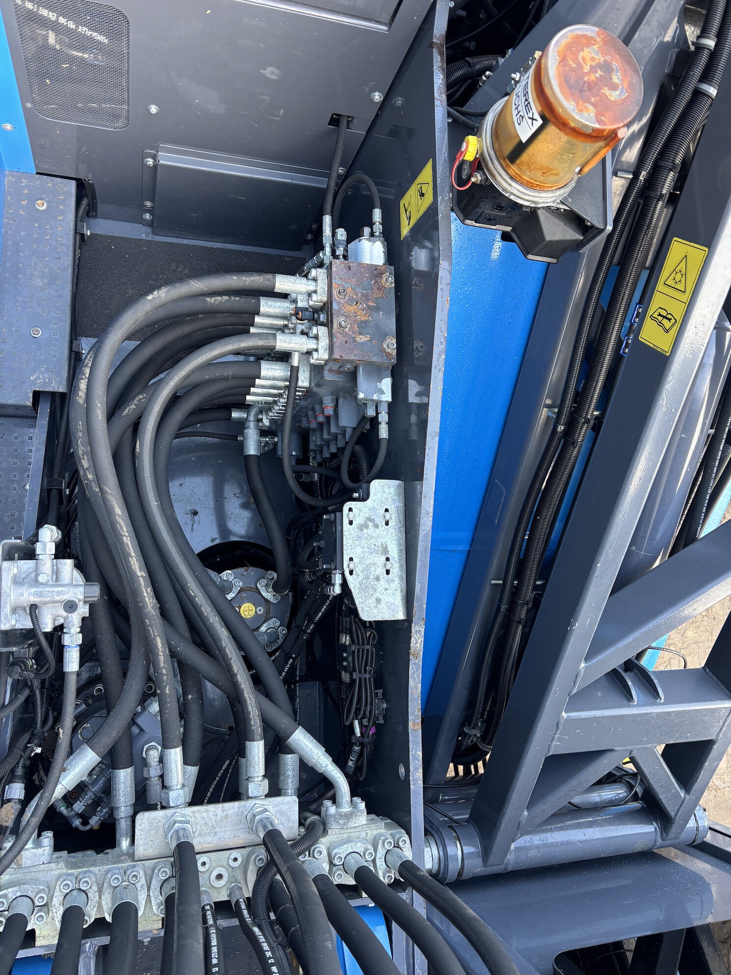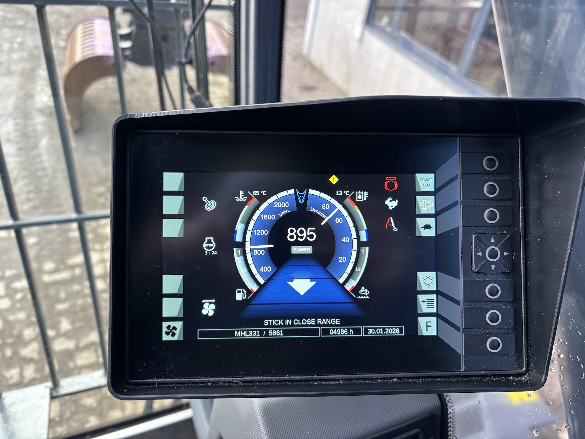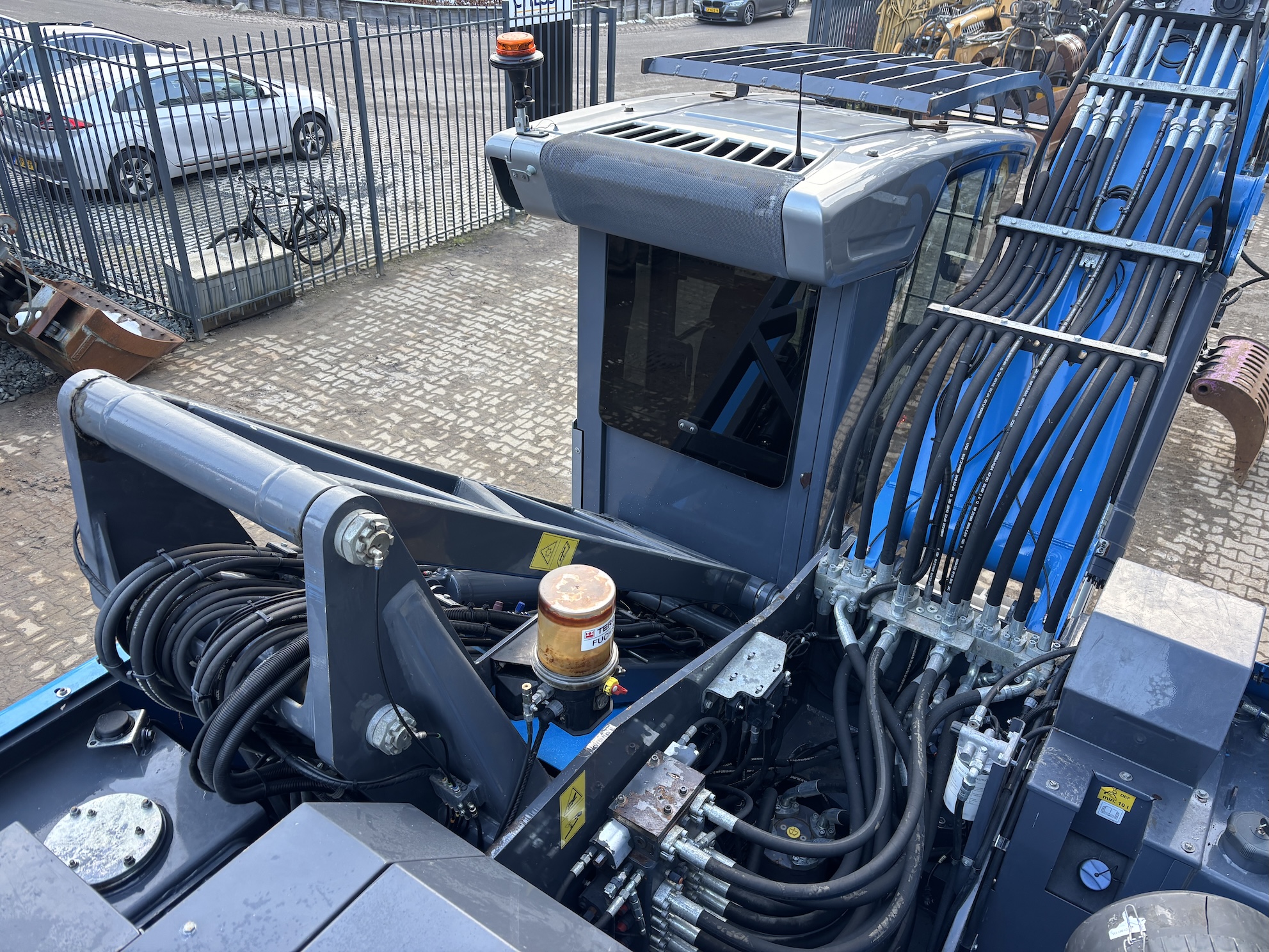This Fuchs MHL331F is equipped with a 4 cilinder water cooled turbo charged Deutz TCD 4.1 L4 (115kW) diesel engine with 4986 working hours on the service meter (of which just 2600 hydraulic working hours). 6.5 meter boom and 4 meter multi purpose stick with 2023 Prodem PSG1003-D selecting grab. Cabin protection, work lights, full rubber tires, read and side view camera, central lubrication, airco, radio etc.