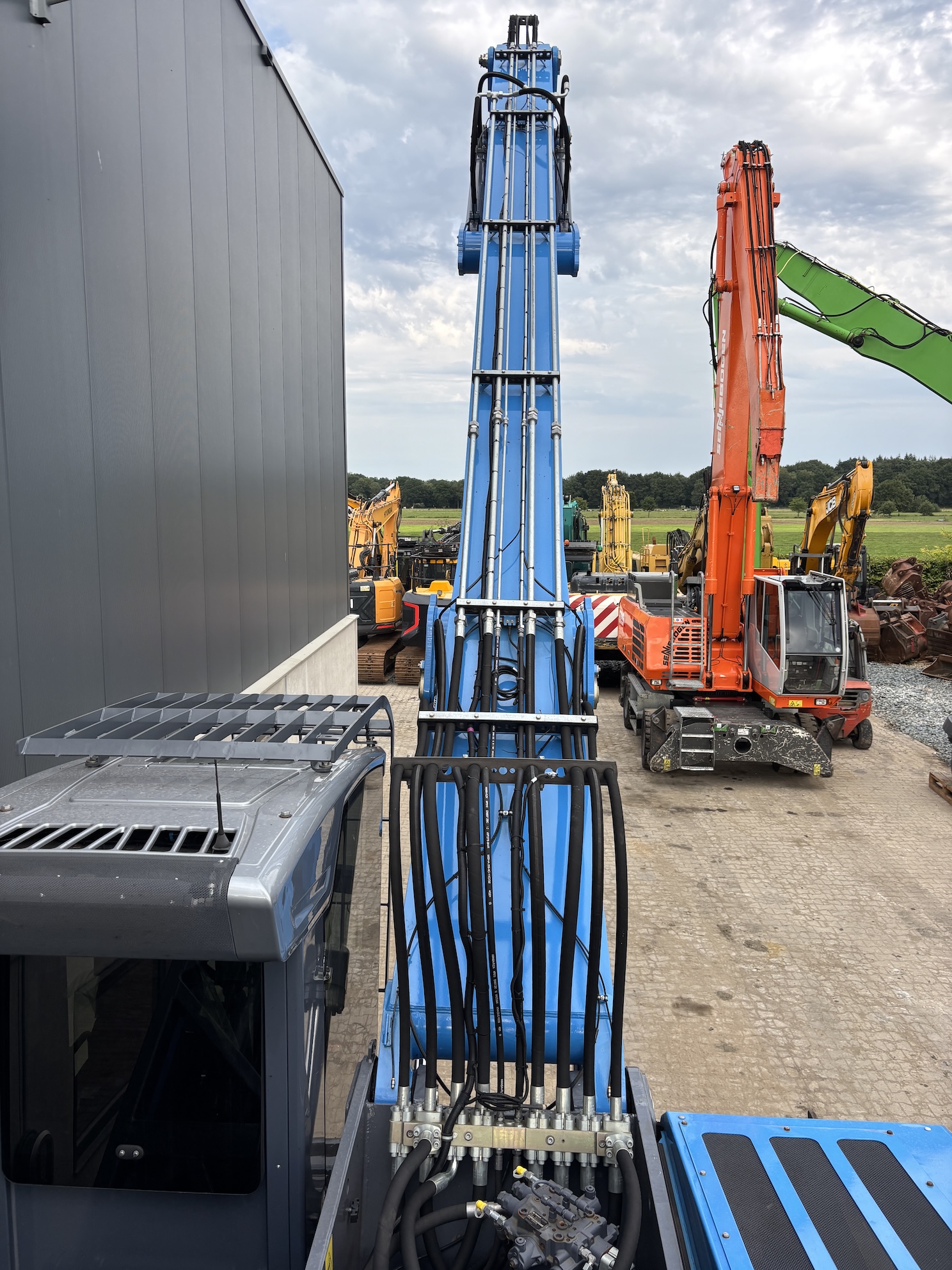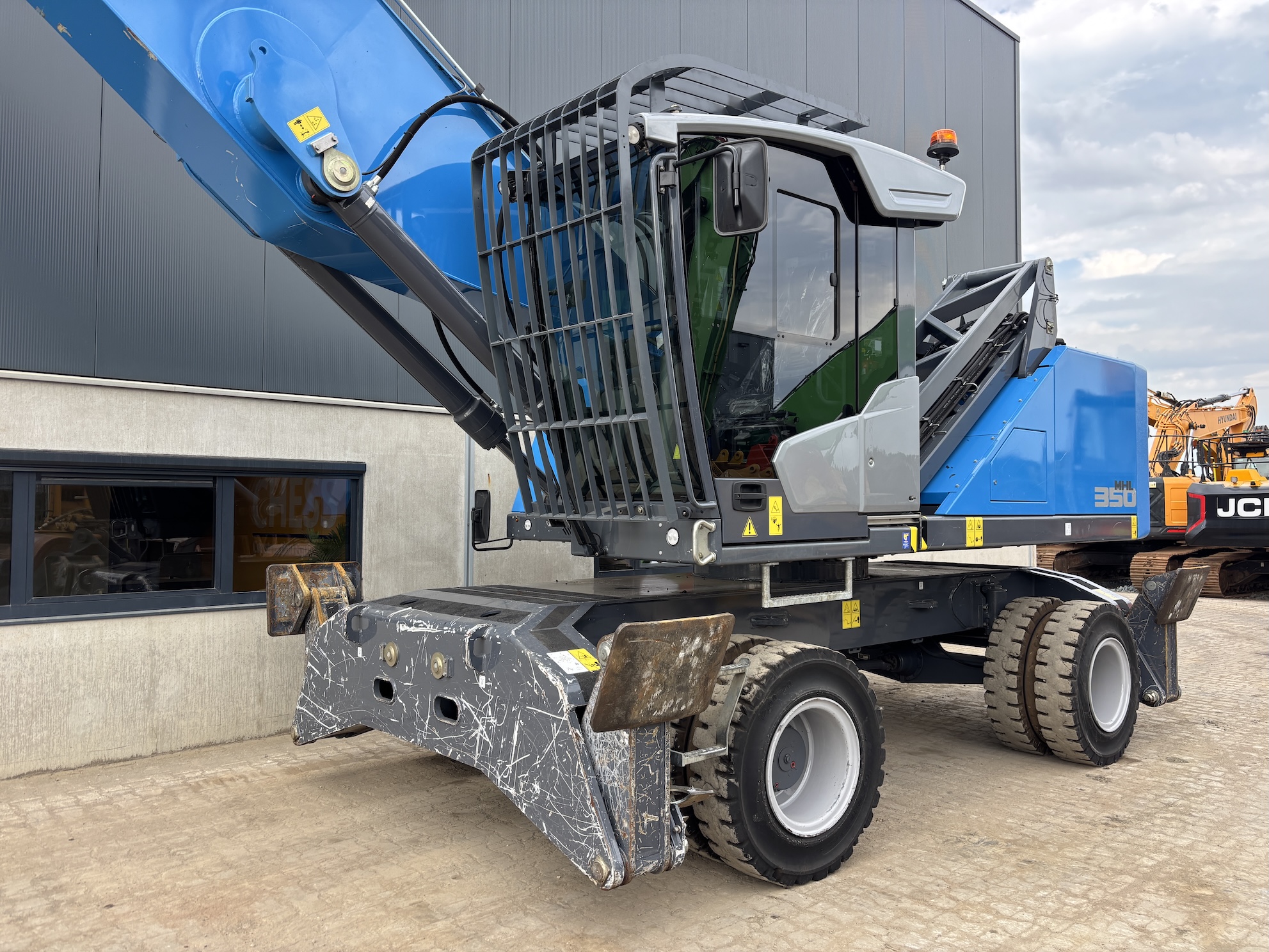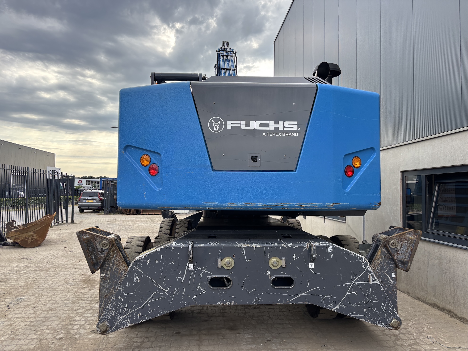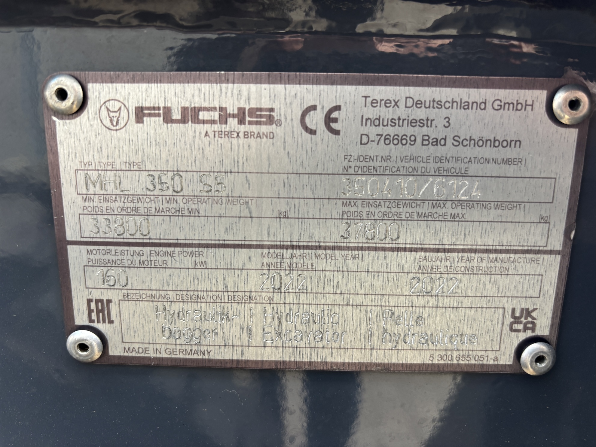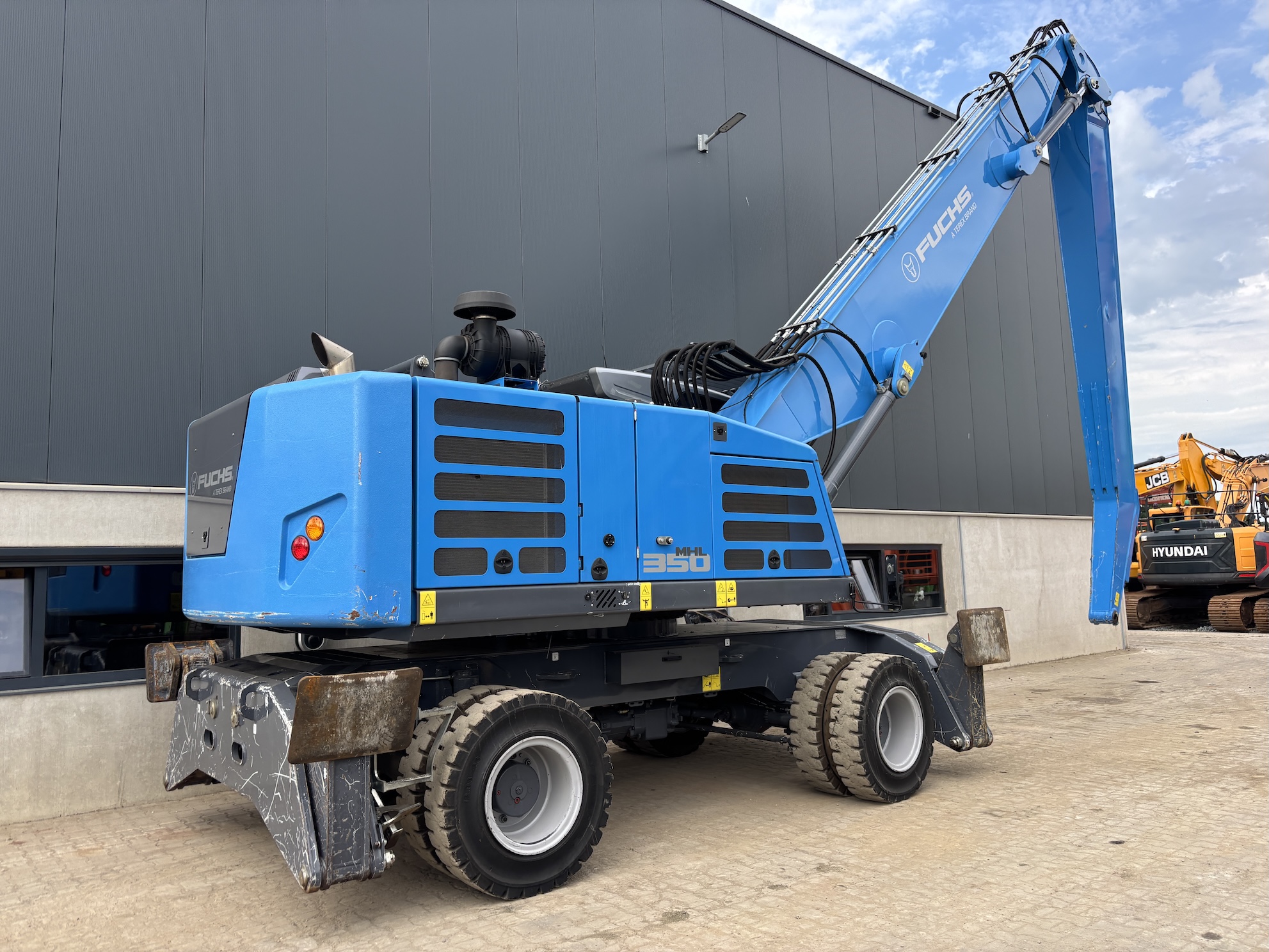 This Fuchs MHL350F is equipped with a 6 cilinder turbo charged water cooled Deutz TCD6.1 diesel engine (160kW) and is build in 2022. Machine has 3692 working hours on the service meter of which just 2417 hydraulic hours! 8.5 meter boom + 7.2 meter stick which results in 16.1 meter reach. 4 outriggers, central lubrication, cabin protection, high rise cabin, side and rear view camera, full rubber tires, airco, radio, cabin steps, additional books etc. Fuchs grab optional.