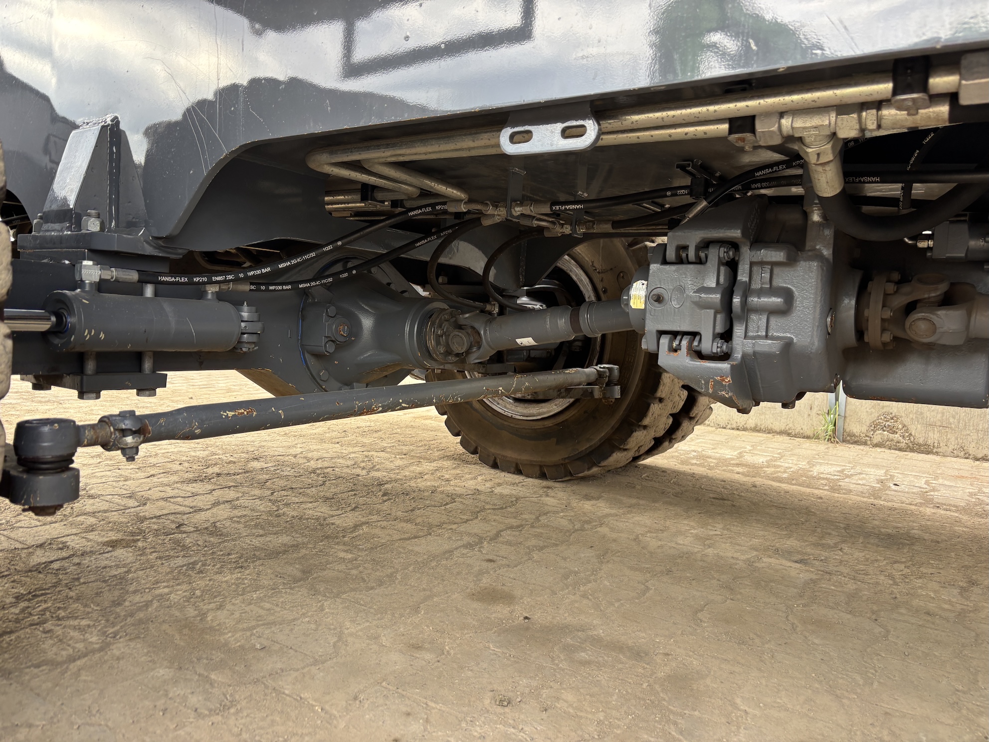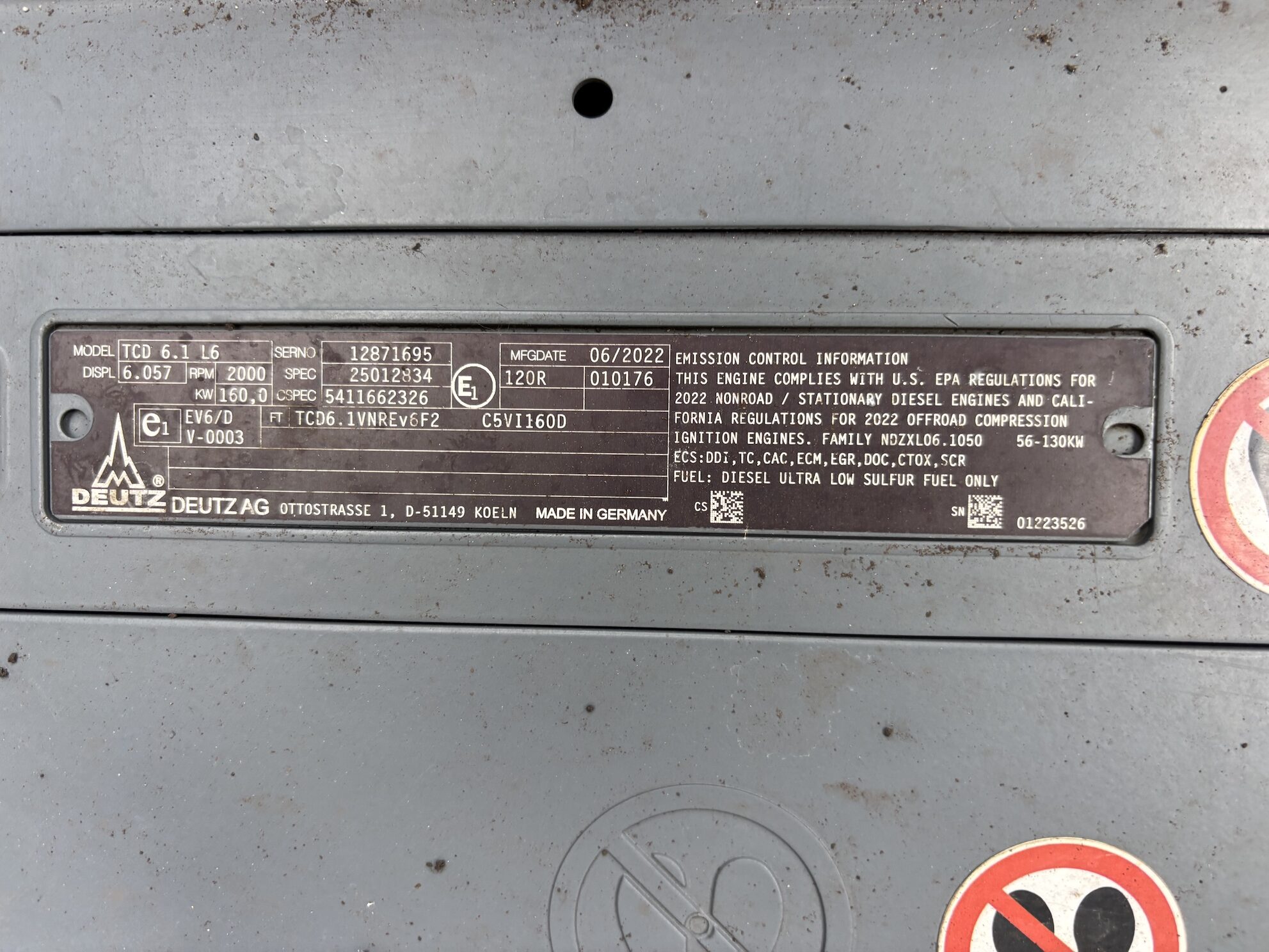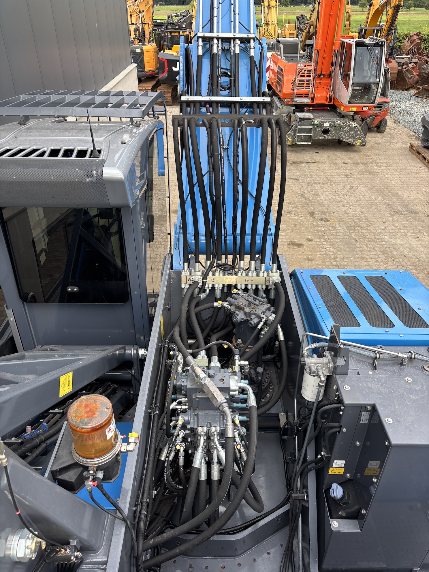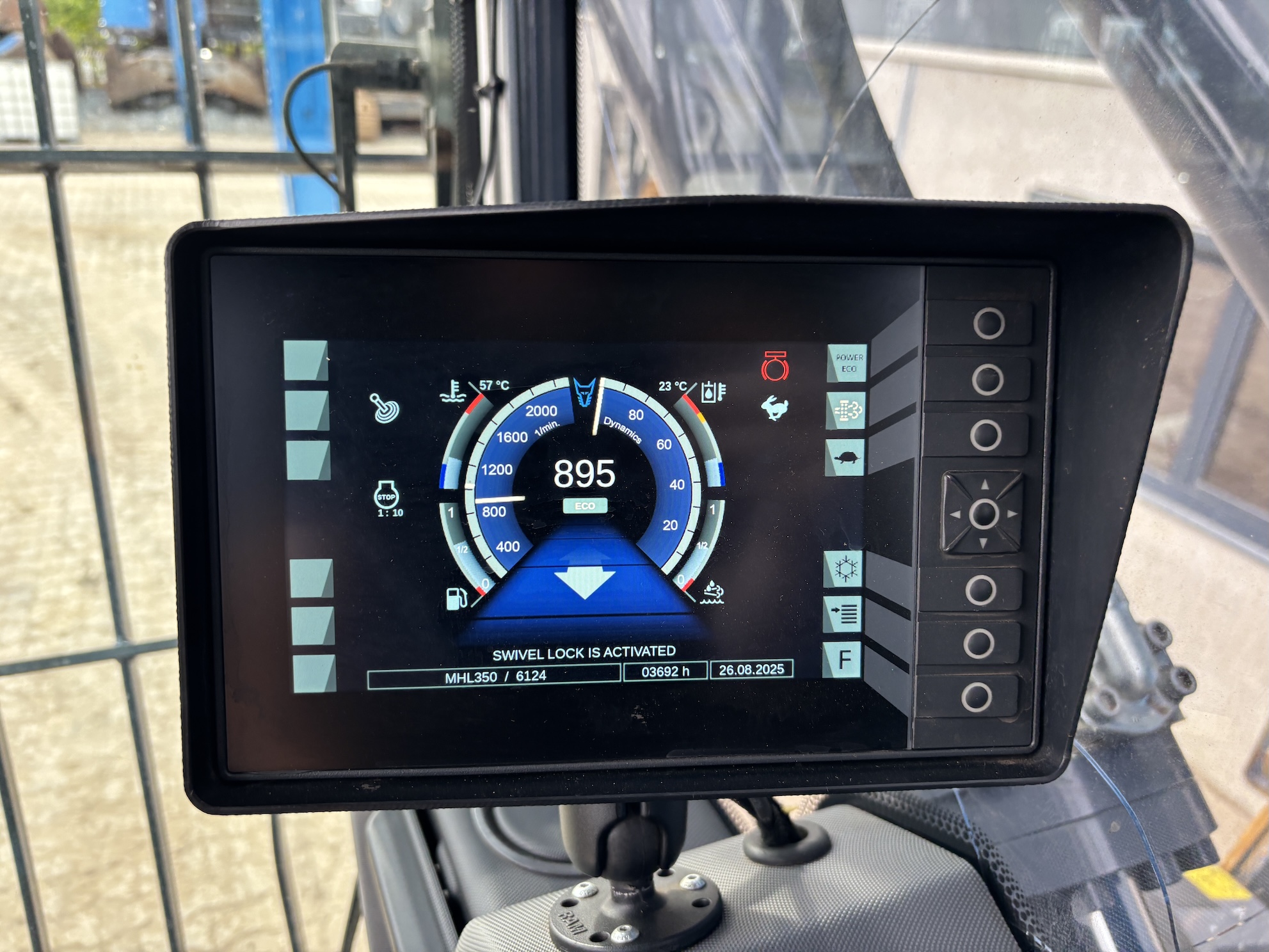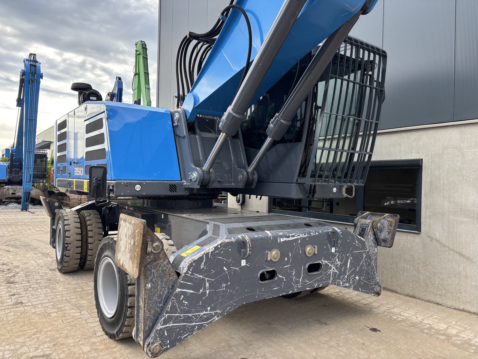 This Fuchs MHL350F is equipped with a 6 cilinder turbo charged water cooled Deutz TCD6.1 diesel engine (160kW) and is build in 2022. Machine has 3692 working hours on the service meter of which just 2417 hydraulic hours! 8.5 meter boom + 7.2 meter stick which results in 16.1 meter reach. 4 outriggers, central lubrication, cabin protection, high rise cabin, side and rear view camera, full rubber tires, airco, radio, cabin steps, additional books etc. Fuchs grab optional.