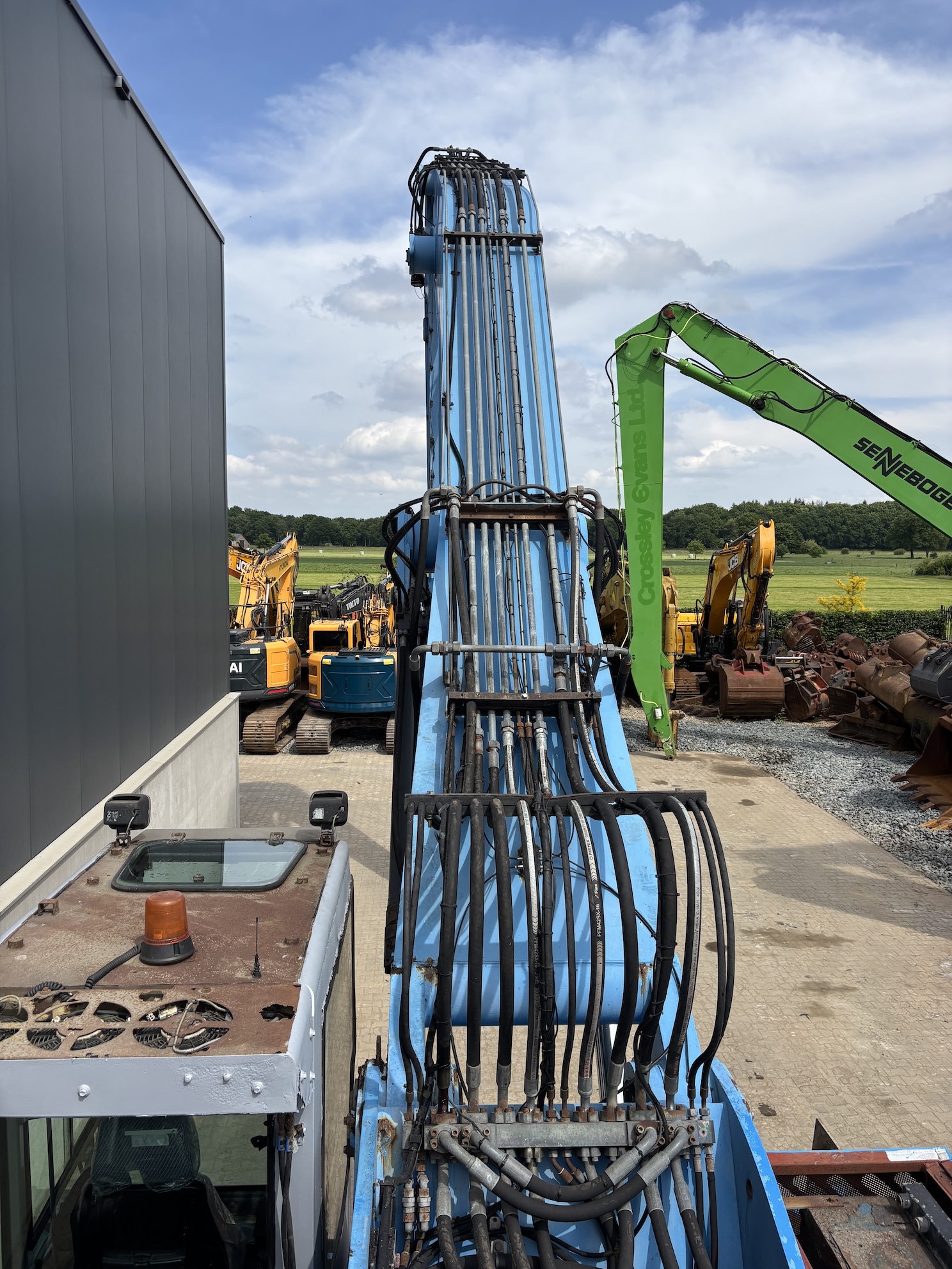 11,35 mtr bananaboom with 8,95 grapple stick, total reach up to 21 mtrs. Attachments such as clamshell grab is optional.