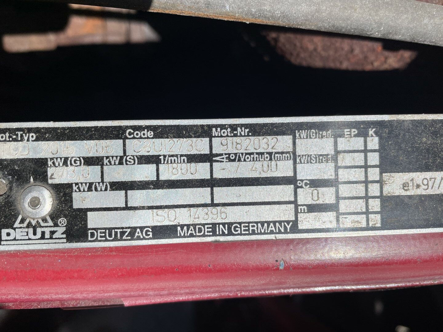 6 cylinder Deutz TCD 2015 V06 4V turbo diesel engine (273KW / 366 HP) at 1800 RPM with about 15765 working hours on the servicemeter
