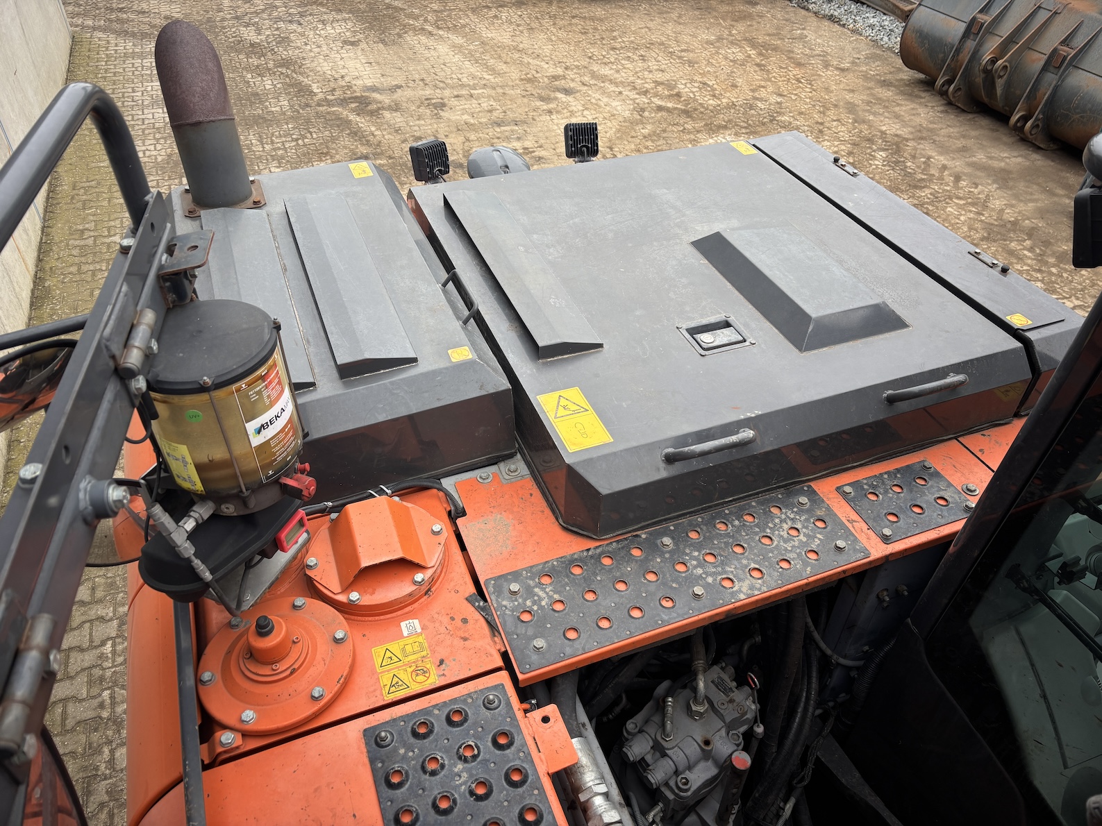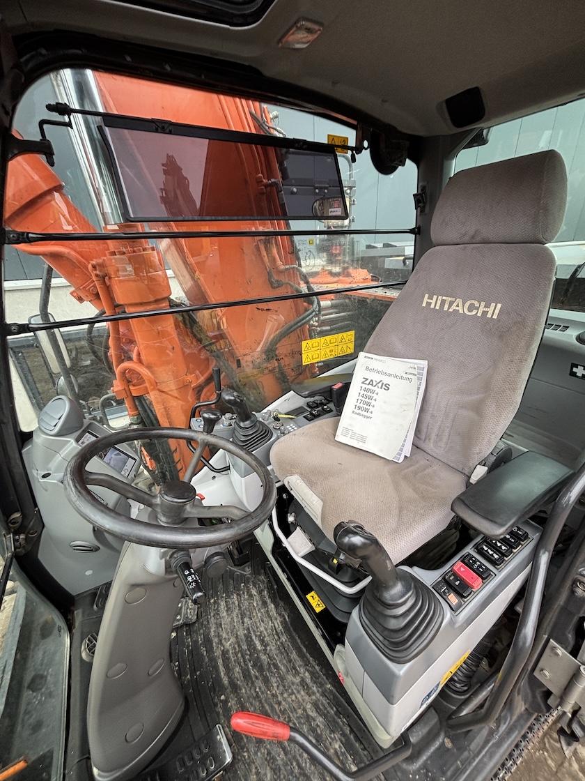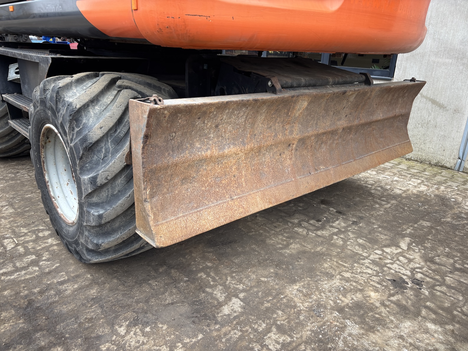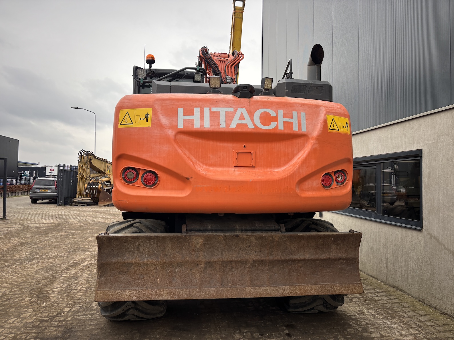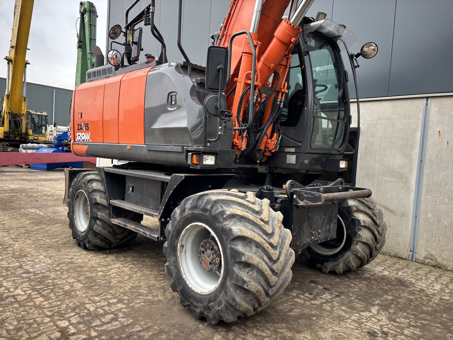 This Hitachi ZX170W-6 is equipped with a 4 cilinder water cooled turbo charged Isuzu 4HKX1 (128kW) diesel engine with just 7723 working hours on the service meter. VA boom, all hydraulic functions possible, hydraulic tilting quick hitch, grading bucket, additional work lights, wide single tires with good profile left, dozer blade, central lubrication, books, rear view camera, airco, radio etc.