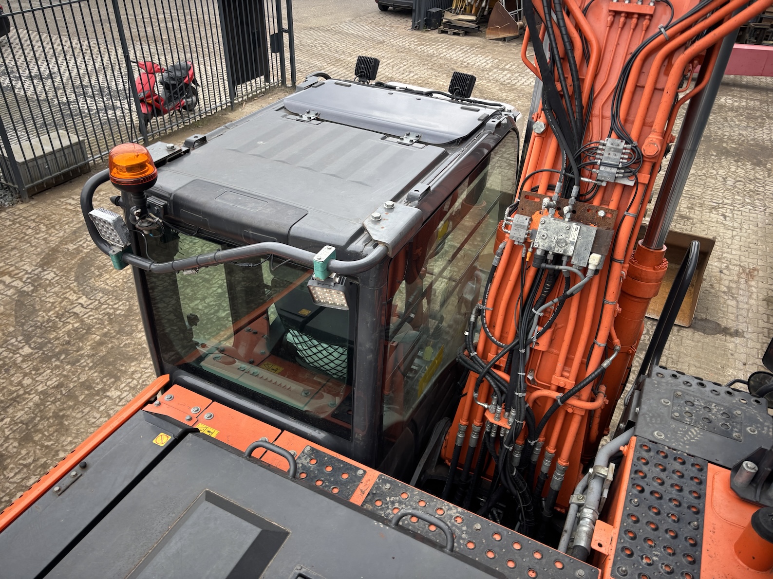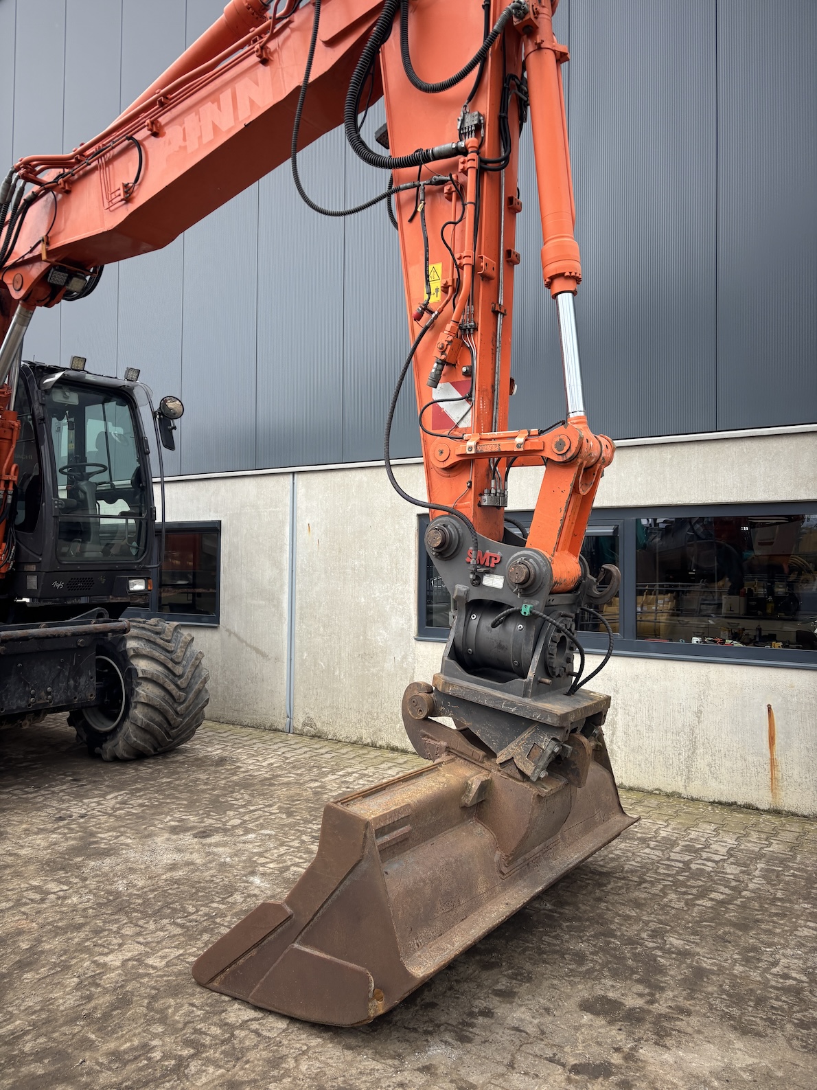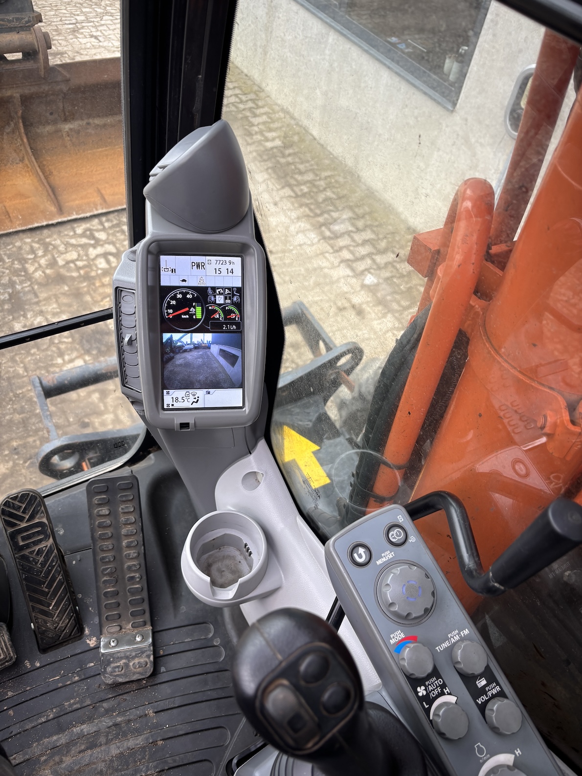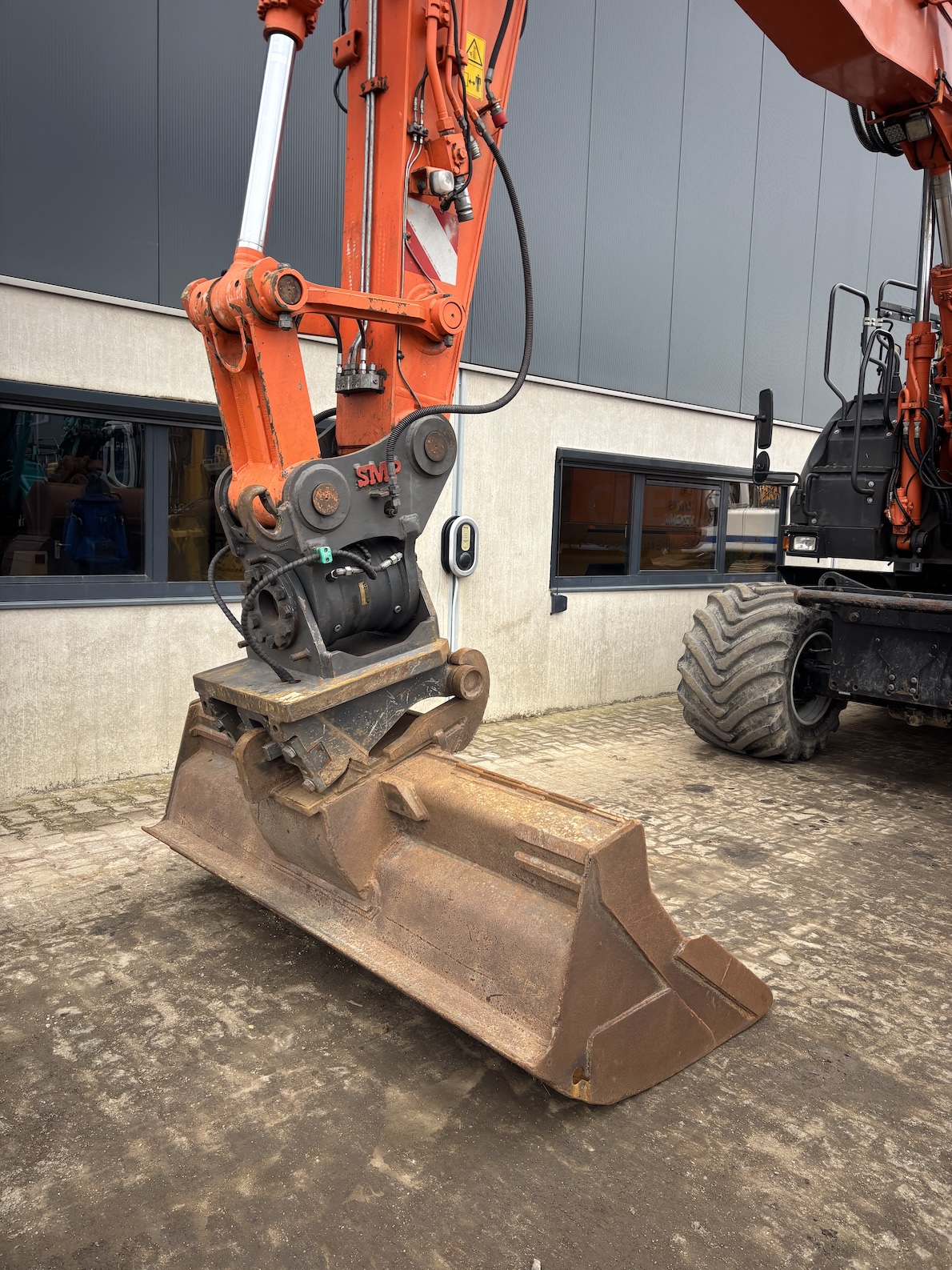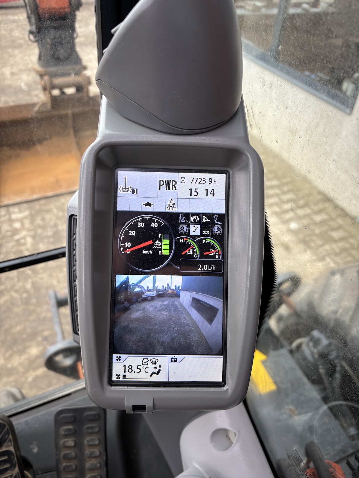 This Hitachi ZX170W-6 is equipped with a 4 cilinder water cooled turbo charged Isuzu 4HKX1 (128kW) diesel engine with just 7723 working hours on the service meter. VA boom, all hydraulic functions possible, hydraulic tilting quick hitch, grading bucket, additional work lights, wide single tires with good profile left, dozer blade, central lubrication, books, rear view camera, airco, radio etc.