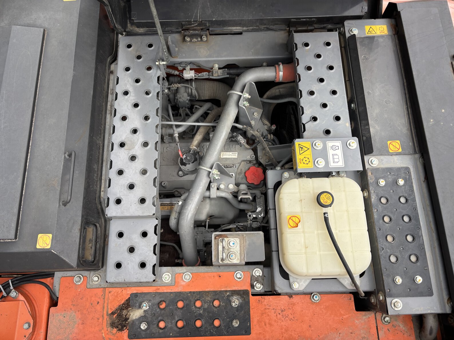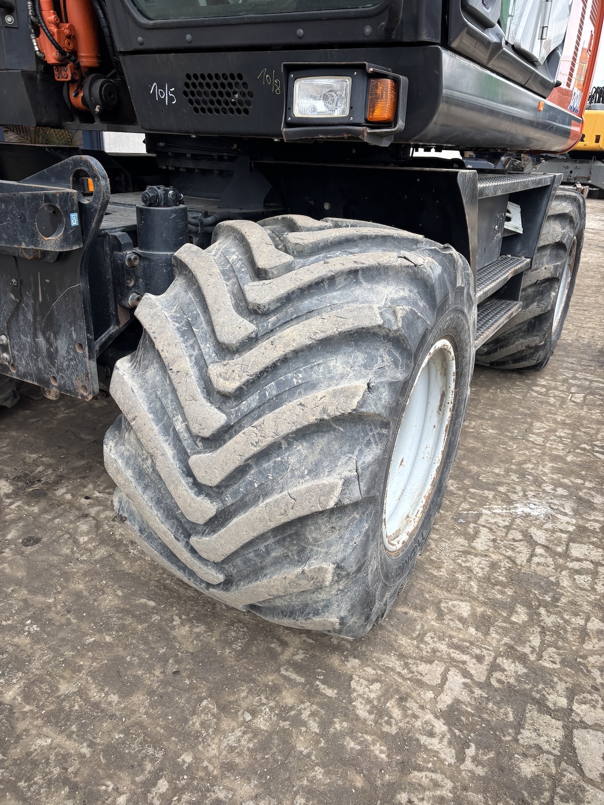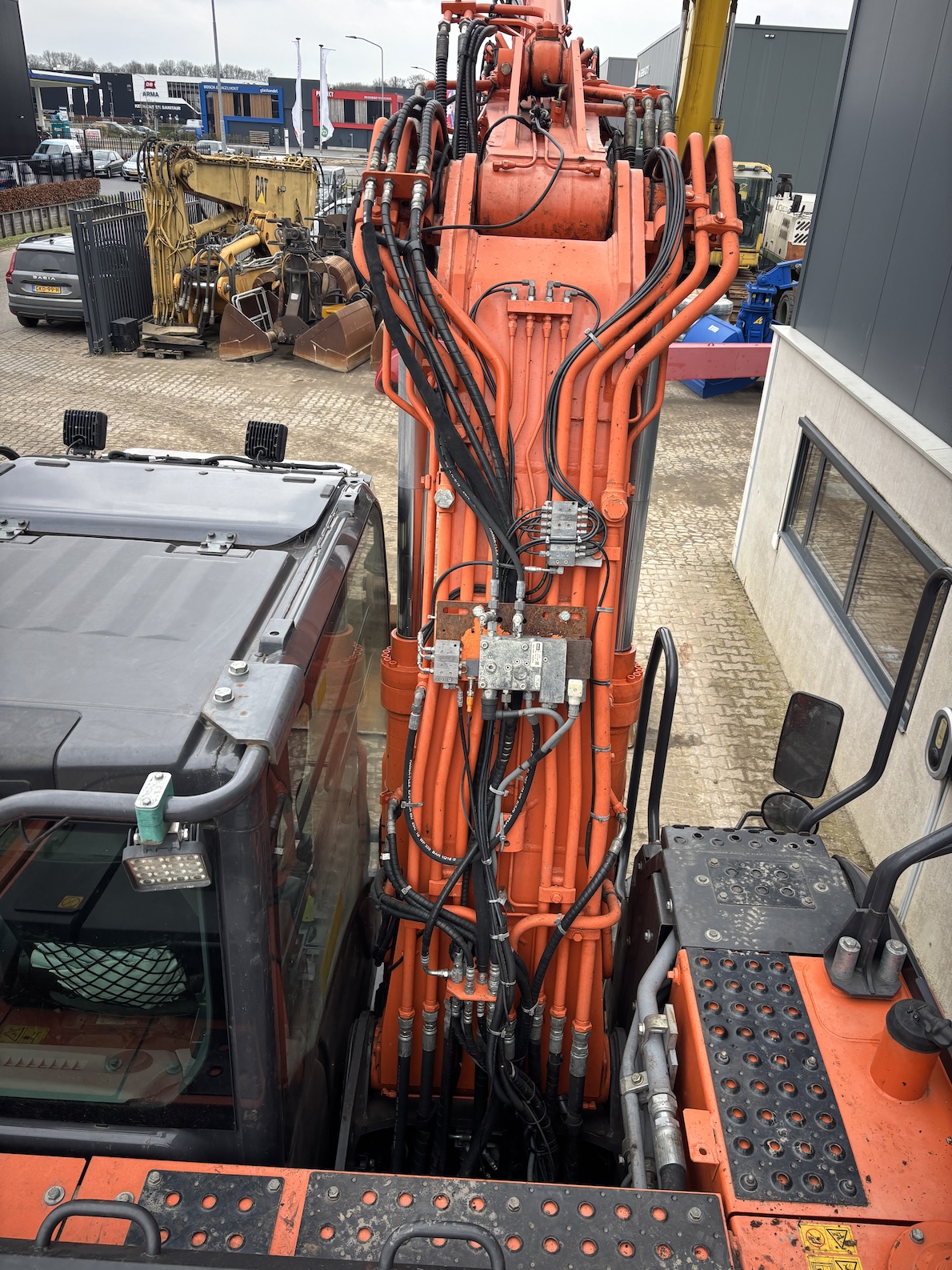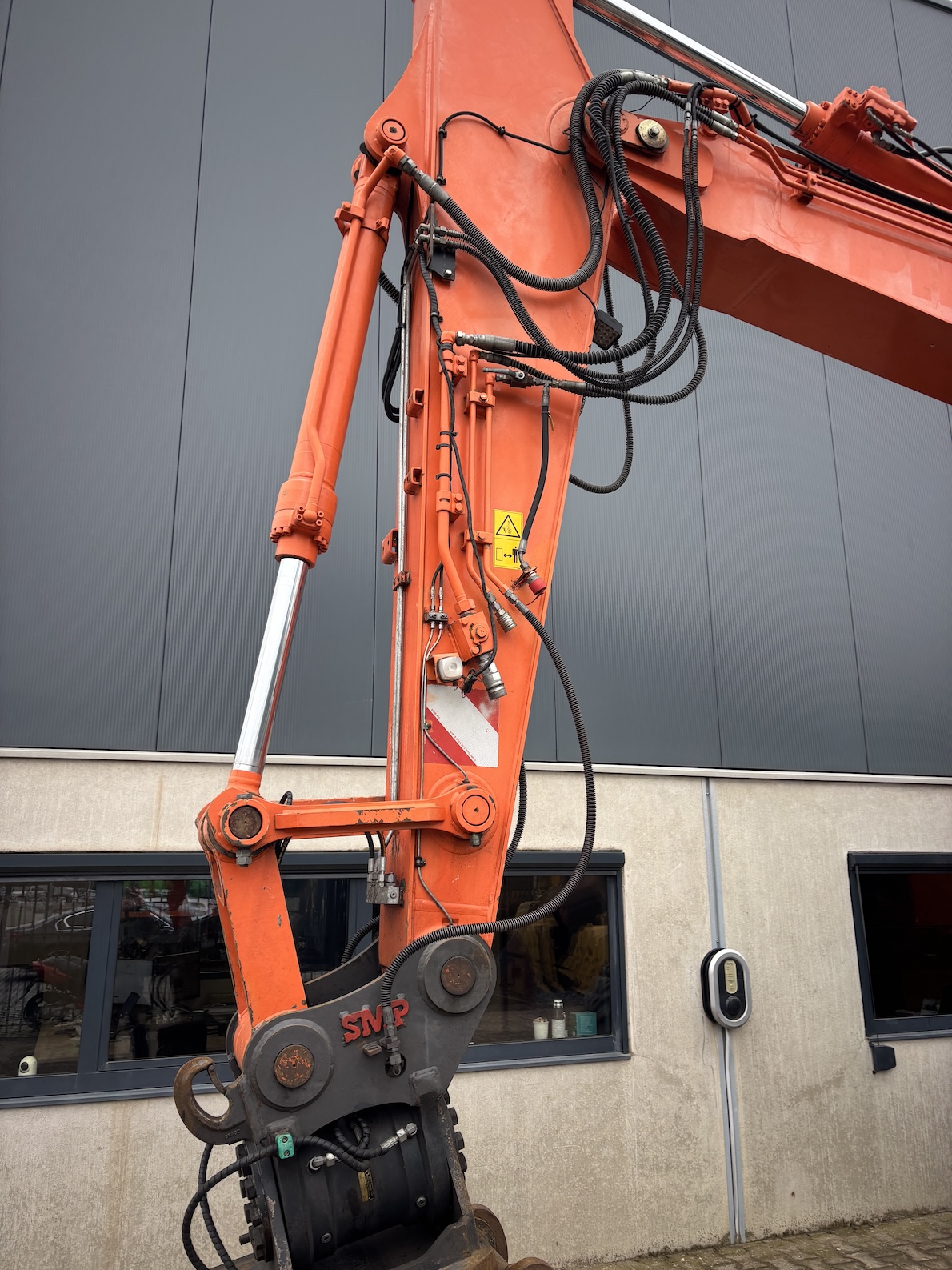 This Hitachi ZX170W-6 is equipped with a 4 cilinder water cooled turbo charged Isuzu 4HKX1 (128kW) diesel engine with just 7723 working hours on the service meter. VA boom, all hydraulic functions possible, hydraulic tilting quick hitch, grading bucket, additional work lights, wide single tires with good profile left, dozer blade, central lubrication, books, rear view camera, airco, radio etc.