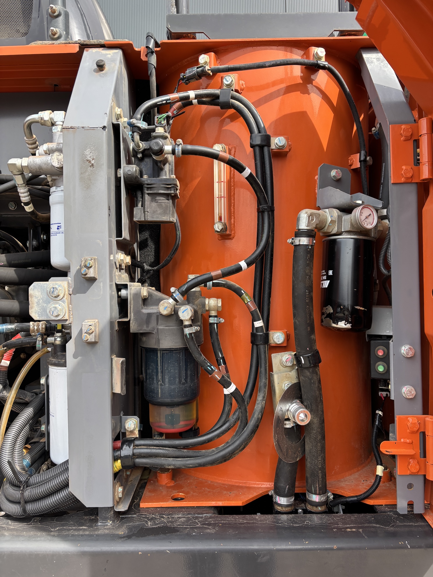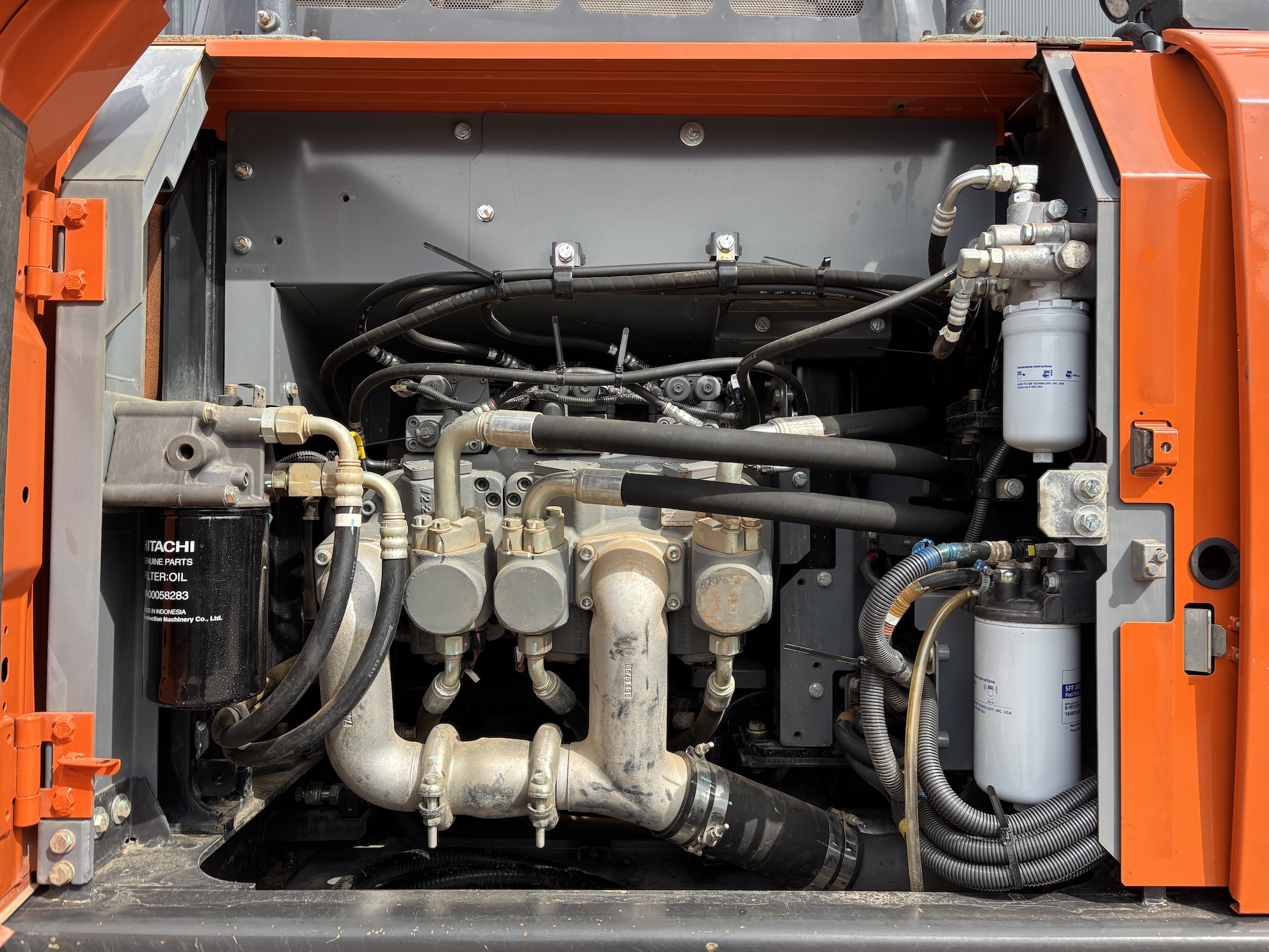 This Hitachi ZX210LC-6 track excavator is equipped with a 4 cilinder water cooled turbo charged Isuzu 4HK1 (124kW) diesel engine. More over, machine has hydraulics for hammer function, hydraulic quick hitch, teeth bucket, extra work lights, top side guards, all-around camera system, prepared for GPS, airco, radio etc.