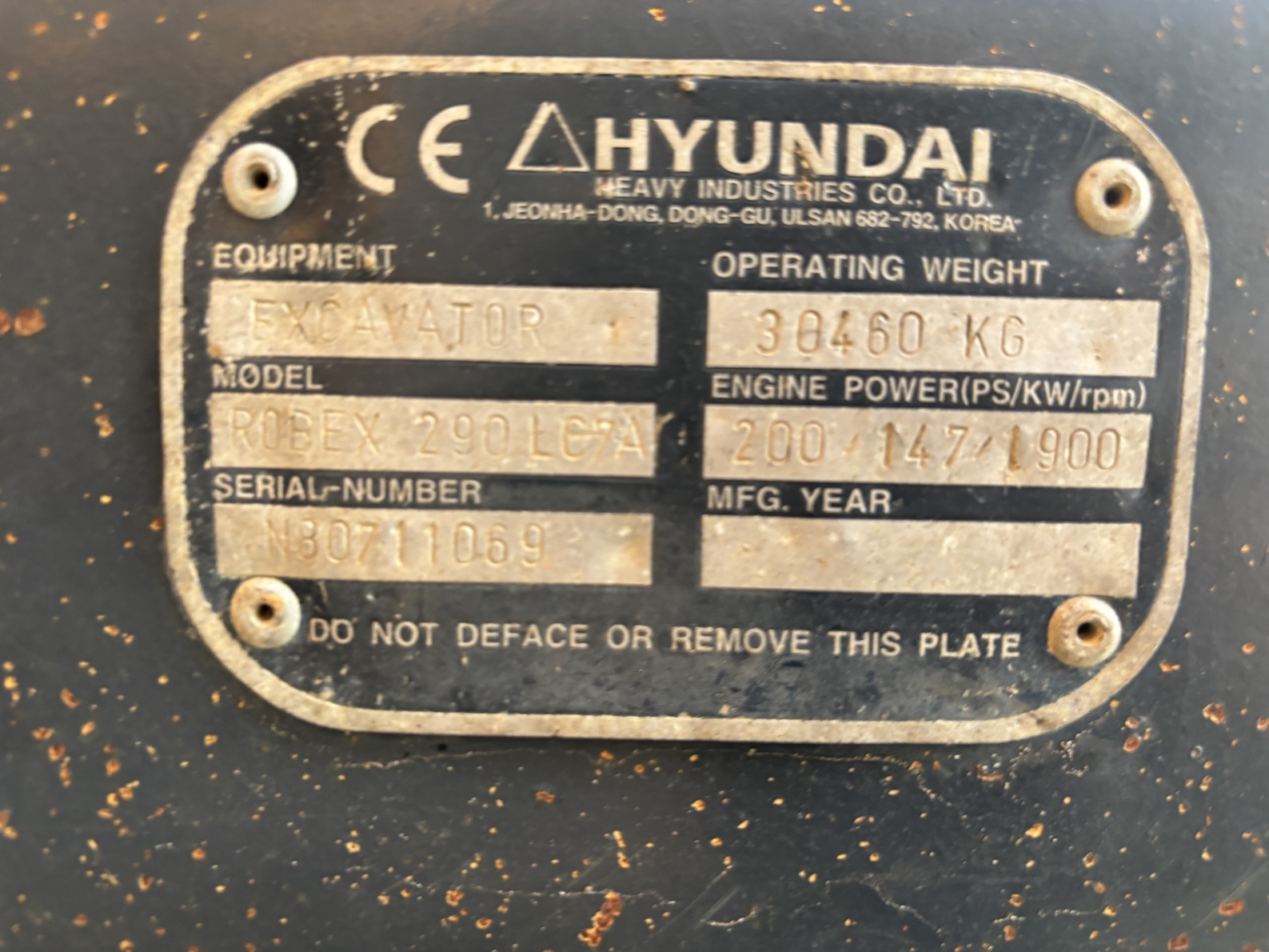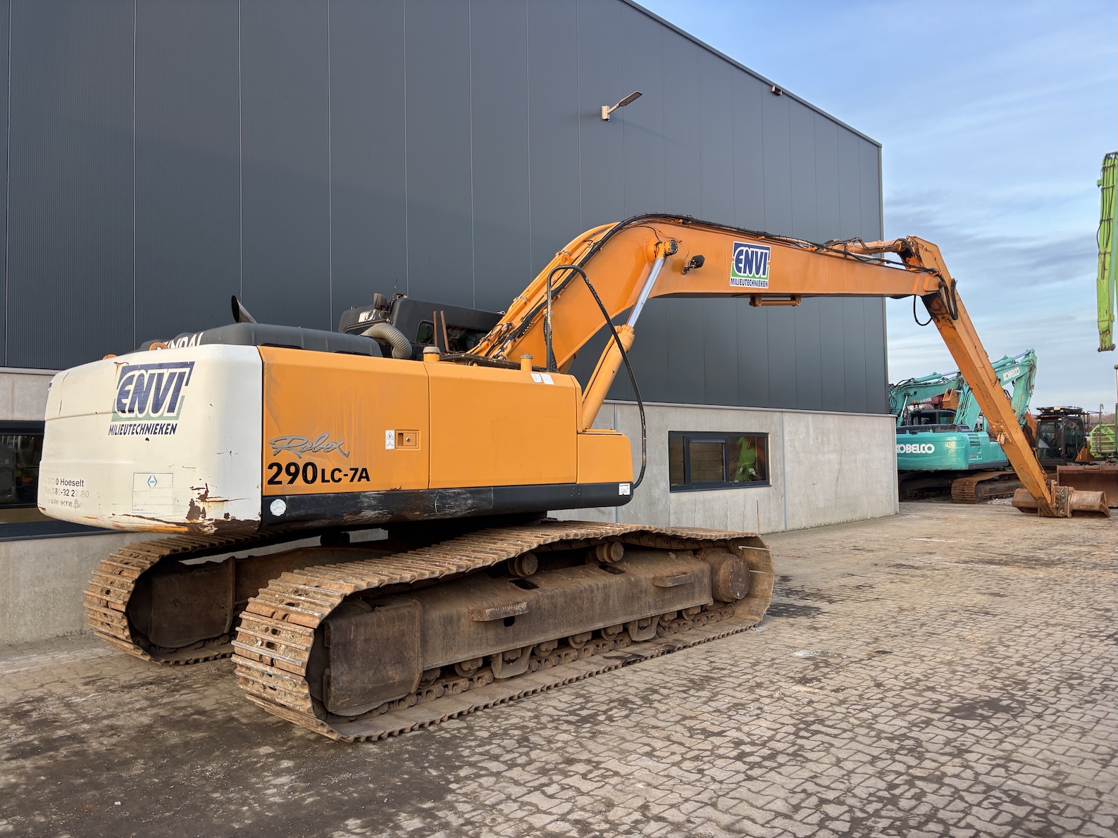 This Hyundai Robex 290LC-7A is equipped with a 6 cilinder water cooled turbo charged Cummins QSB6.7 (147kW) diesel engine with 11779 working hours on the service meter. 18 meter long reach set, hydraulic quick hitch, books included, airco, electric diesel pump etc.