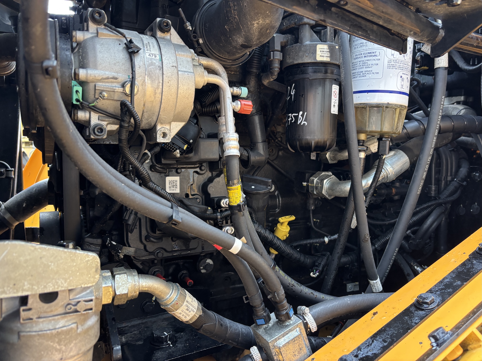 This Hyundai HL960 is equipped with a 6 cilinder water cooled turbo charged Cummins QSB6.7 (166kW) with 14684 working hours on the service meter. Fixed bucket, extra work lights, rear view camera, automatic gearbox, integrated weight scale, airco, radio, central lubrication etc