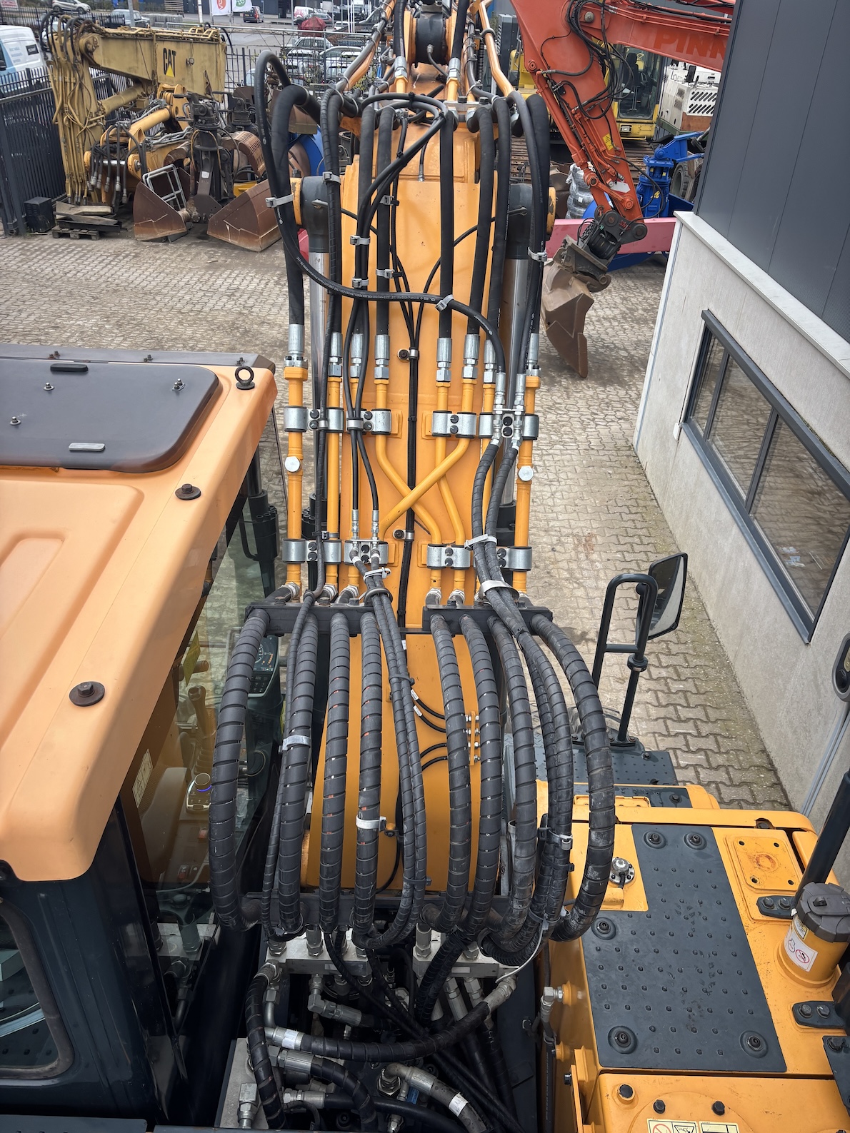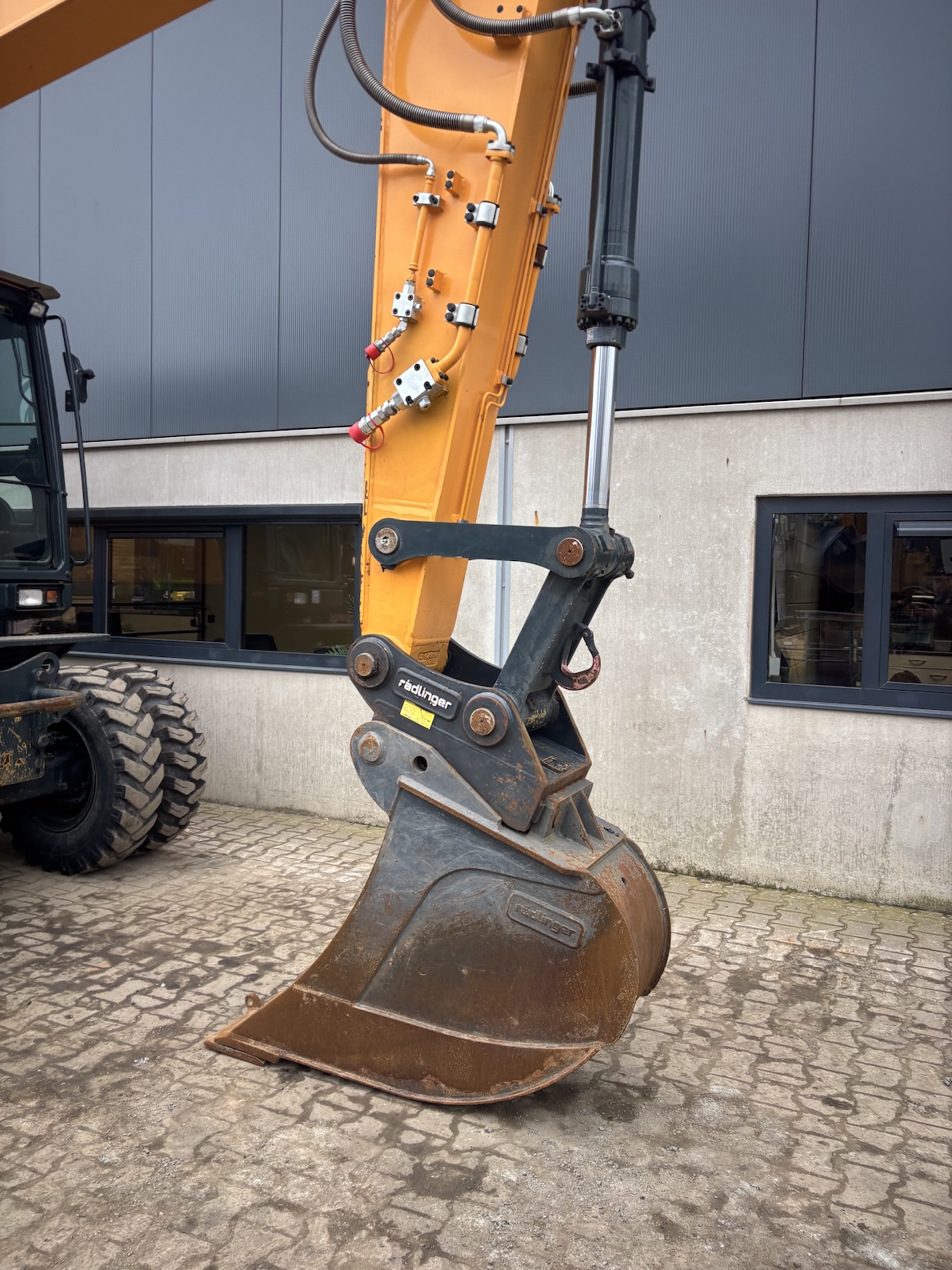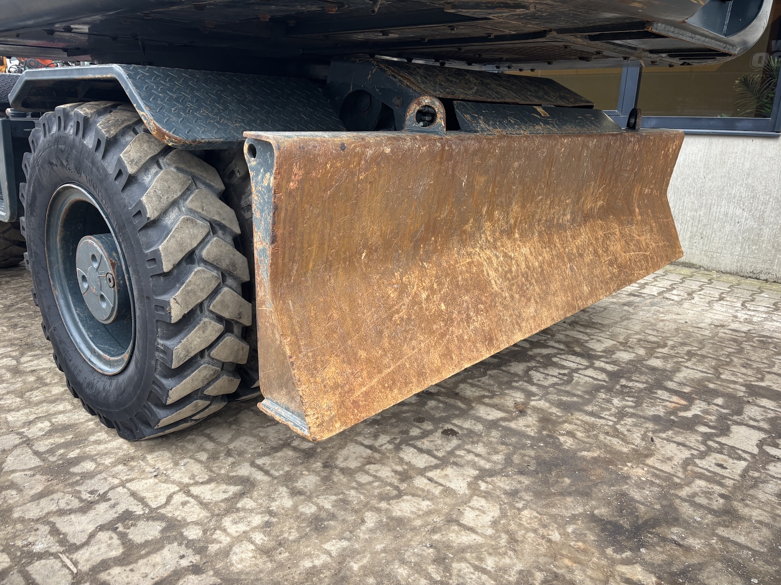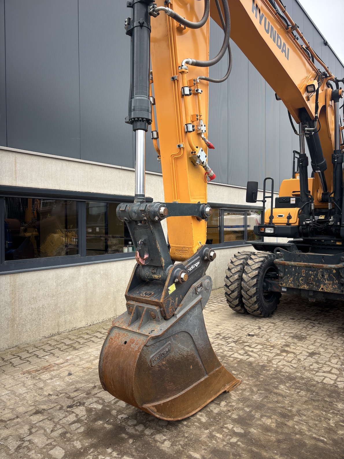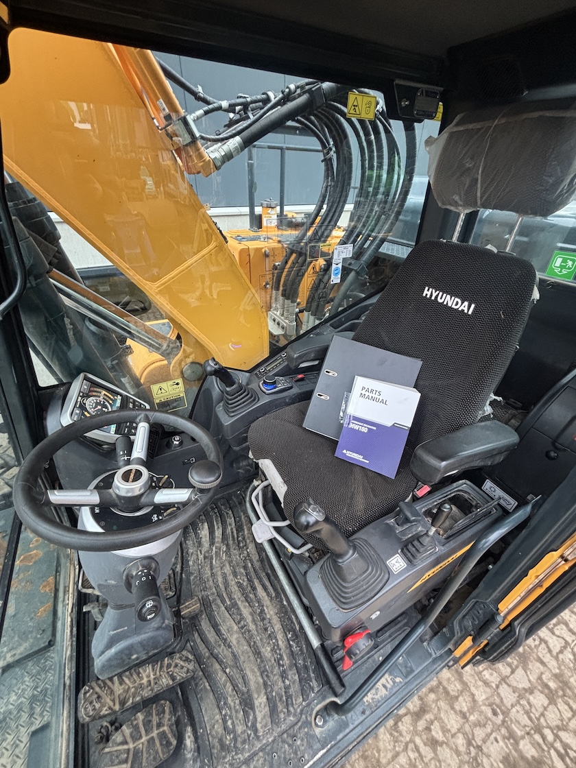 This Hyundai HW180 is equipped with a 6 cilinder water cooled turbo charged Cummins QSB6.7 (127kW) diesel engine with just 1344 working hours on the service meter. VA boom, hydraulics for quick hitch, hammer and rotation piping, mechanical quick hitch, ditch bucket, dozer blade,  like new tires, additional work lights, 360 degrees camera system, all books and papers (NEW) included, electric diesel pump, radio, airco etc.