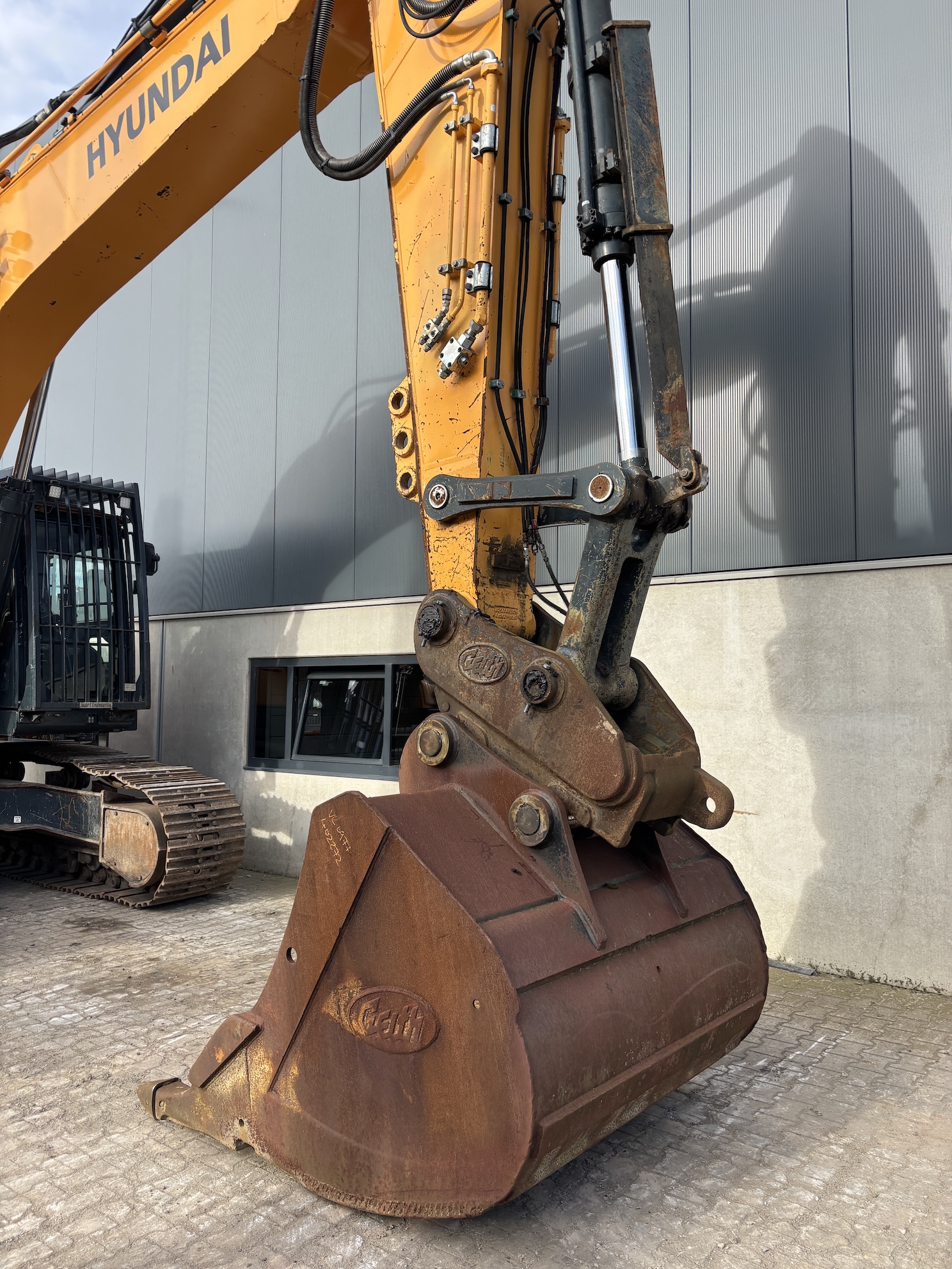 Well functioning Hyundai, operates good. No error codes, no cracks or welds, tidy machine. Only the track chains are a bit stuck further than that undercarriage ok. For more information please contact us.