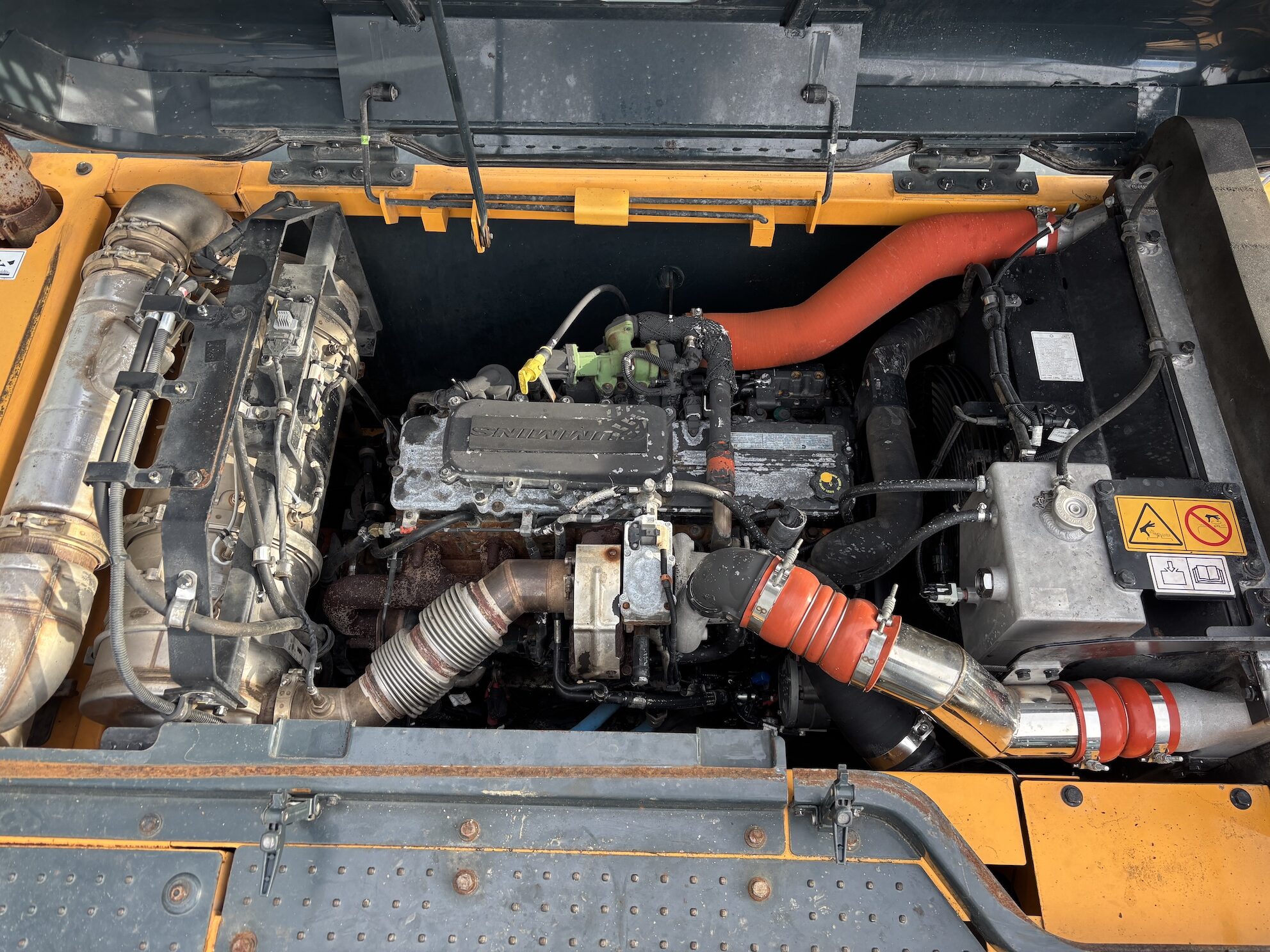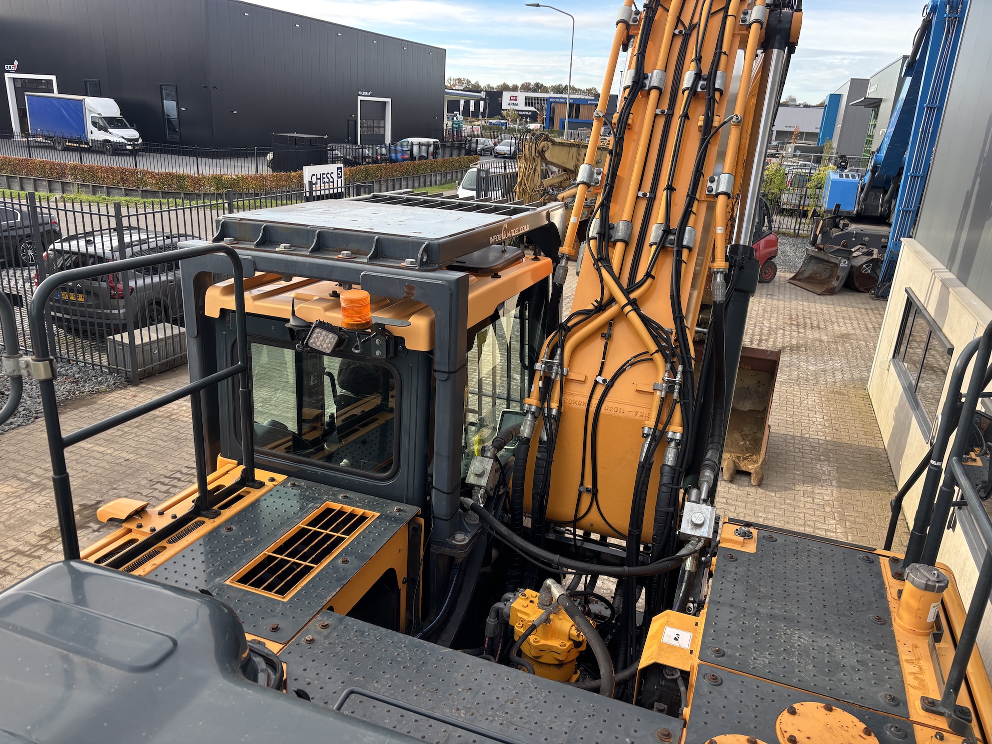 This Hyundai HX380L is equipped with a 6 cilinder water cooled turbo charged Cummins QSL9 diesel engine (261kW) with just 5718 working hours on the service meter. Big teeth bucket, hydraulic quick hitch, extra work lights, cabin protection, cilinder guard, boxing ring, all round camera system, additional books, electric diesel pump etc..