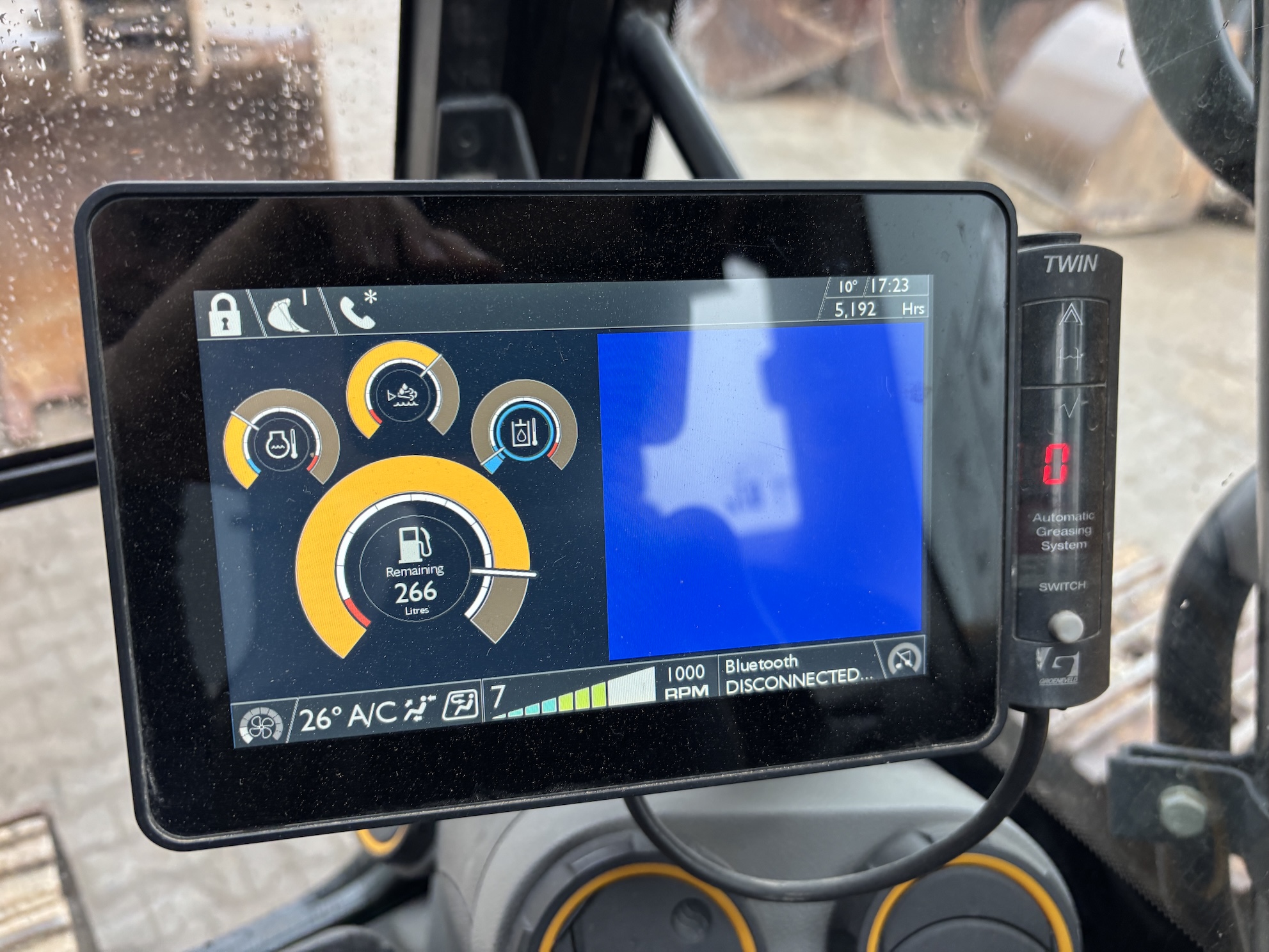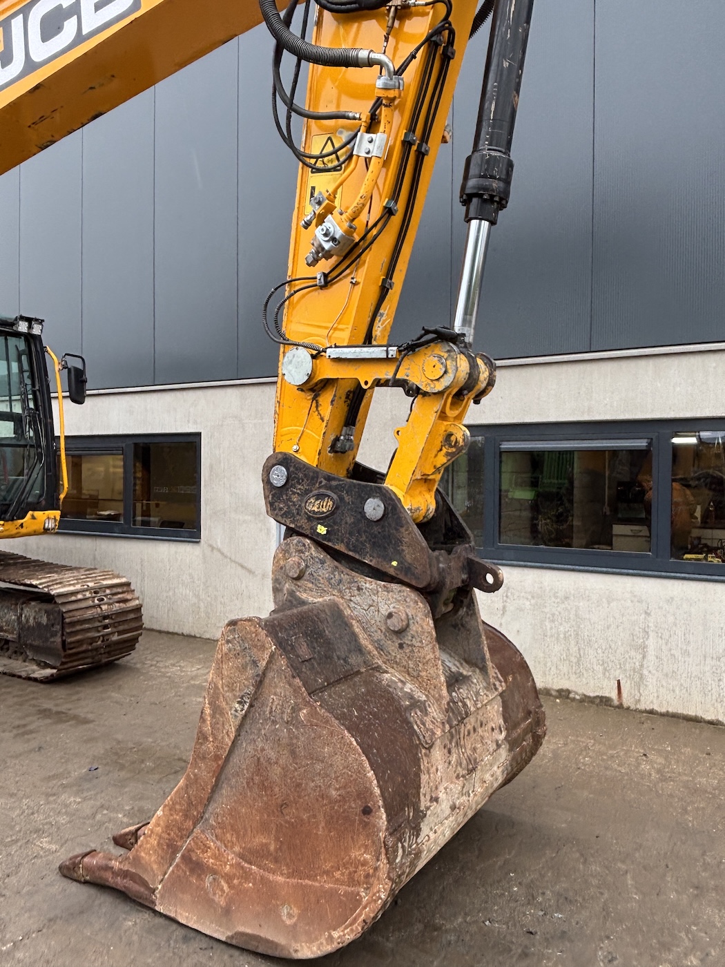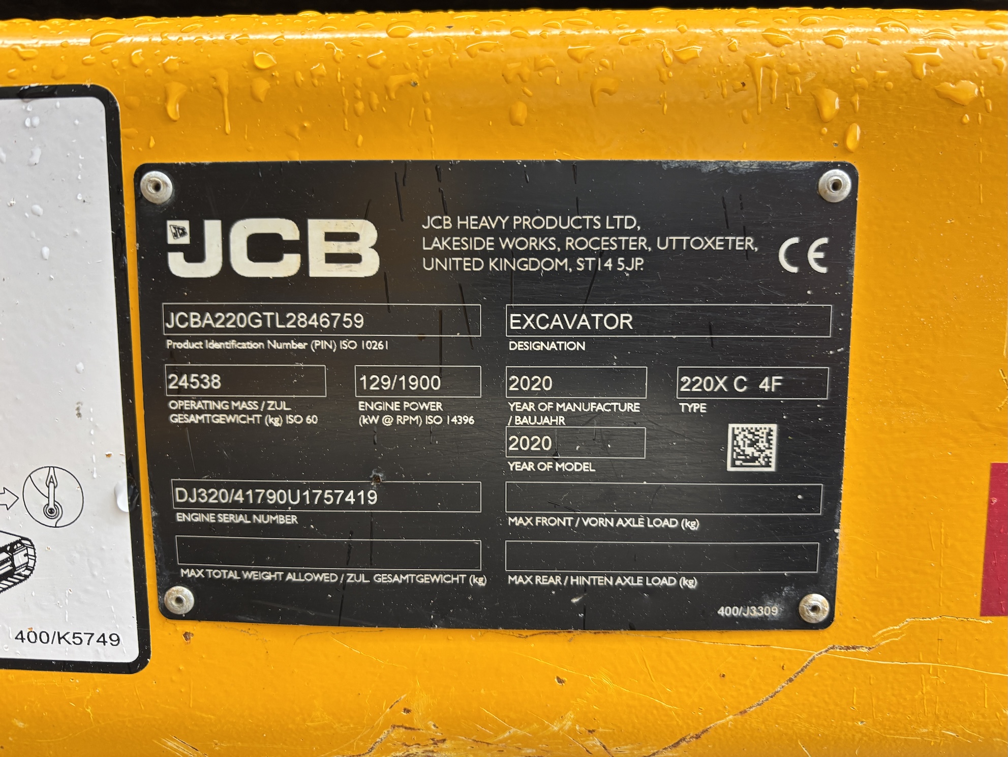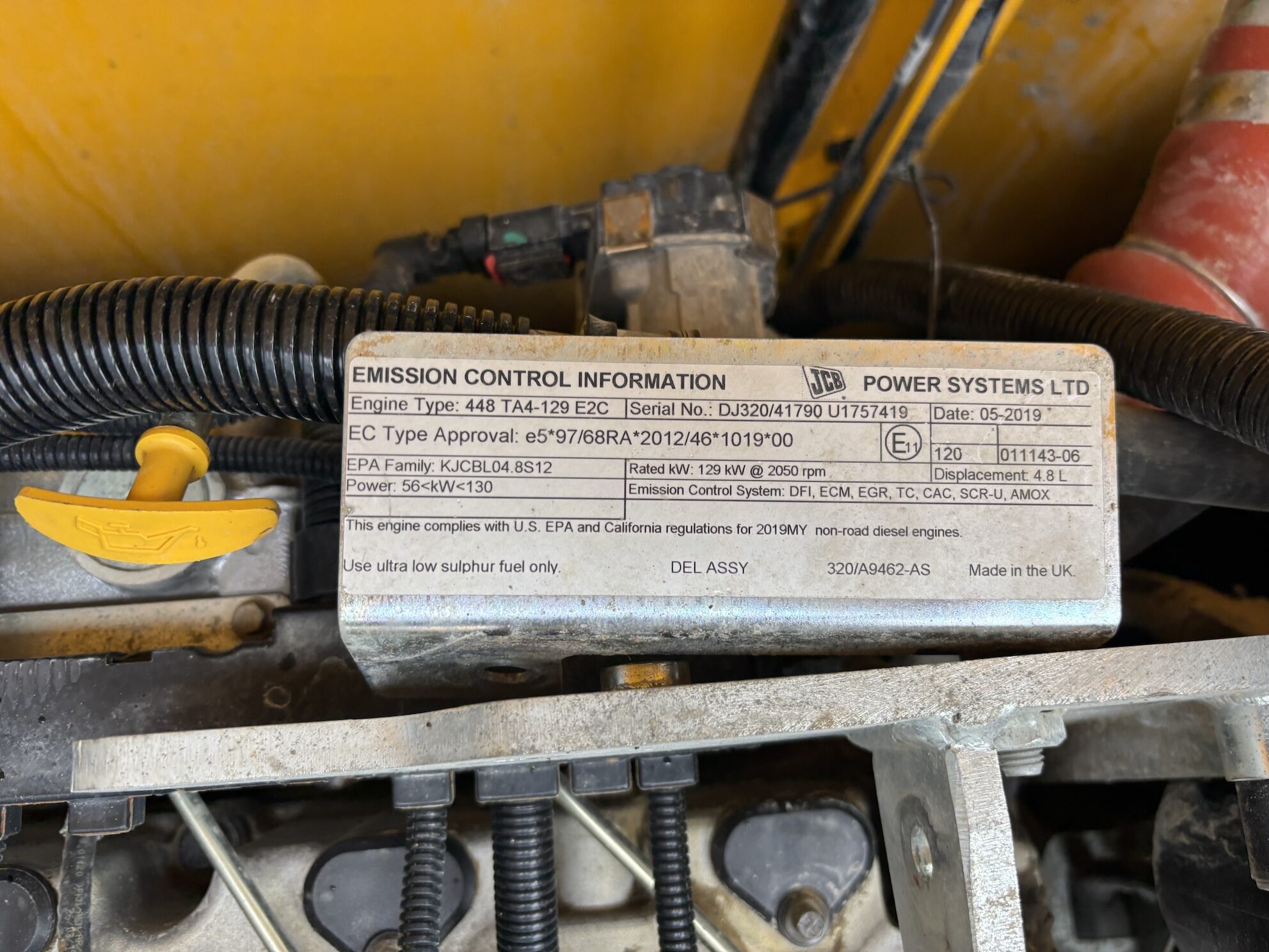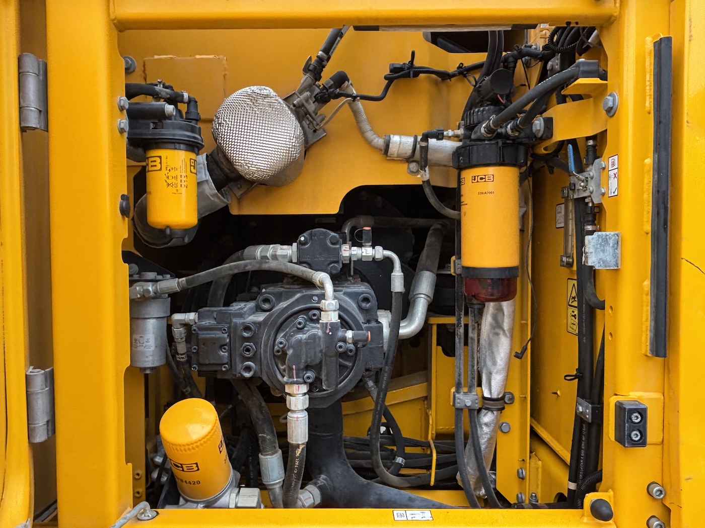JCB Ecomax 4 cylinder direct injection 129KW/173HP turbo engine (Tier 4Final) with about 5240 working hours on the meter. Monoboom, hammerpiping, rotation piping, hydraulic quickcoupler, airconditioning, Check valves on boom and stick cylinders, digging bucket with teeth, central lubrication, work lights, diesel pump, radio etc..