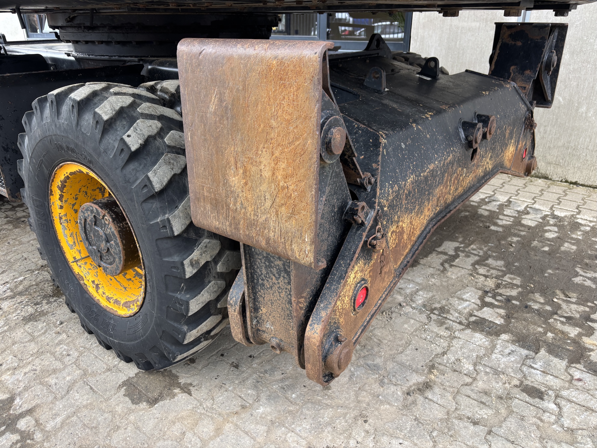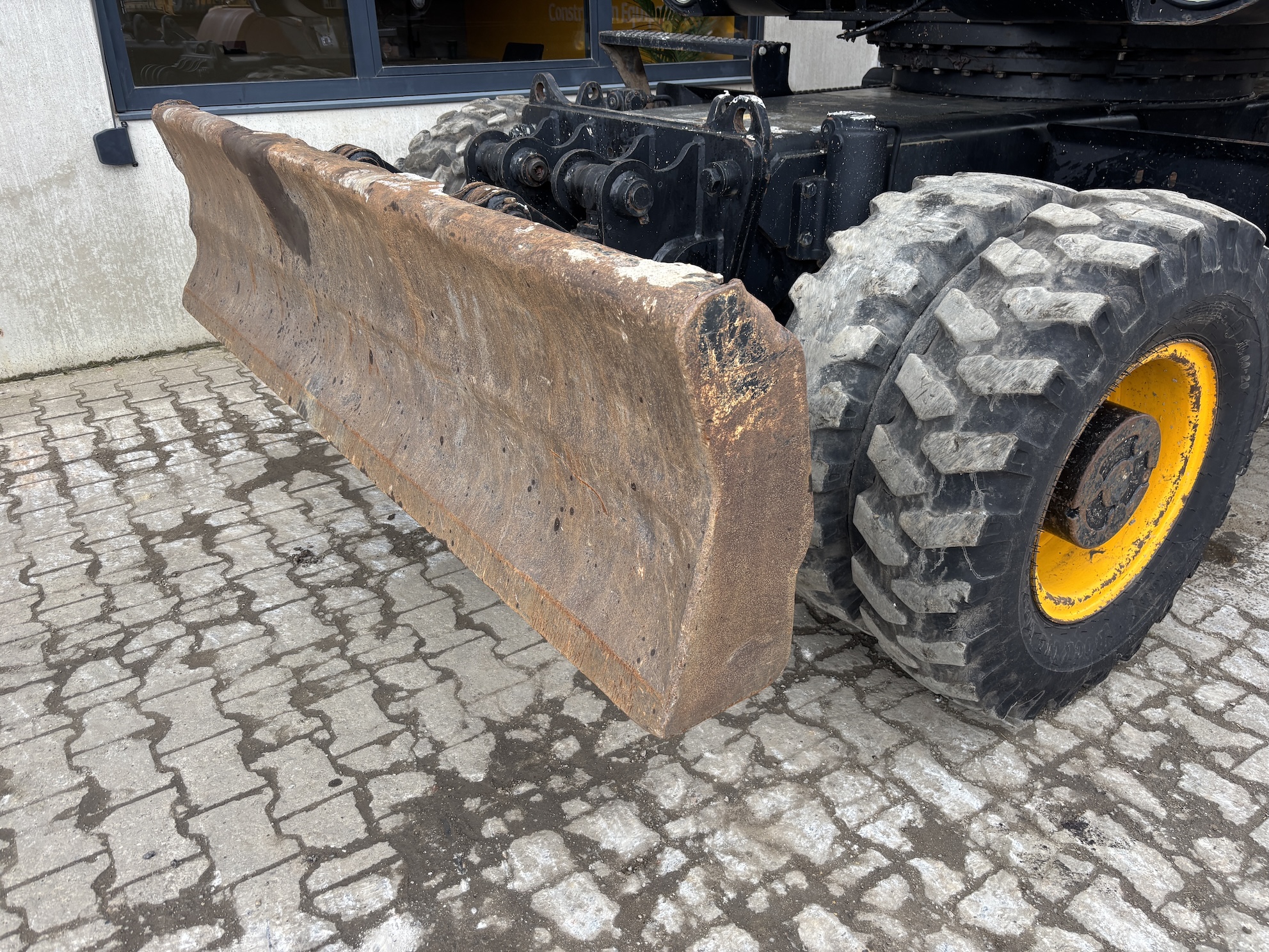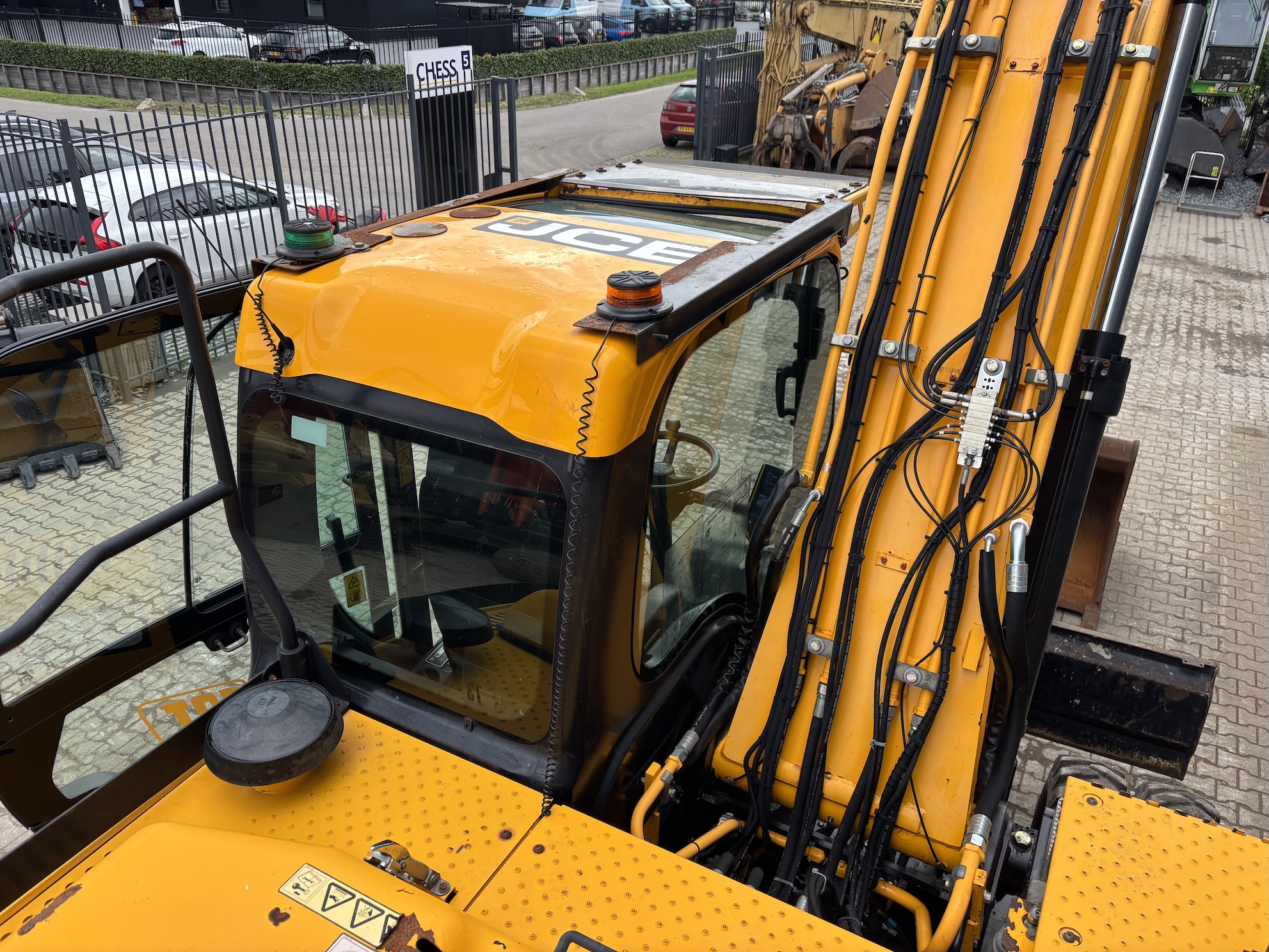 This JCB JS160W is equipped with a 4 cilinder turbo charged JCB ECOMAX 444 TA4i-93 E (93kW) diesel engine with 10620 hours on the service meter. Machine has a hydraulic dozer blade, 2 outriggers, monoboom, hydraulic quick hitch, digging bucket, hydraulics for hammer and rotation, check valves, extra work lights, rear view camera, airco, radio etc.