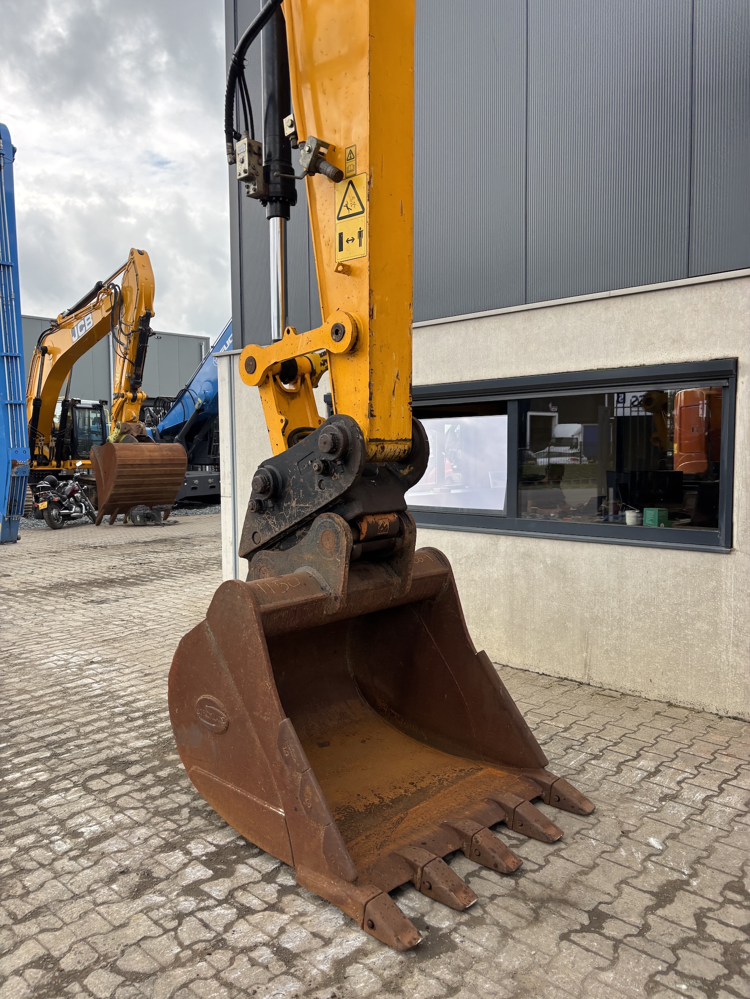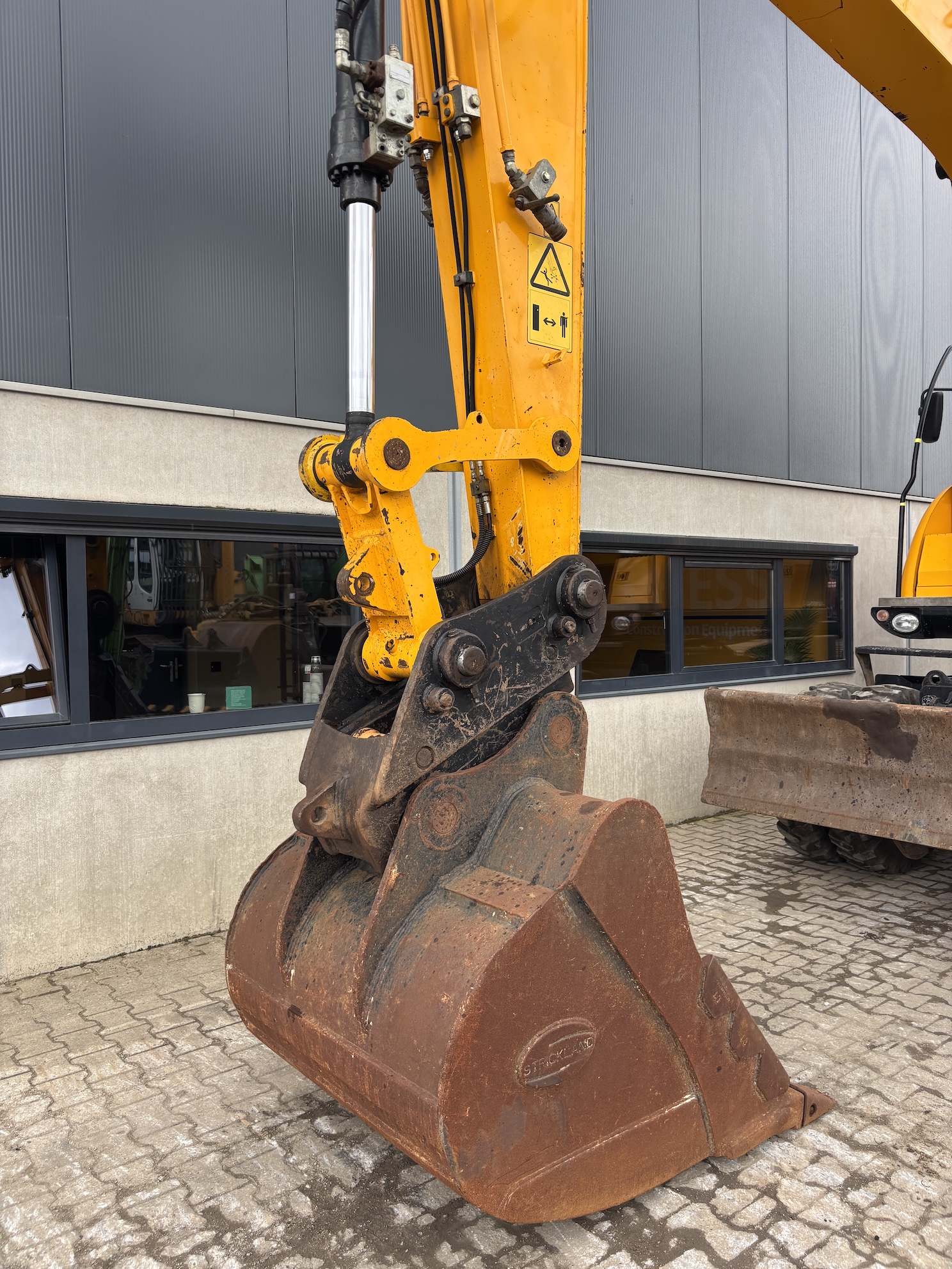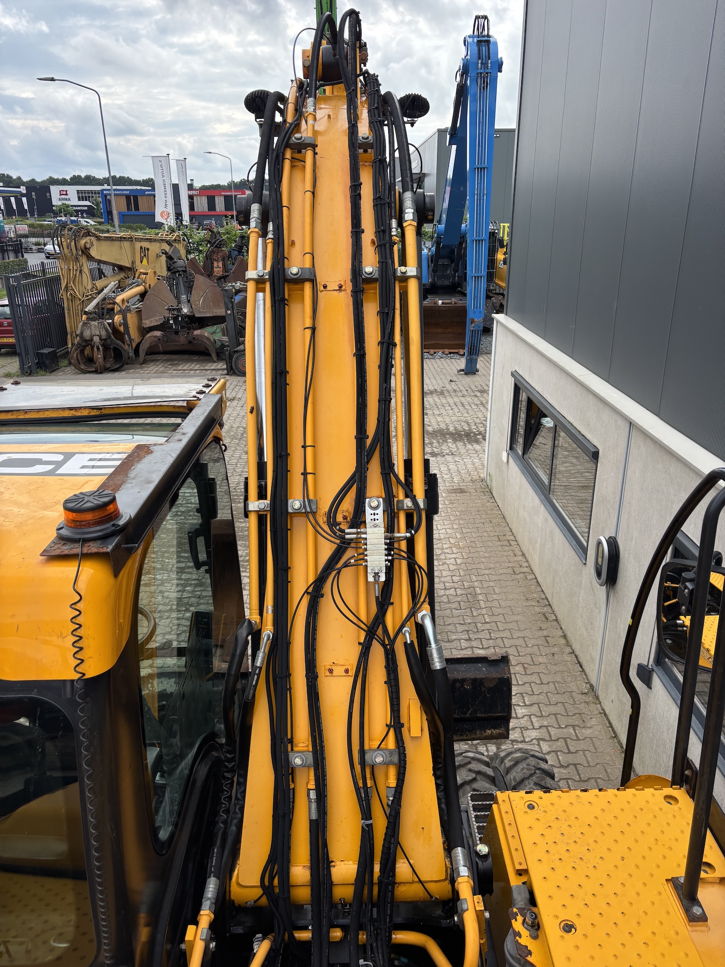 This JCB JS160W is equipped with a 4 cilinder turbo charged JCB ECOMAX 444 TA4i-93 E (93kW) diesel engine with 10620 hours on the service meter. Machine has a hydraulic dozer blade, 2 outriggers, monoboom, hydraulic quick hitch, digging bucket, hydraulics for hammer and rotation, check valves, extra work lights, rear view camera, airco, radio etc.