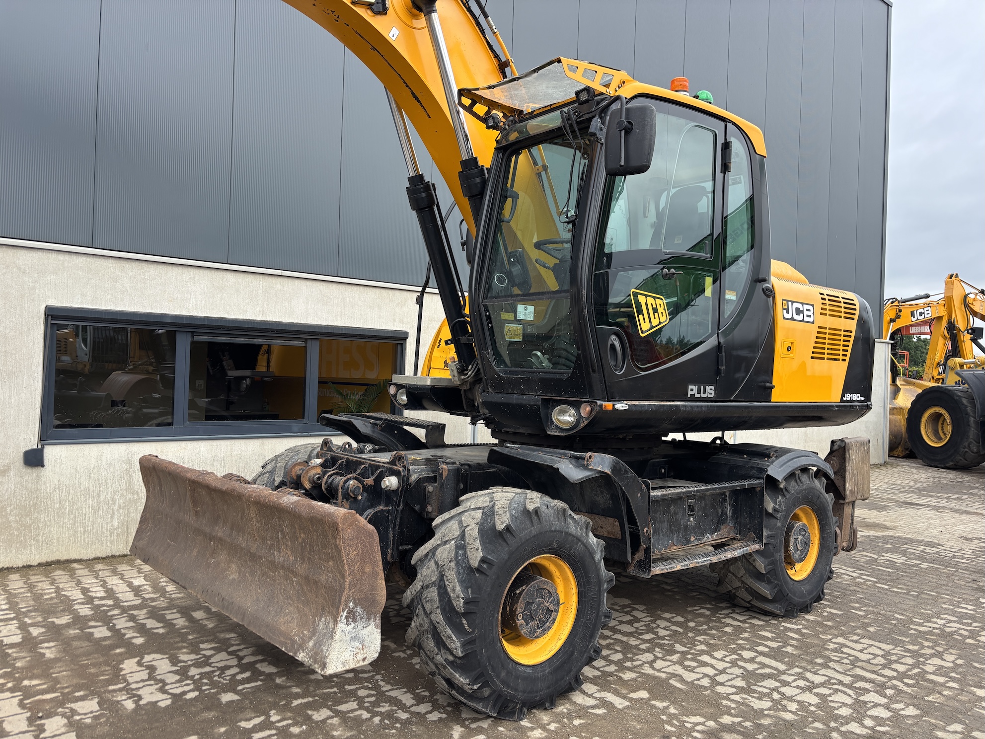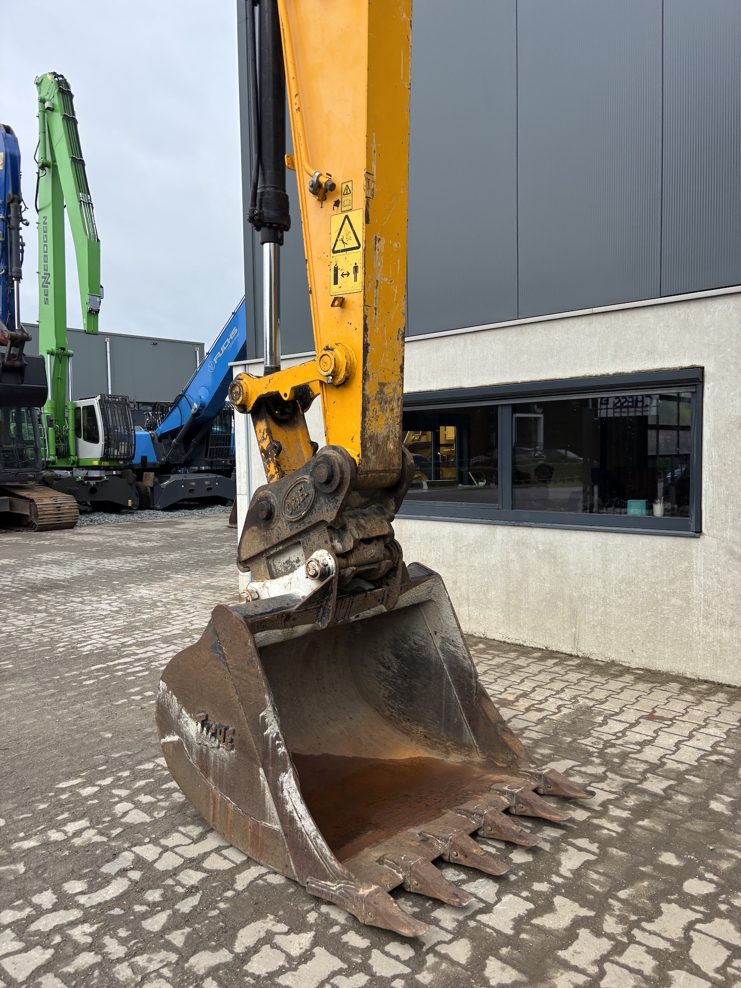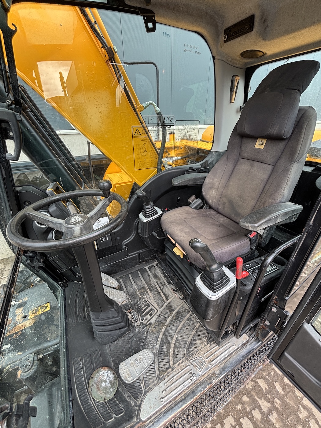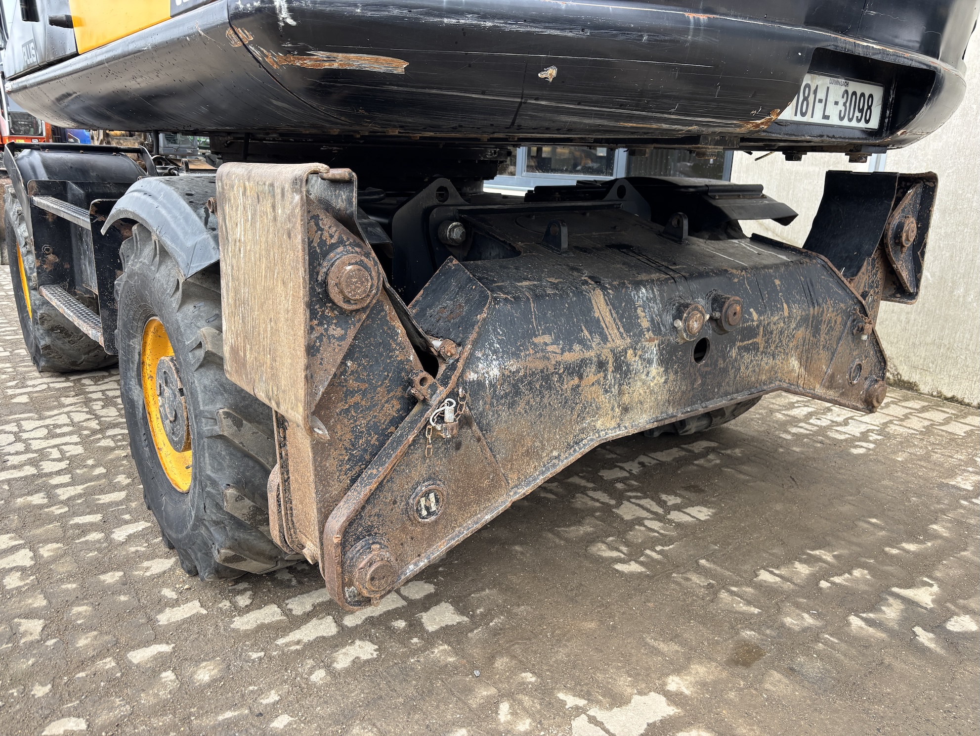 This JCB JS160W is equipped with a 4 cilinder turbo charged JCB ECOMAX 444 TA4i-93 E (93kW) diesel engine with 7327 hours on the service meter. Machine has a hydraulic dozer blade, 2 outriggers, monoboom, hydraulic quick hitch, digging bucket, hydraulics for hammer, check valves, extra work lights, rear view camera, airco, radio etc.