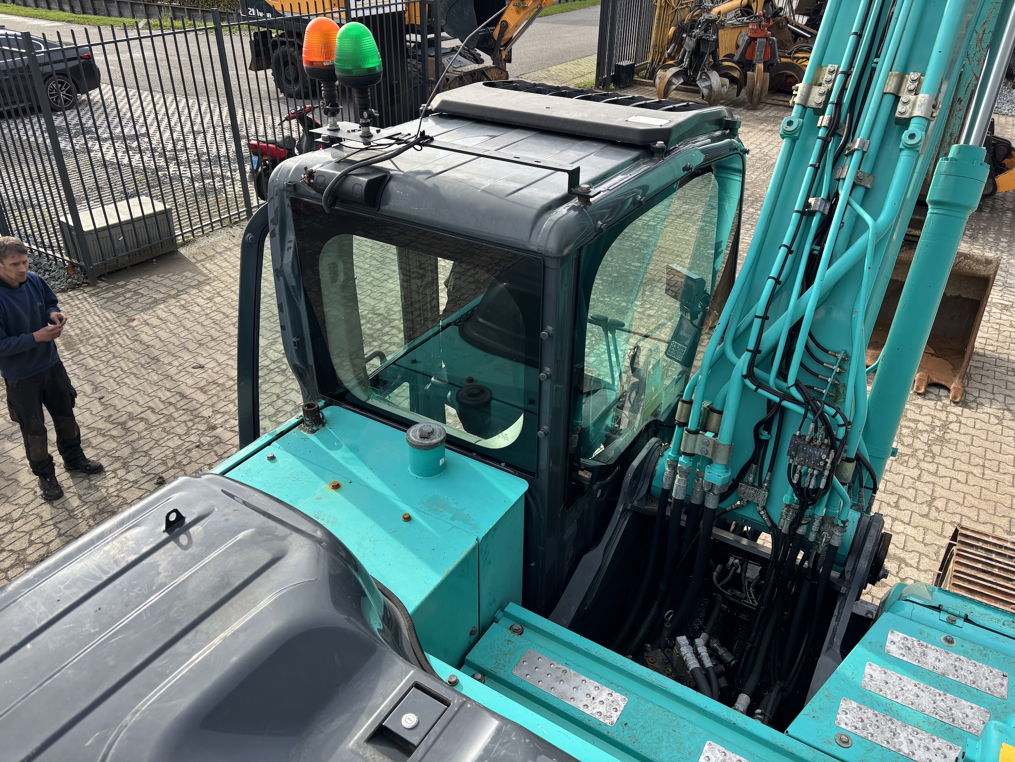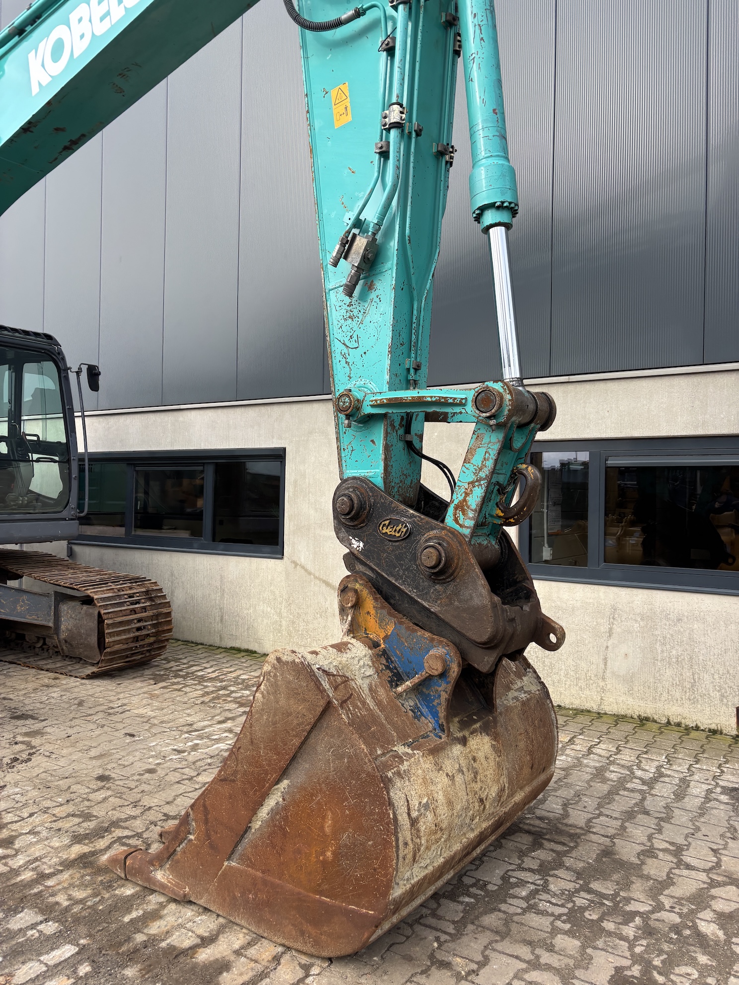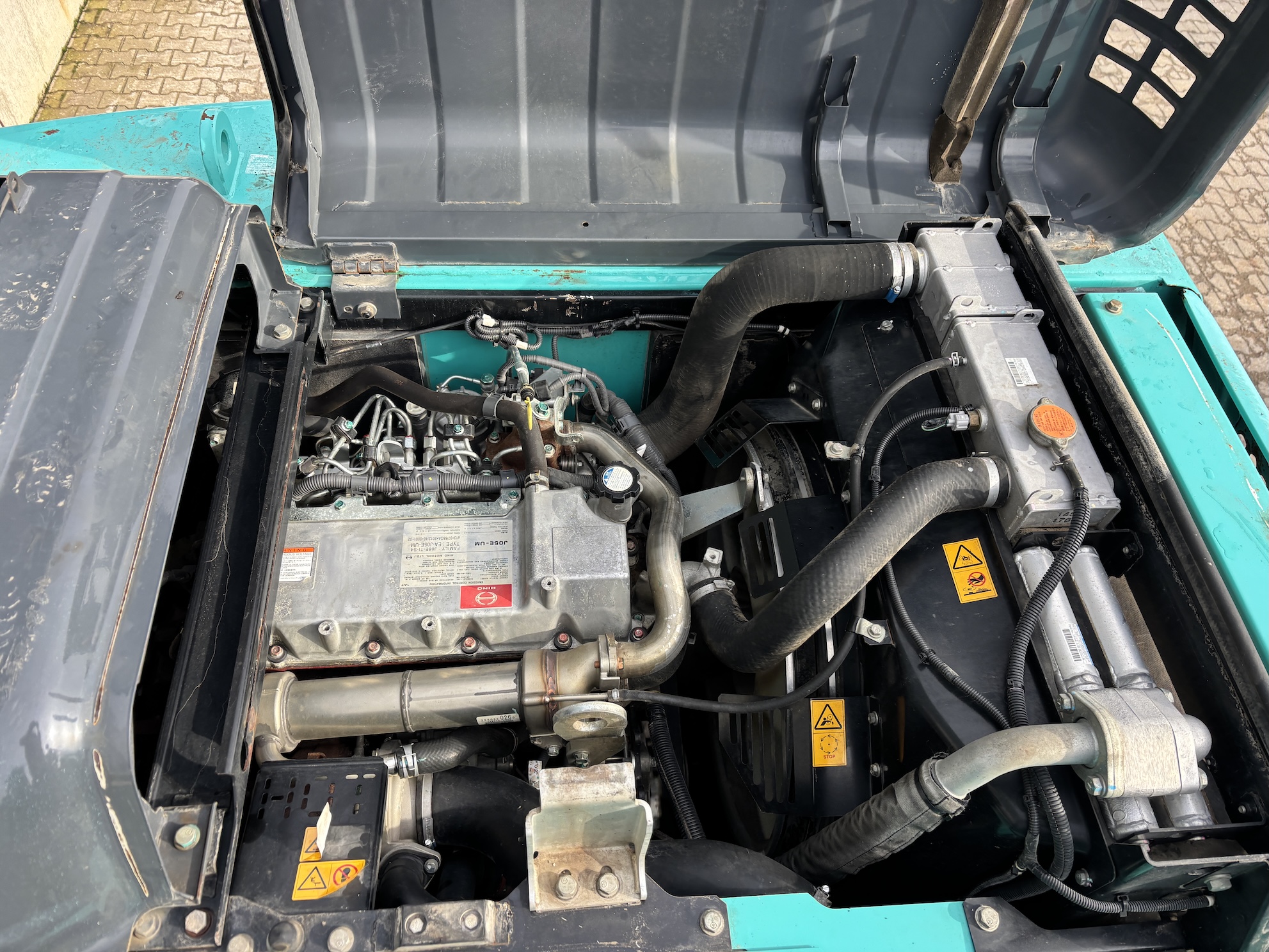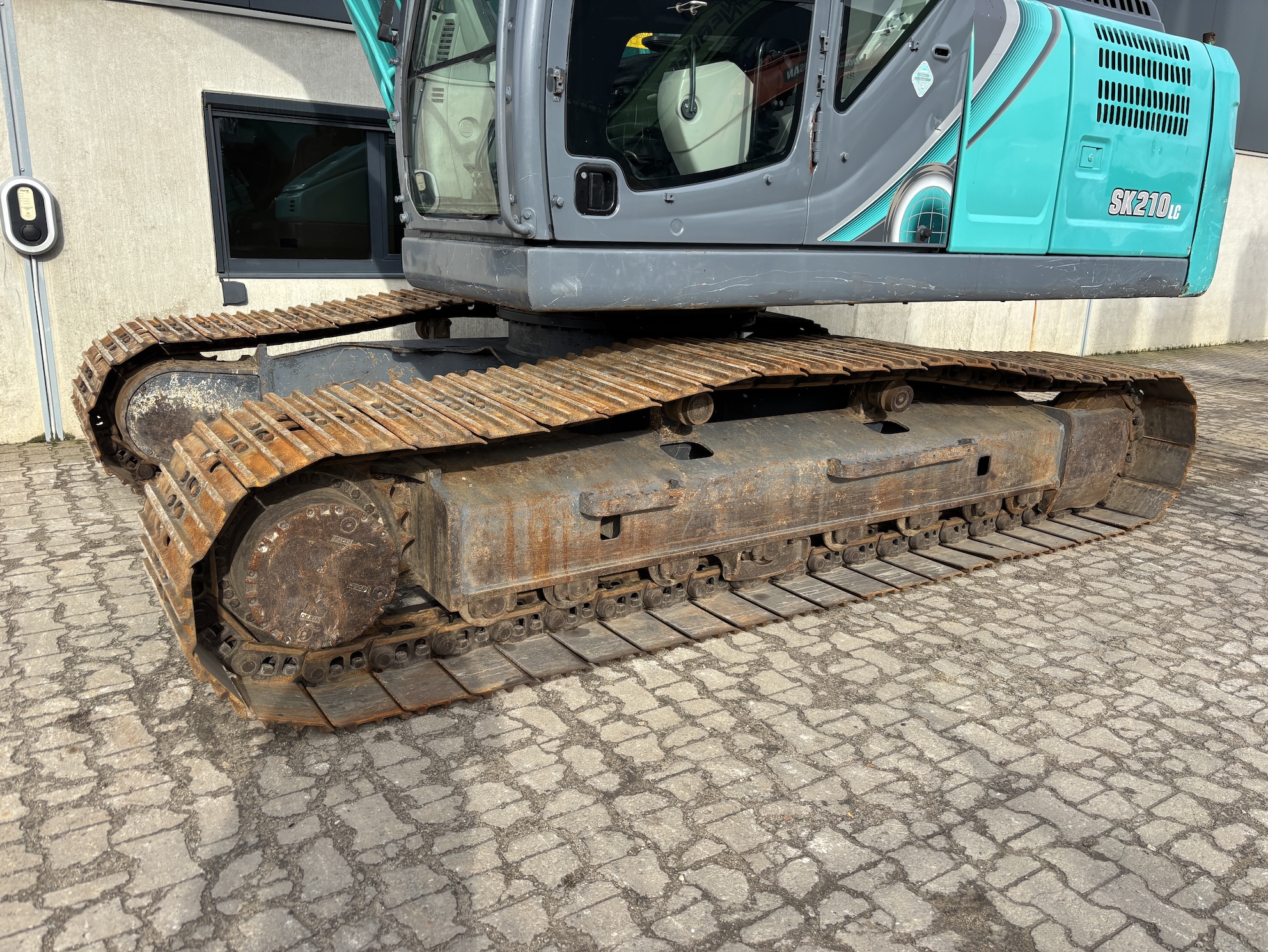 Kobelco SK210LC-10 with 4 cilinder water cooled turbo engine 4 cilinder Hino J05E-UM (124KW with 6713 working hours. Machine includes hammer piping, rotation piping, digging bucket, hydraulic quick hitch, diesel pump, central lubrication (not connected), check valves on lifting cylinders and stick cilinder, work lights, radio, airco, 2-side camera, 700mm track pads, etc.