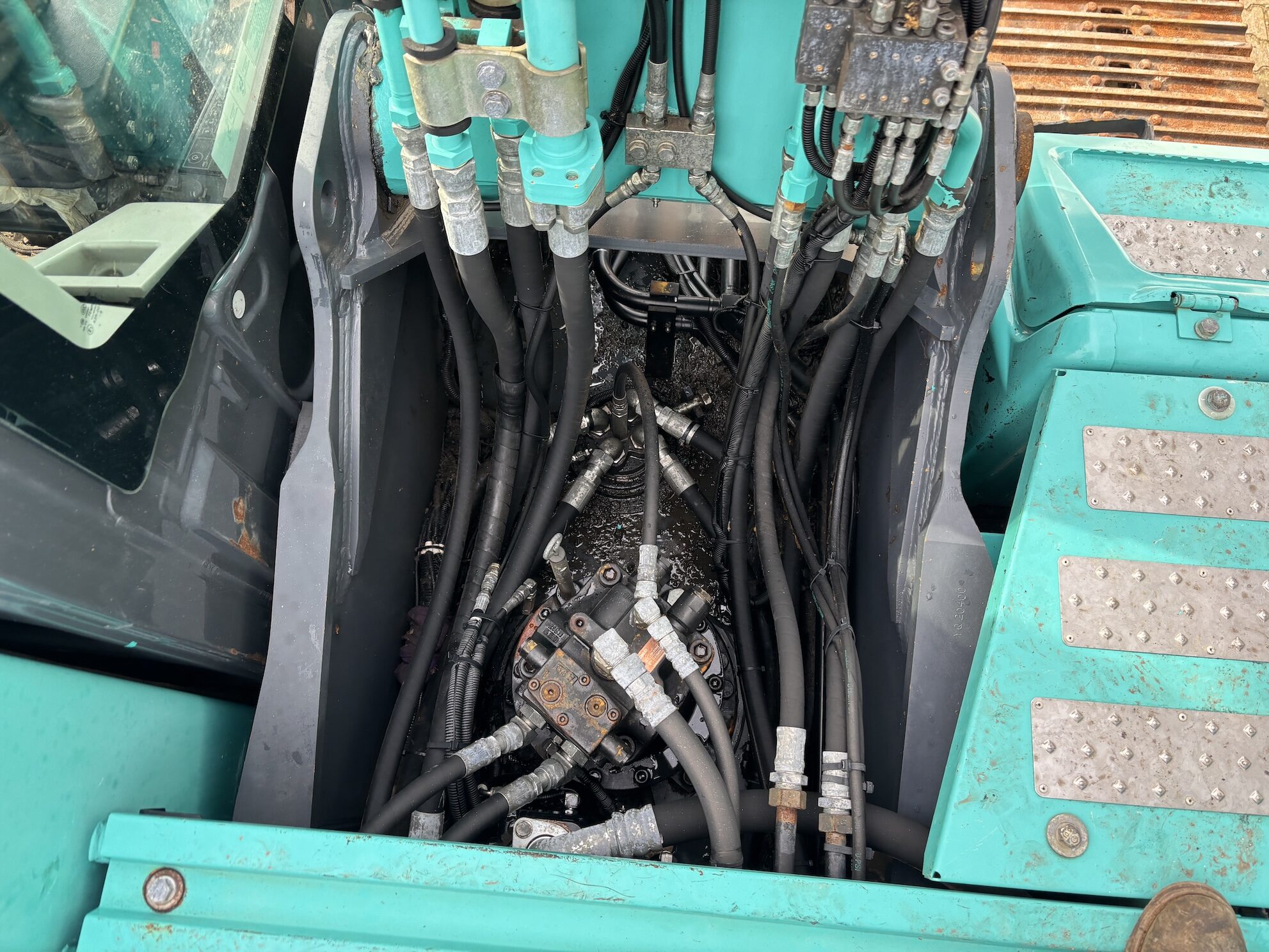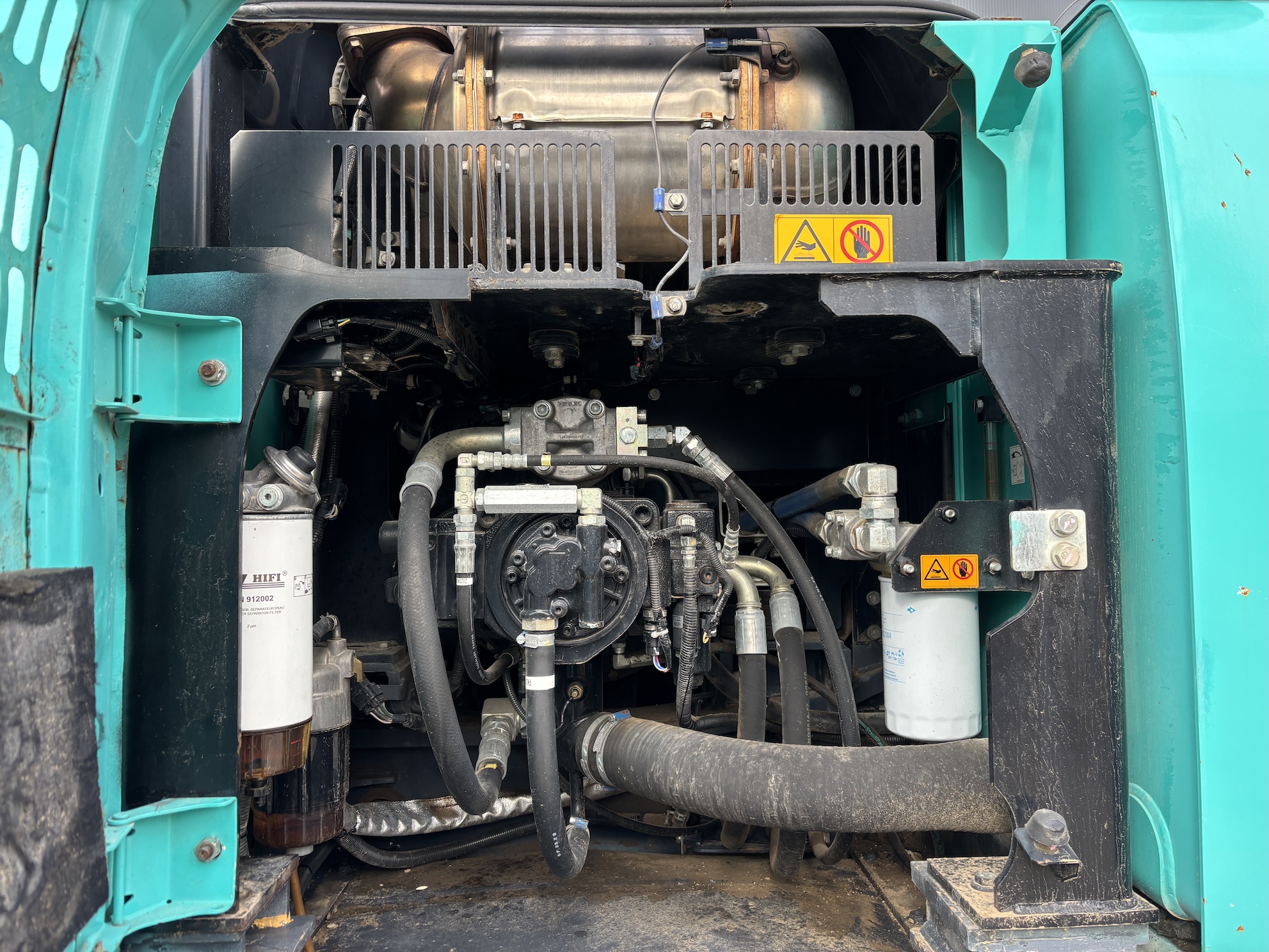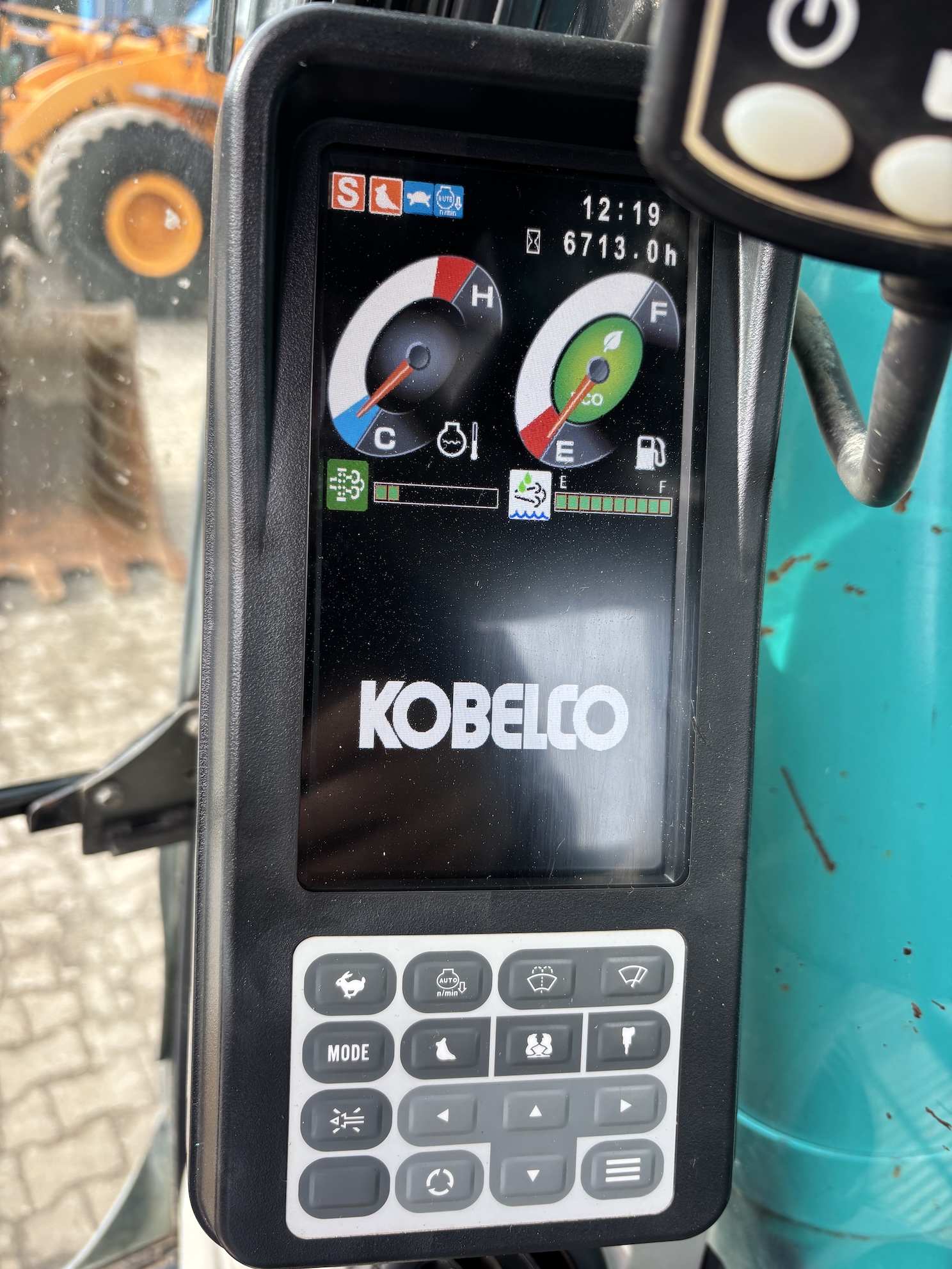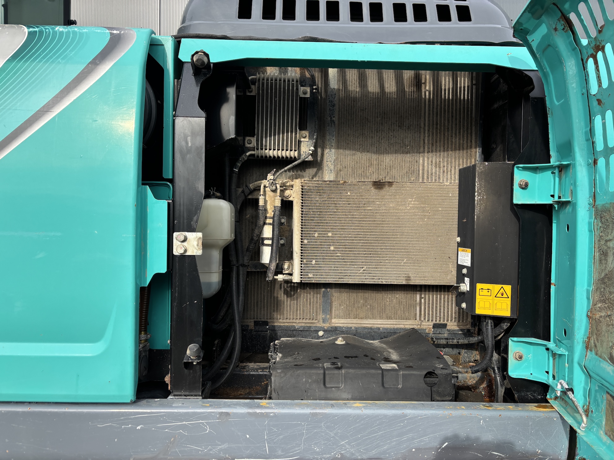 Kobelco SK210LC-10 with 4 cilinder water cooled turbo engine 4 cilinder Hino J05E-UM (124KW with 6713 working hours. Machine includes hammer piping, rotation piping, digging bucket, hydraulic quick hitch, diesel pump, central lubrication (not connected), check valves on lifting cylinders and stick cilinder, work lights, radio, airco, 2-side camera, 700mm track pads, etc.