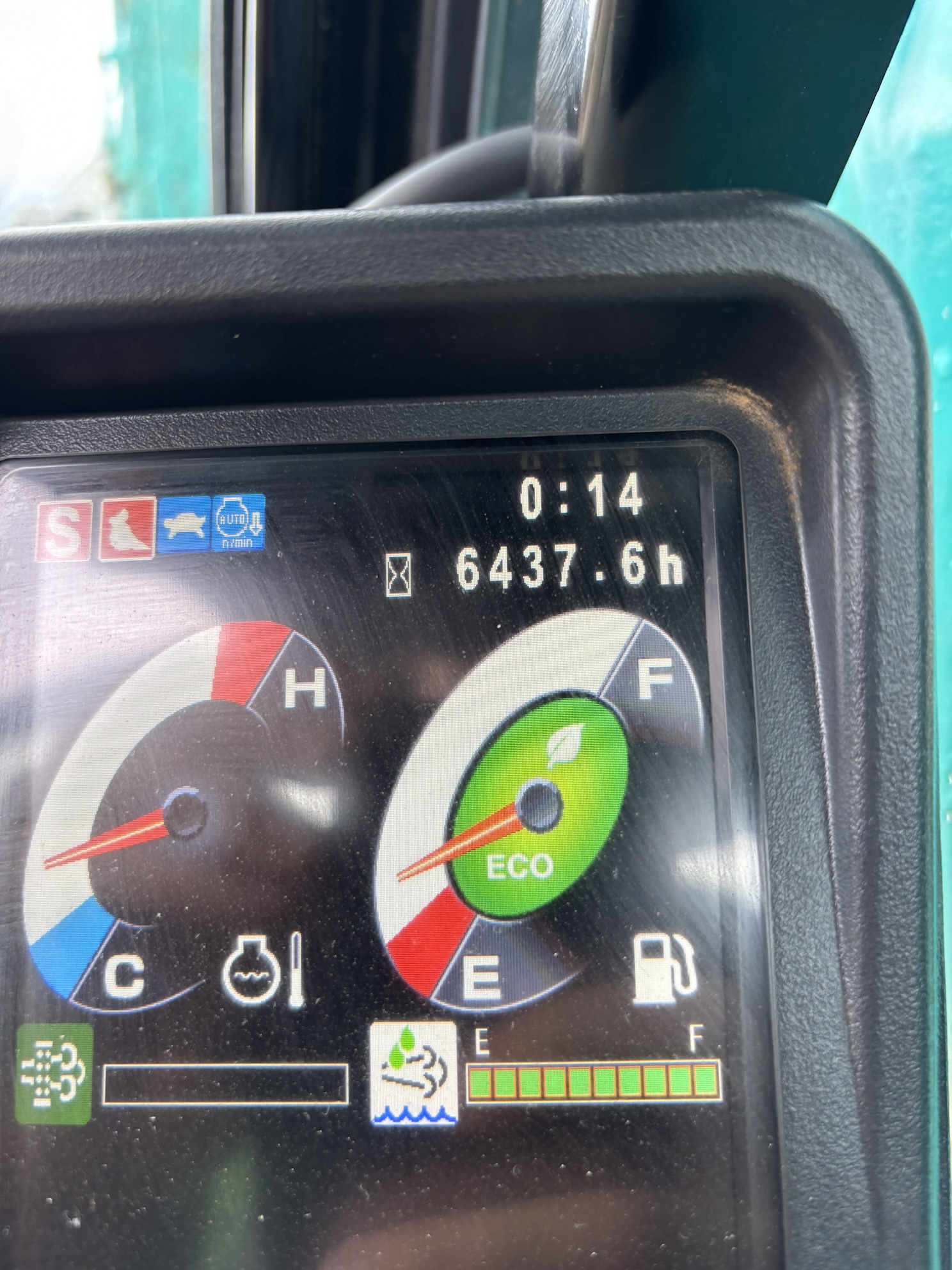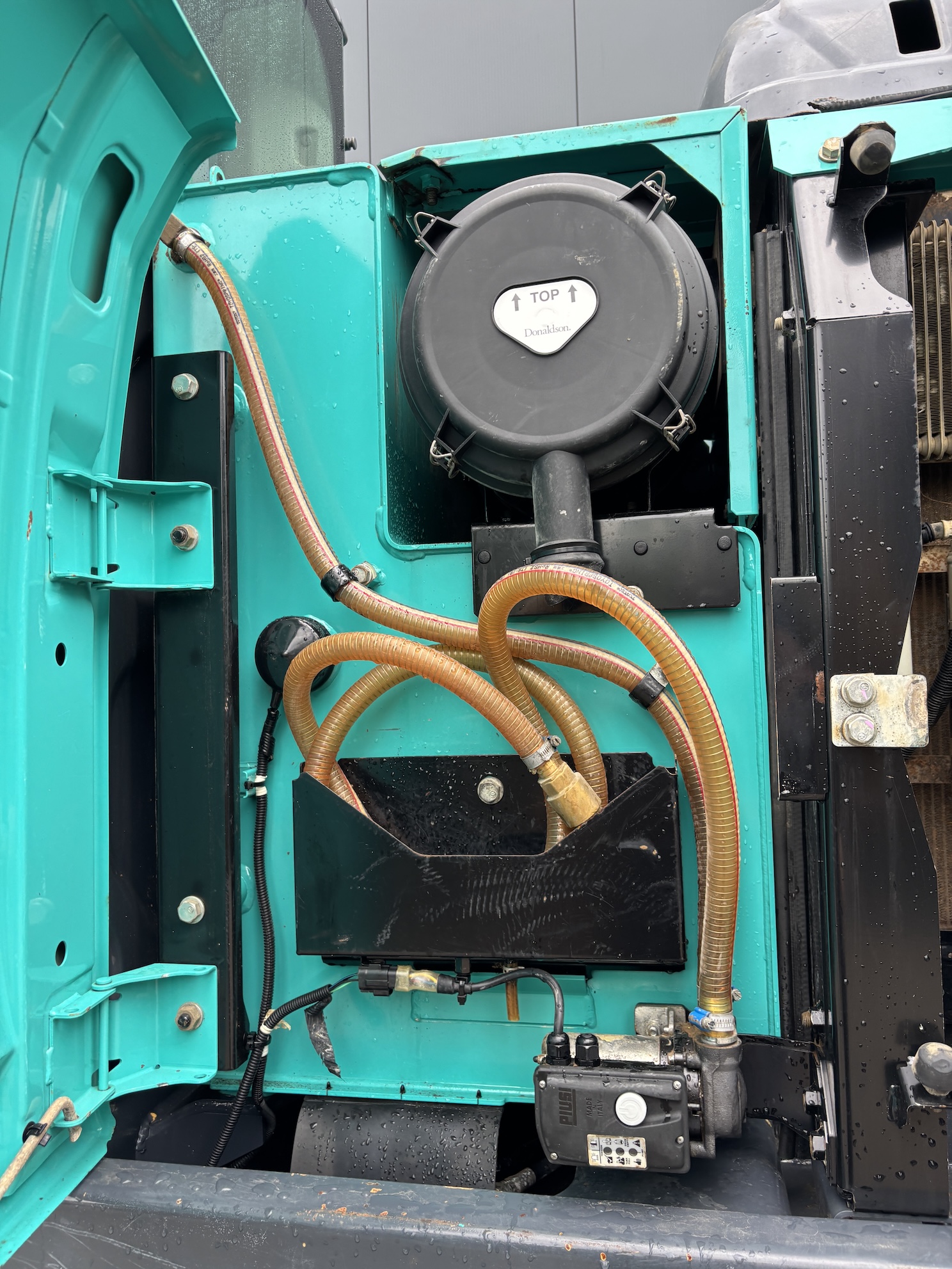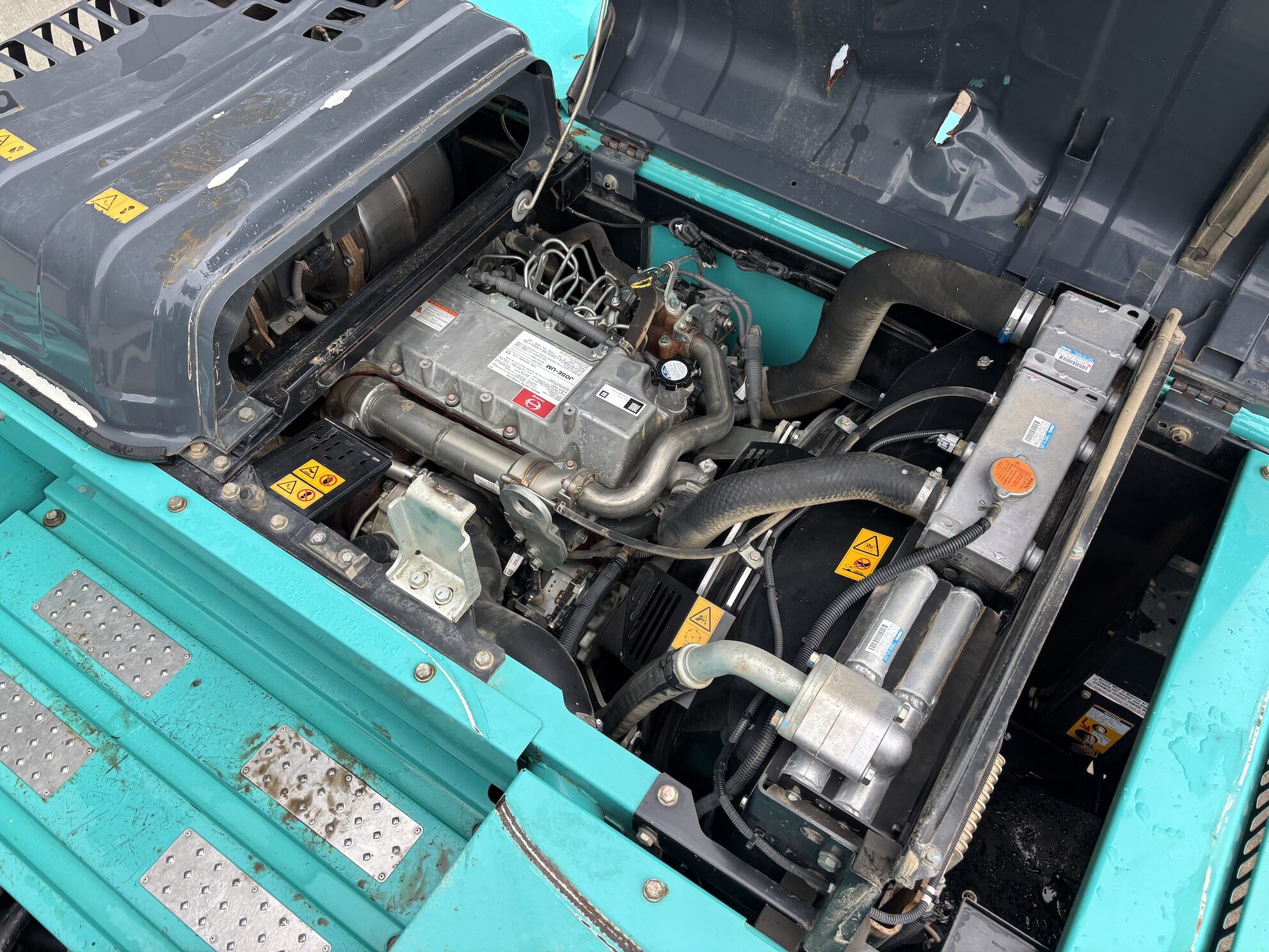 Kobelco SK210LC-10 with 4 cilinder water cooled turbo engine 4 cilinder Hino AA-J05E-UM (166HP at 2000RPM) with 6437 working hours. Machine includes hammer piping, rotation piping, teeth bucket, hydraulic quick hitch, diesel pump, check valves on lifting cylinders and stick cilinder, work lights, radio, airco, 2-side camera, 700mm track pads