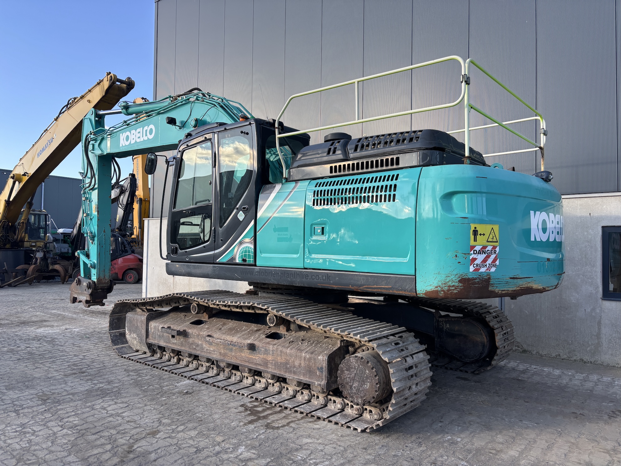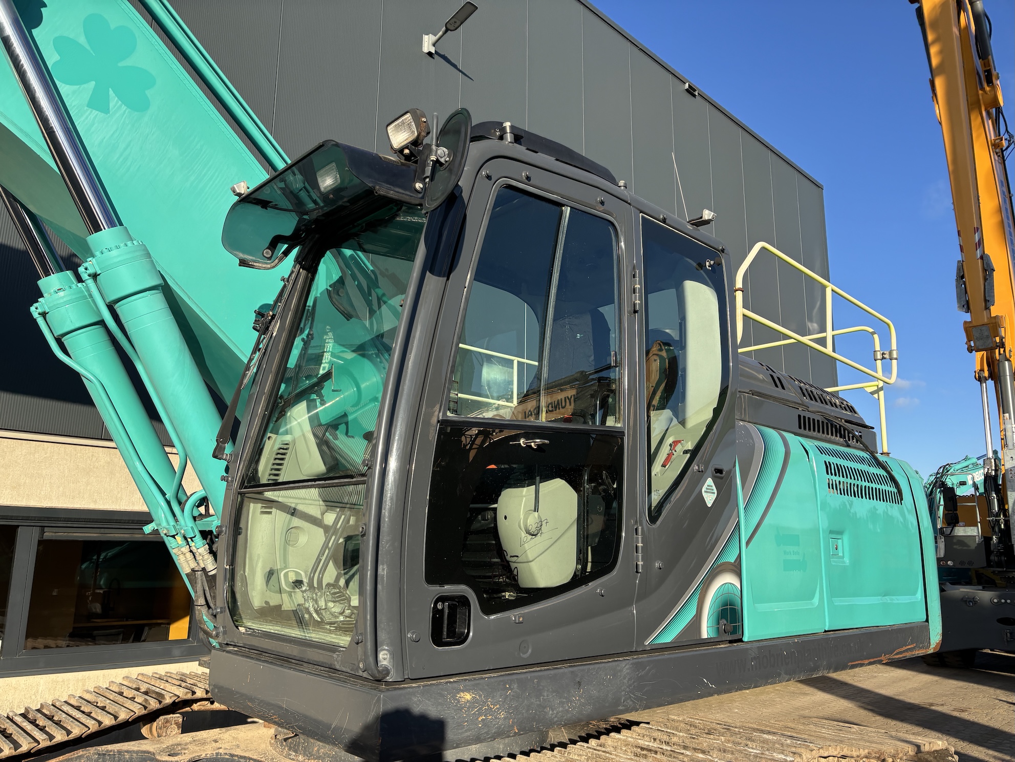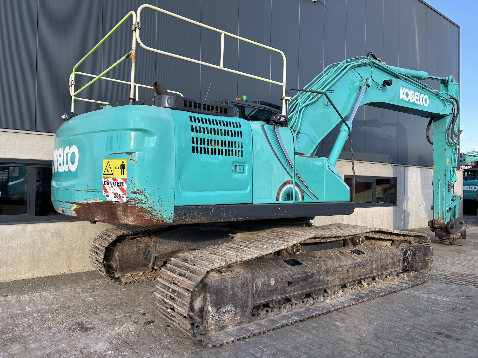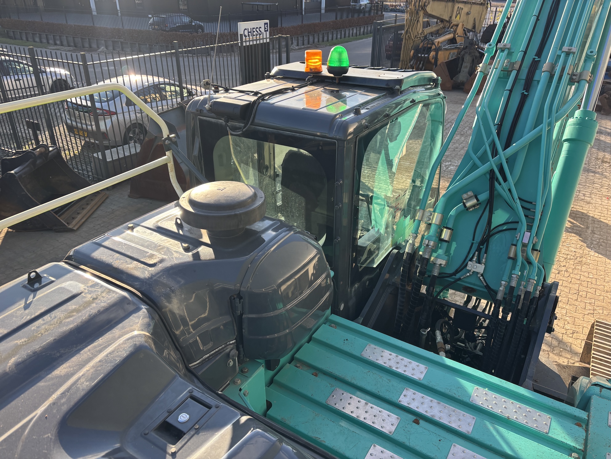 This Kobelco SK300LC-10 is equipped with a 6 cilinder water cooled turbo charged J08E-YD Hino (200kW) 6 cilinder diesel engine with 10389 working hours on the service meter. Hydraulics for hammer and rotation functions, hydraulic quick hitch, check valves, additional work lights, electric diesel pump, airco, radio, etc.