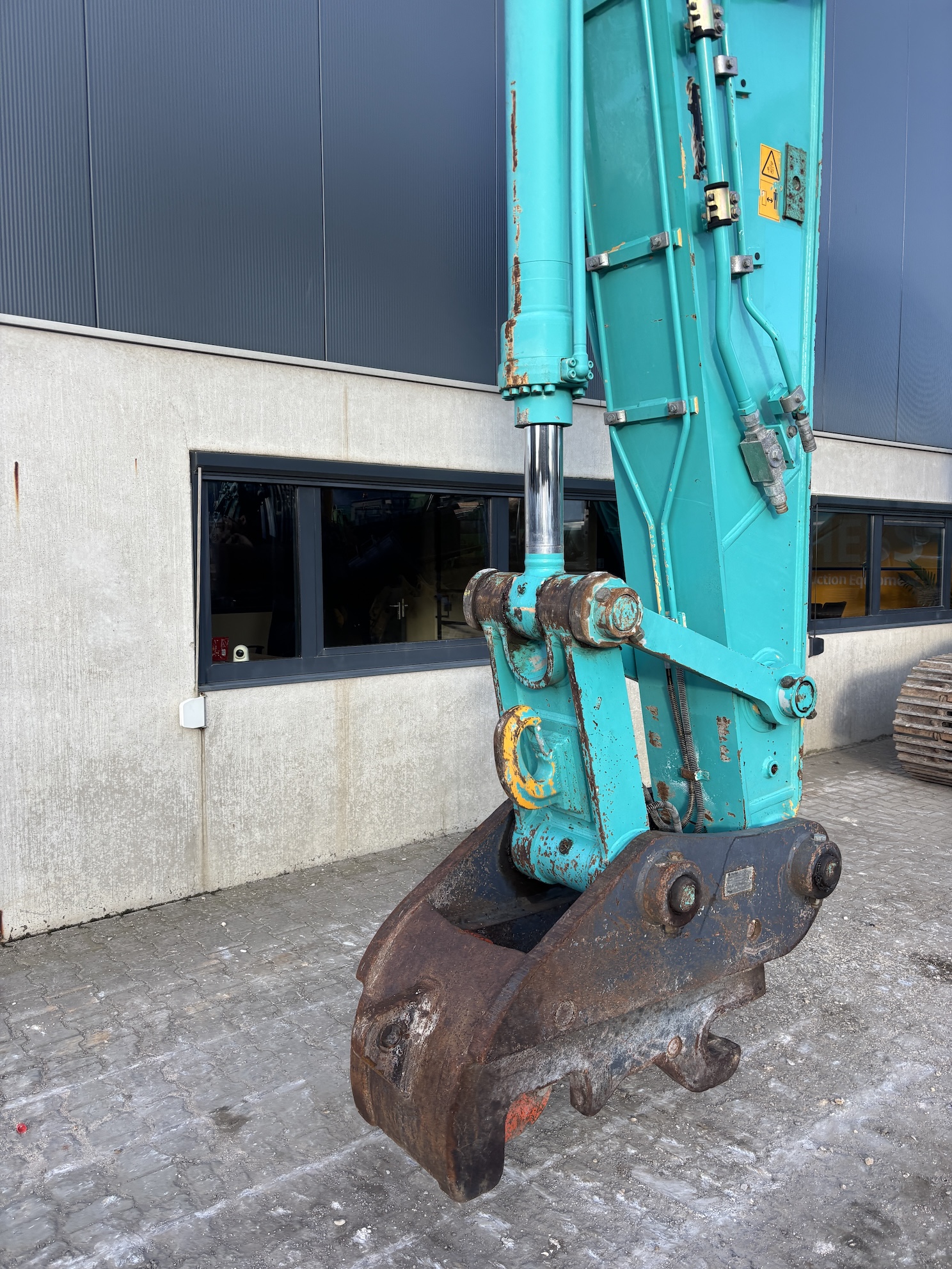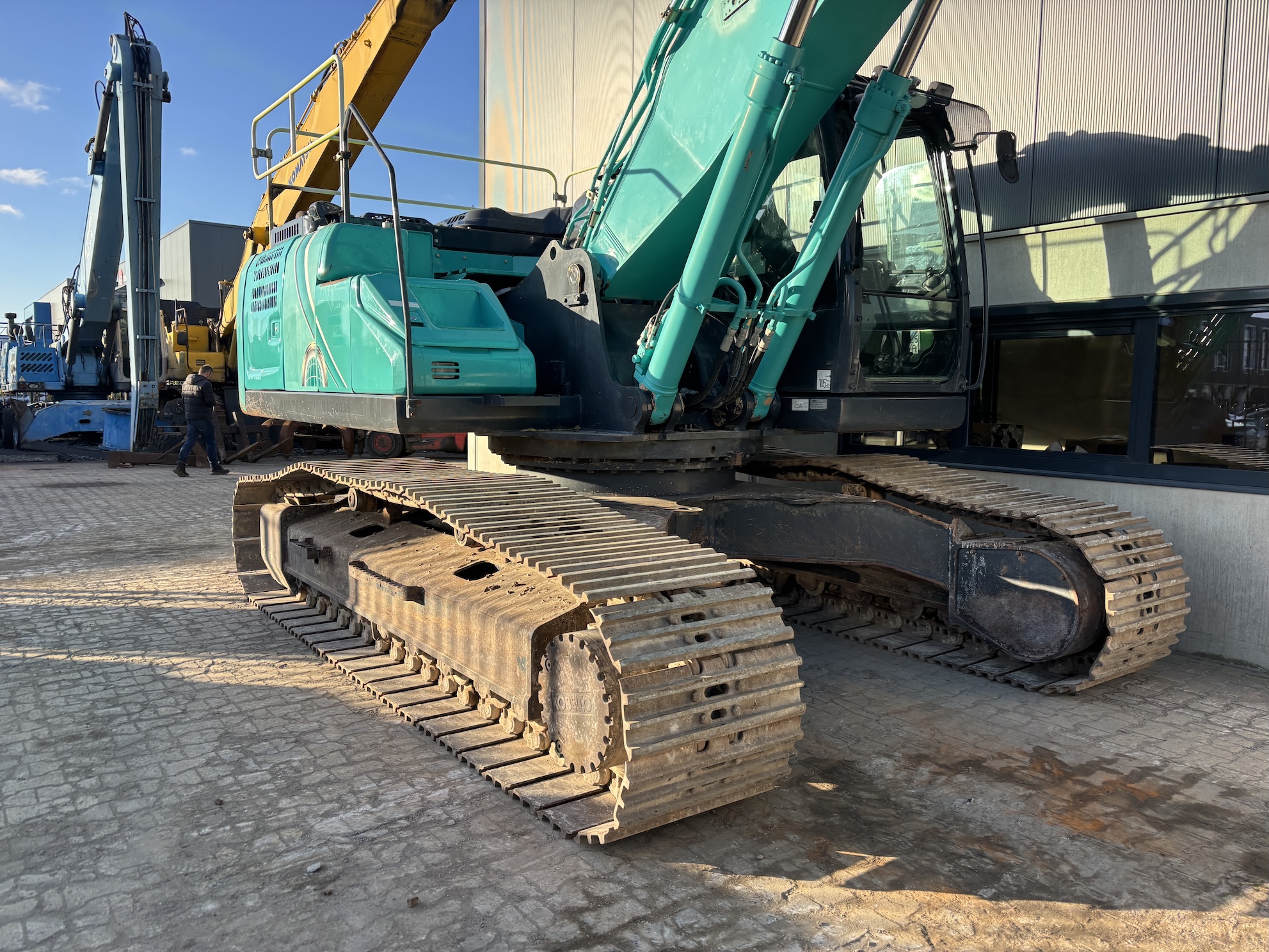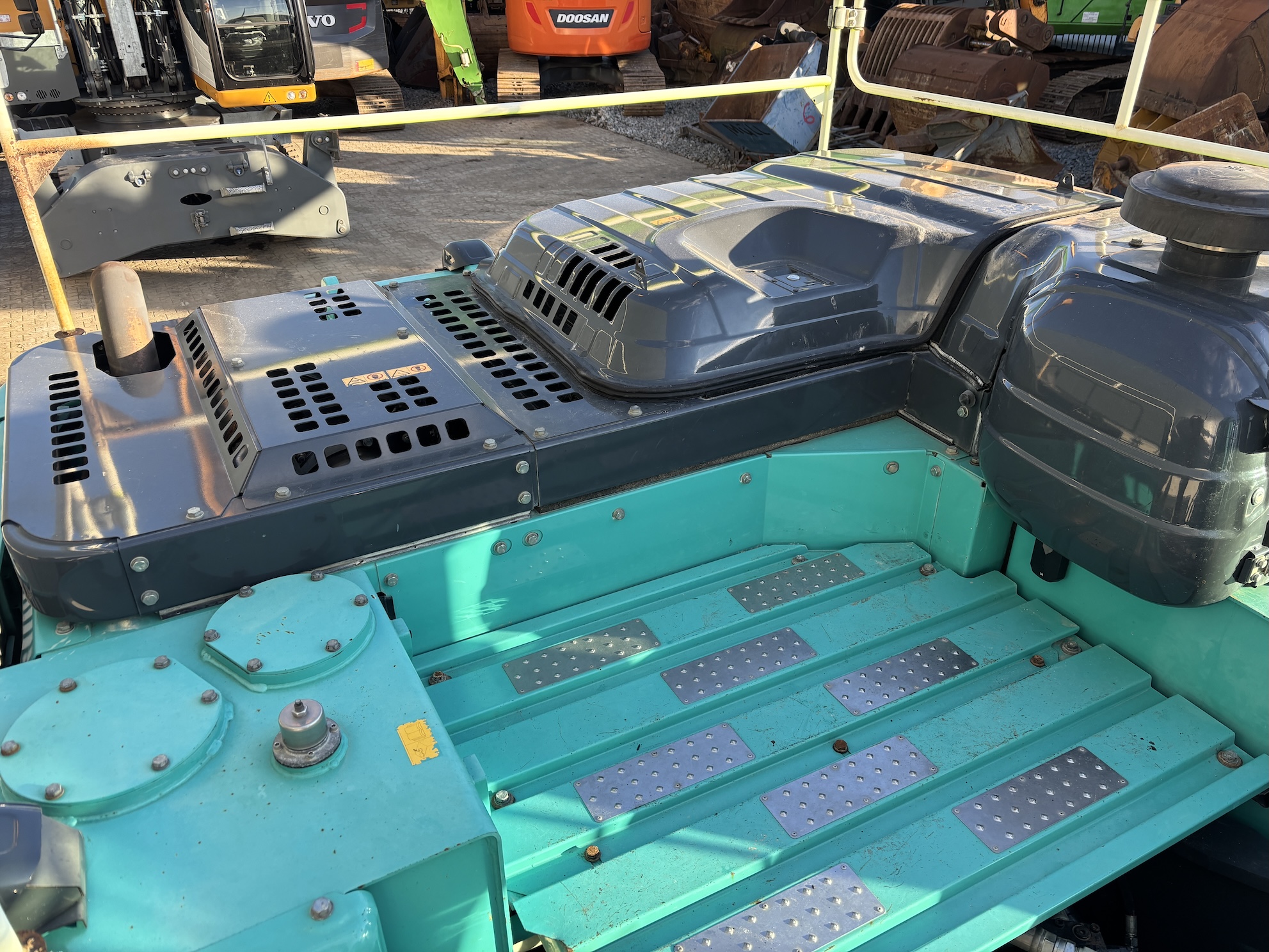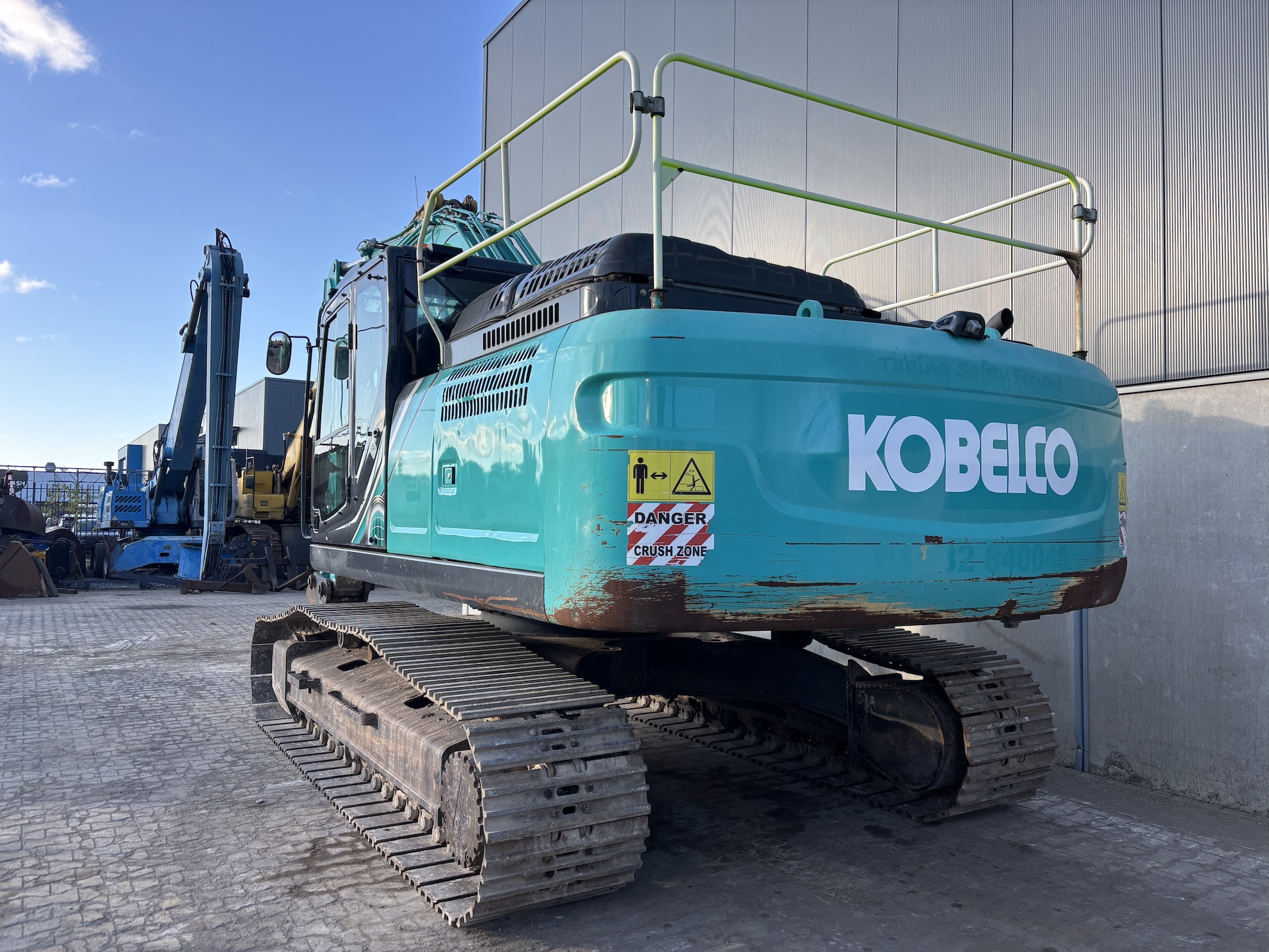 This Kobelco SK300LC-10 is equipped with a 6 cilinder water cooled turbo charged J08E-YD Hino (200kW) 6 cilinder diesel engine with 10389 working hours on the service meter. Hydraulics for hammer and rotation functions, hydraulic quick hitch, check valves, additional work lights, electric diesel pump, airco, radio, etc.