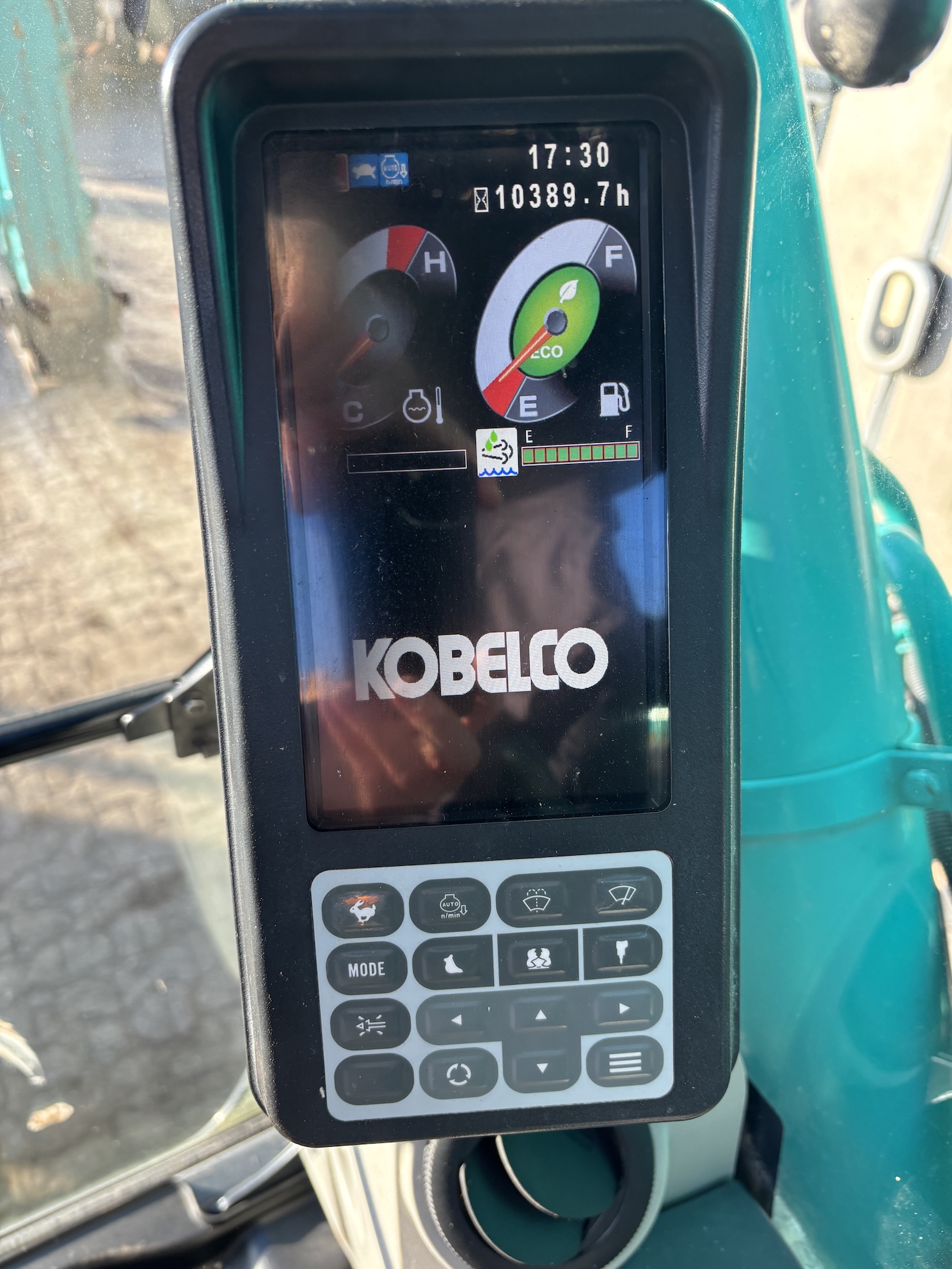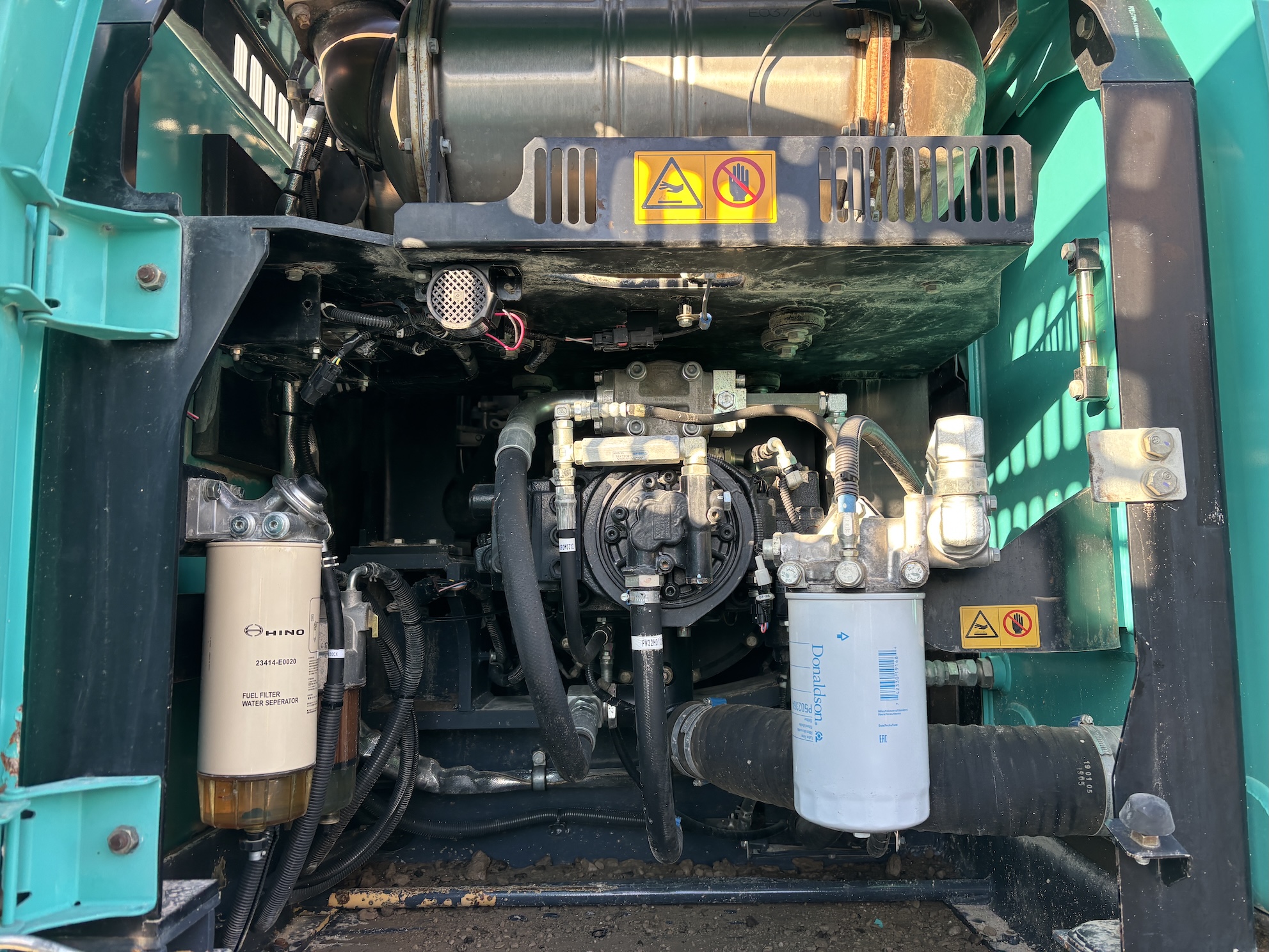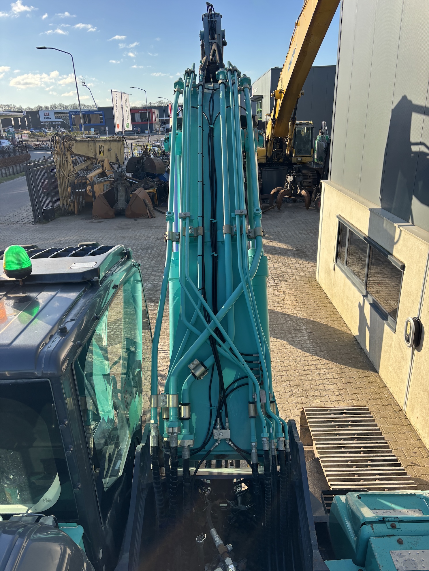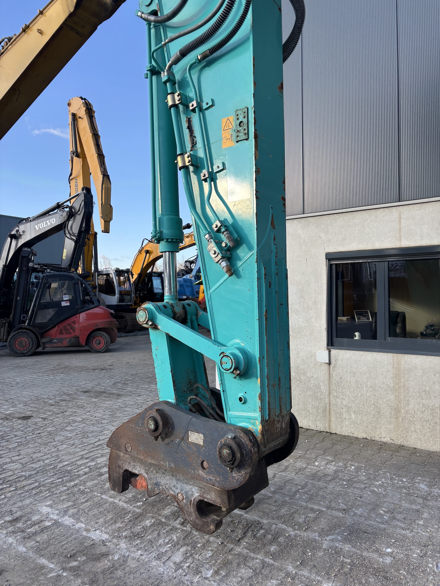 This Kobelco SK300LC-10 is equipped with a 6 cilinder water cooled turbo charged J08E-YD Hino (200kW) 6 cilinder diesel engine with 10389 working hours on the service meter. Hydraulics for hammer and rotation functions, hydraulic quick hitch, check valves, additional work lights, electric diesel pump, airco, radio, etc.