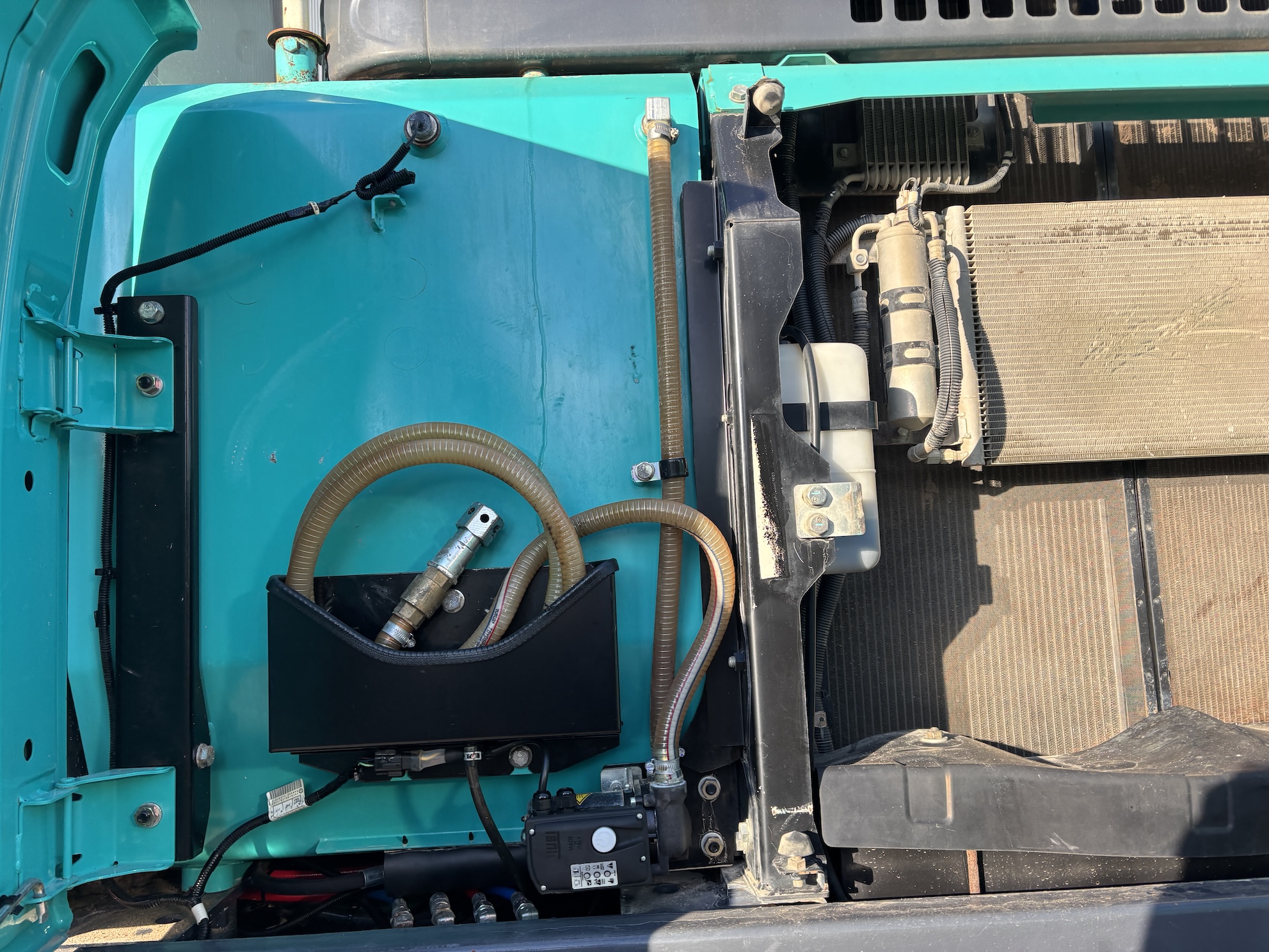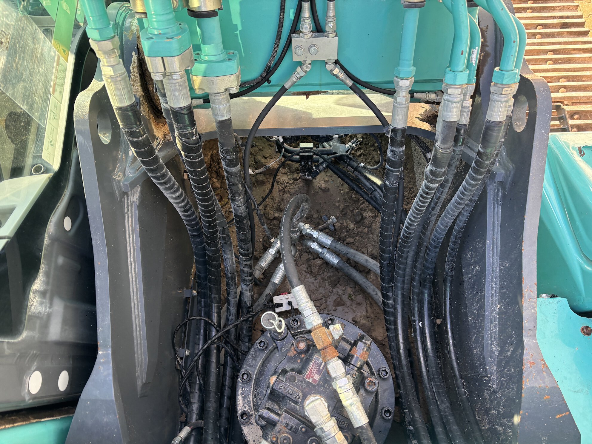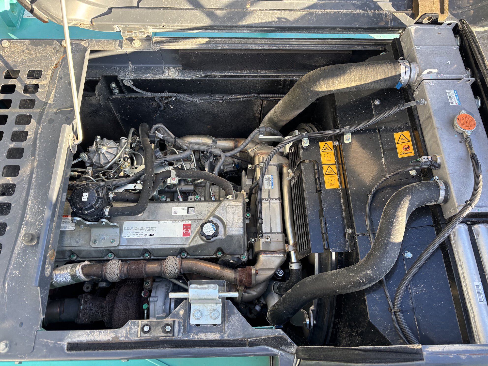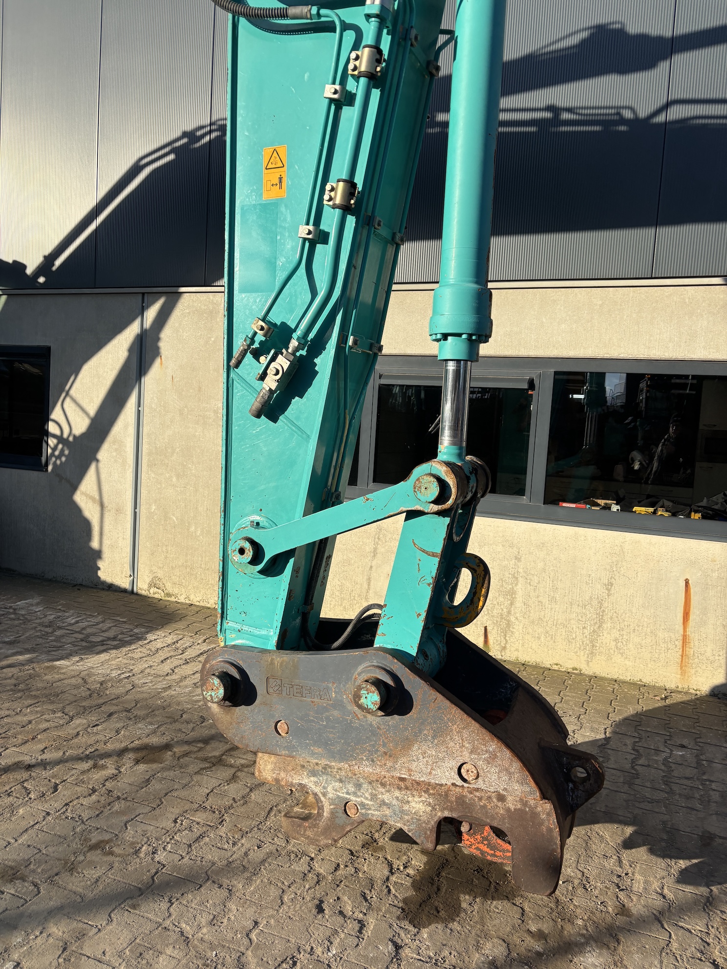 This Kobelco SK300LC-10 is equipped with a 6 cilinder water cooled turbo charged J08E-YD Hino (200kW) 6 cilinder diesel engine with 10389 working hours on the service meter. Hydraulics for hammer and rotation functions, hydraulic quick hitch, check valves, additional work lights, electric diesel pump, airco, radio, etc.