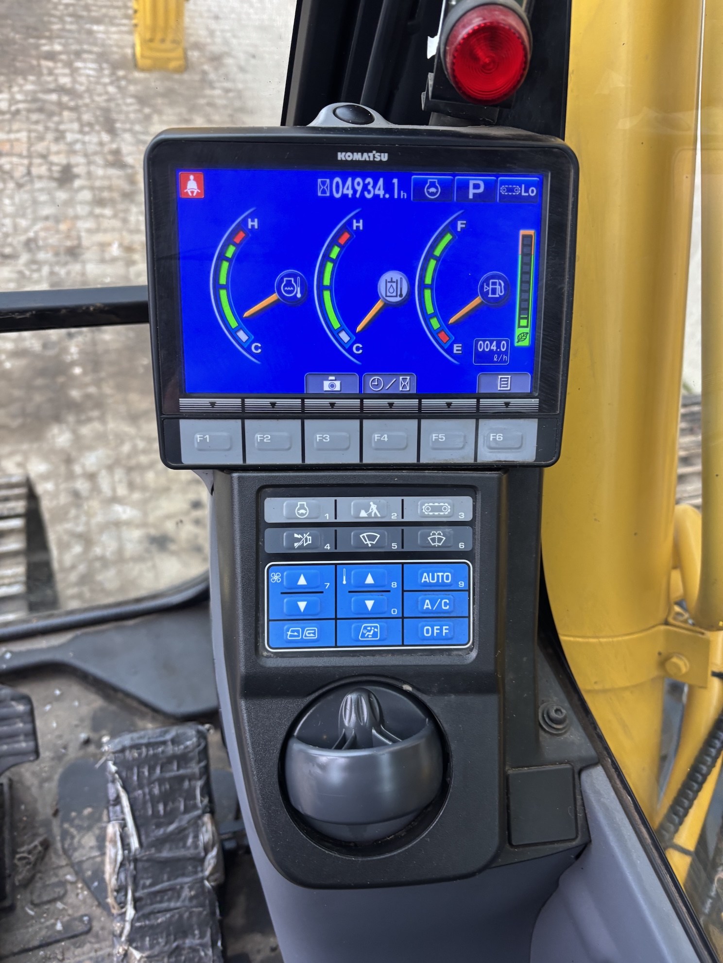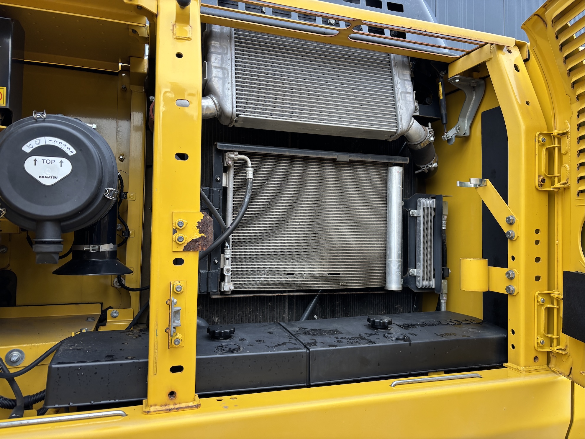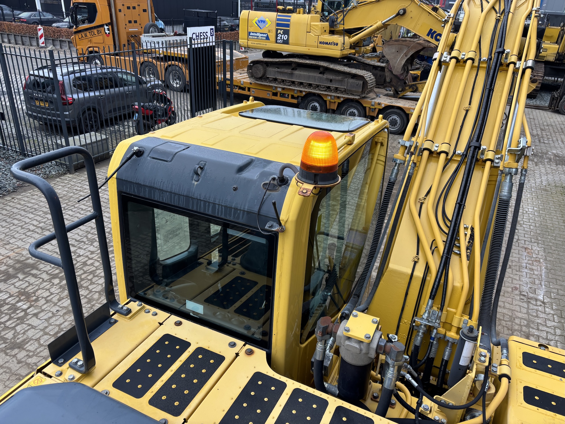 This used Komatsu PC210LC-10 is 8 years old but almost like NEW! It has always worked in an entertainment park carrying people. It has done no excavation work. The 6 cilinder water cooled turbo charged Komatsu SAA6D107E-2 diesel engine (123kW) has 4934 working hours on the service meter. Machine is equipped with hydraulics for rotation and hammer function, rear and side view camera, parts manual, electric diesel pump, NEW undercarriage, radio, airco etc..