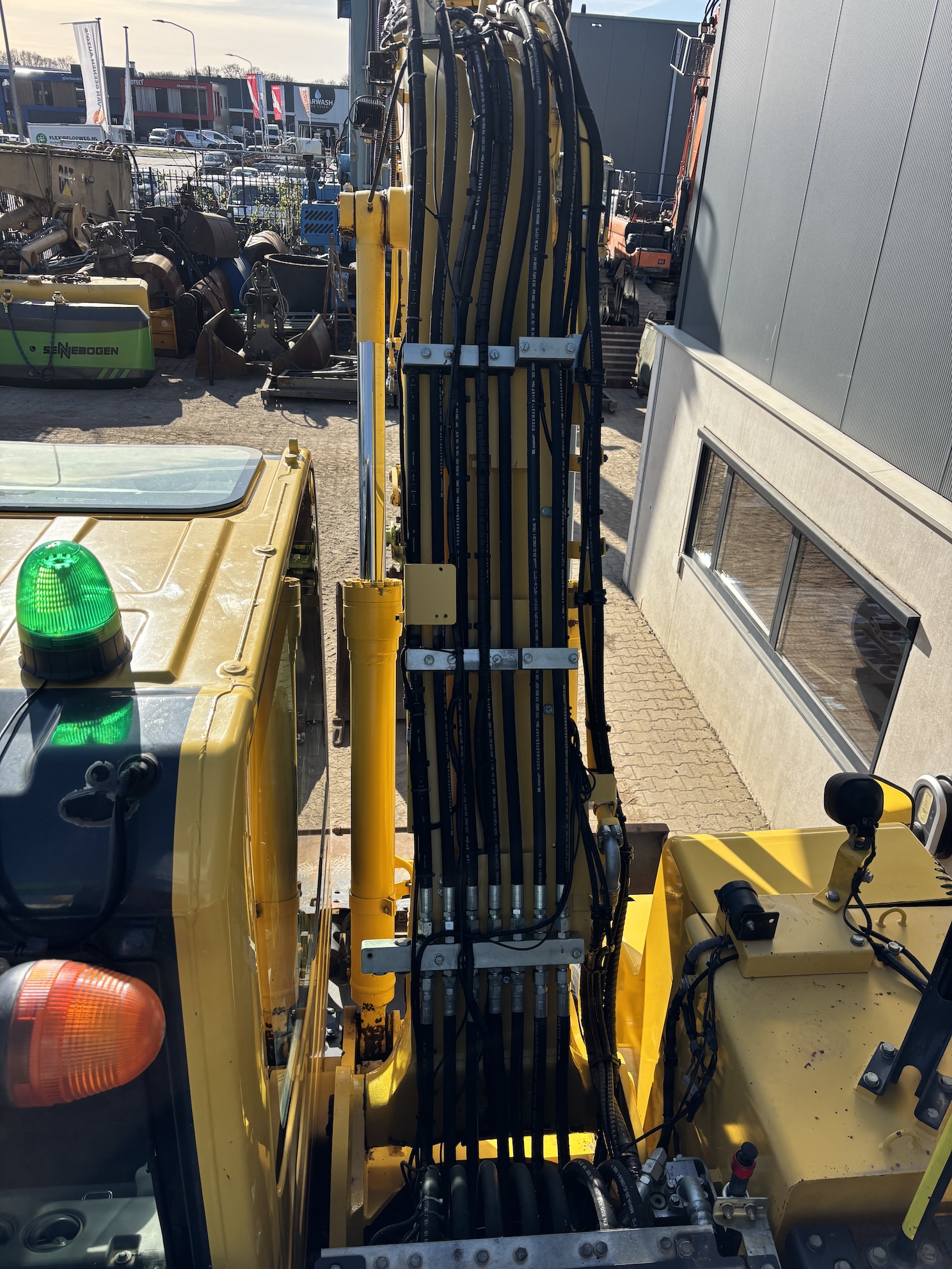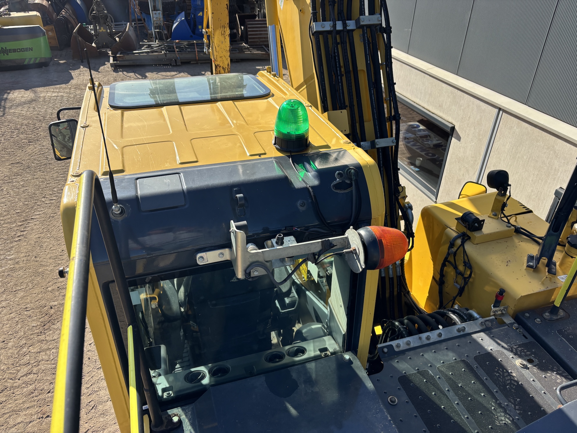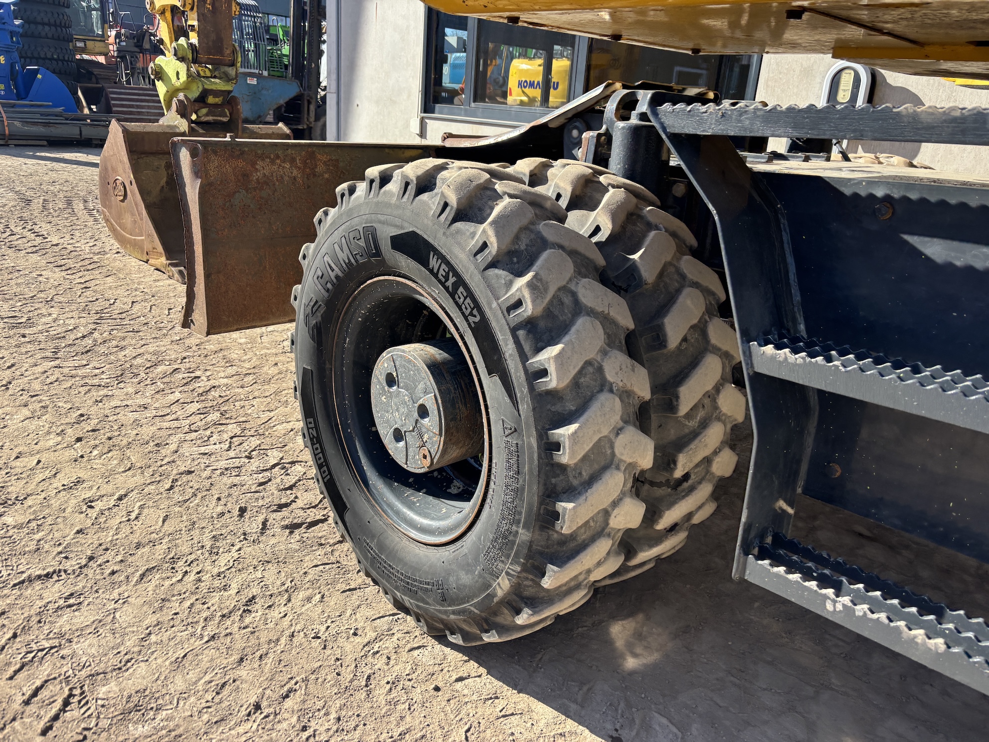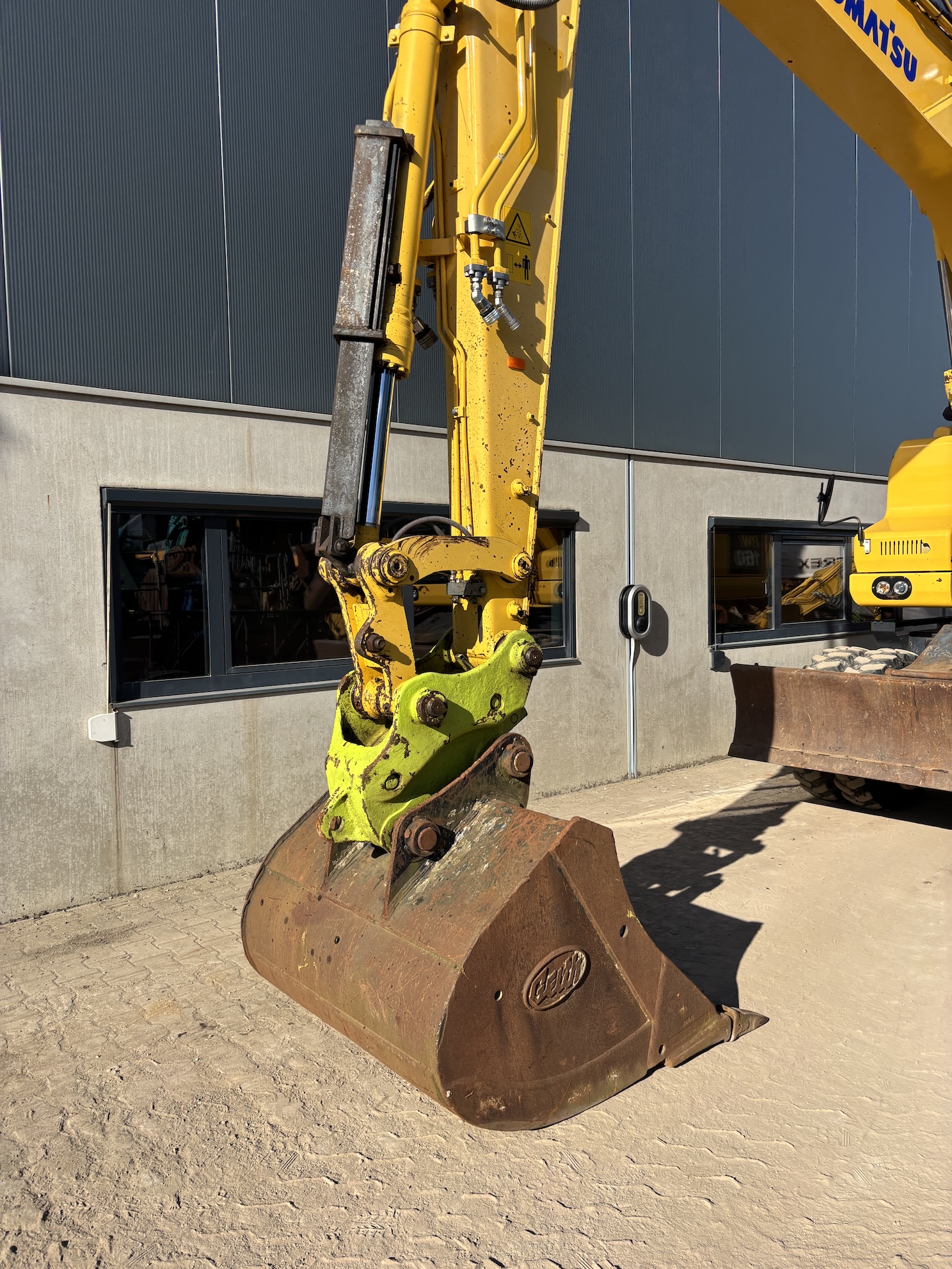 This Komatsu PW160-11 is equipped with a 4 cilinder water cooled turbo charged Komatsu SAA4D107E-3 (110kW) dieseel engine with just 6521 working hours on the service meter. Hydraulic quick hitch, teeth bucket, dozerblade, outriggers, boxing ring, additional work lights, all round camera system, cilinder guard, airco, radio etc.
