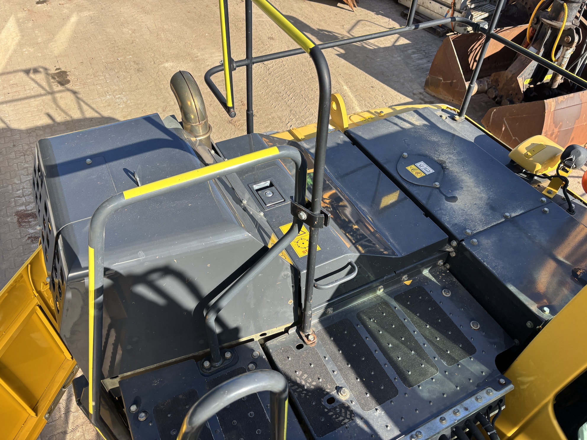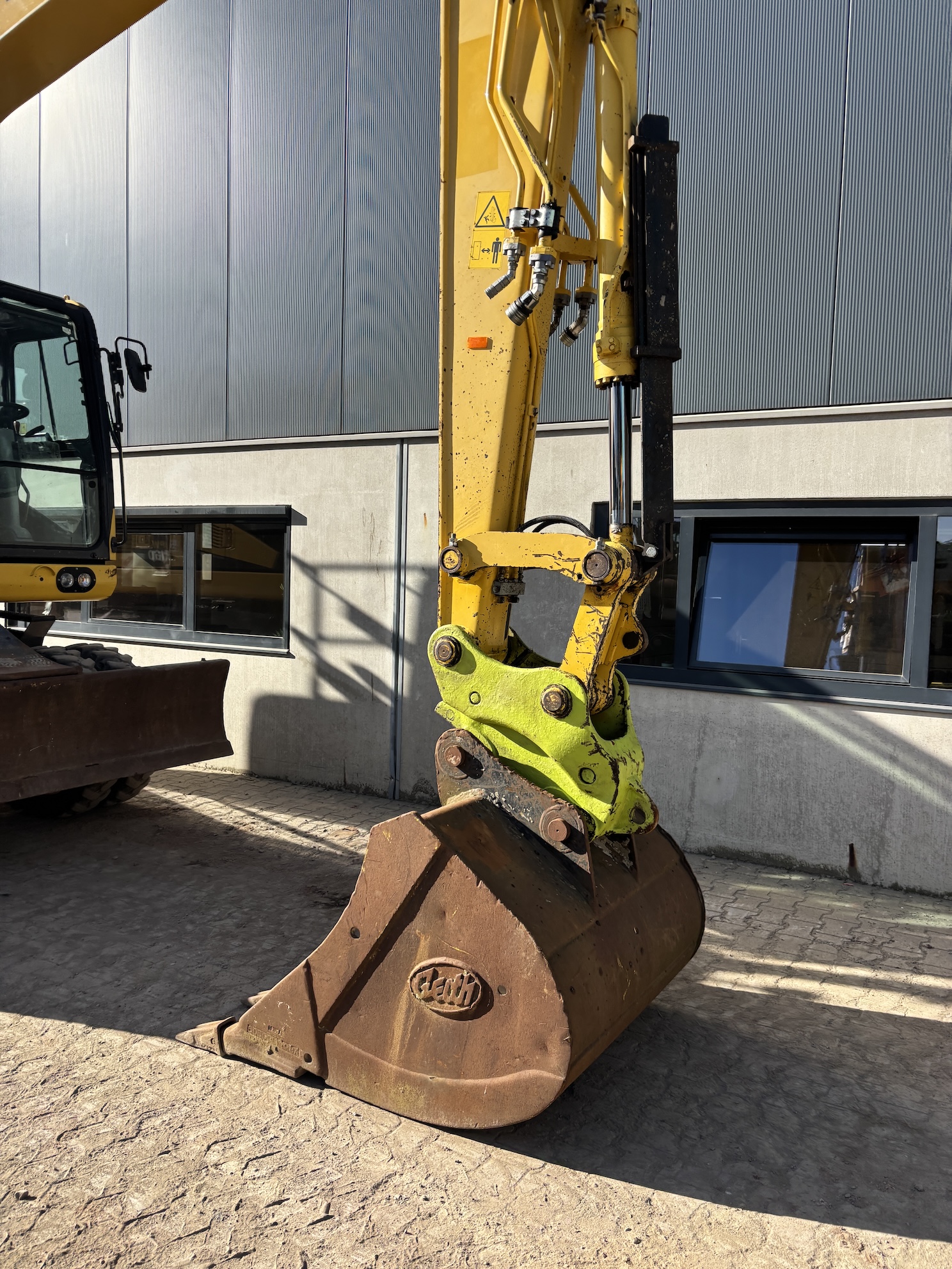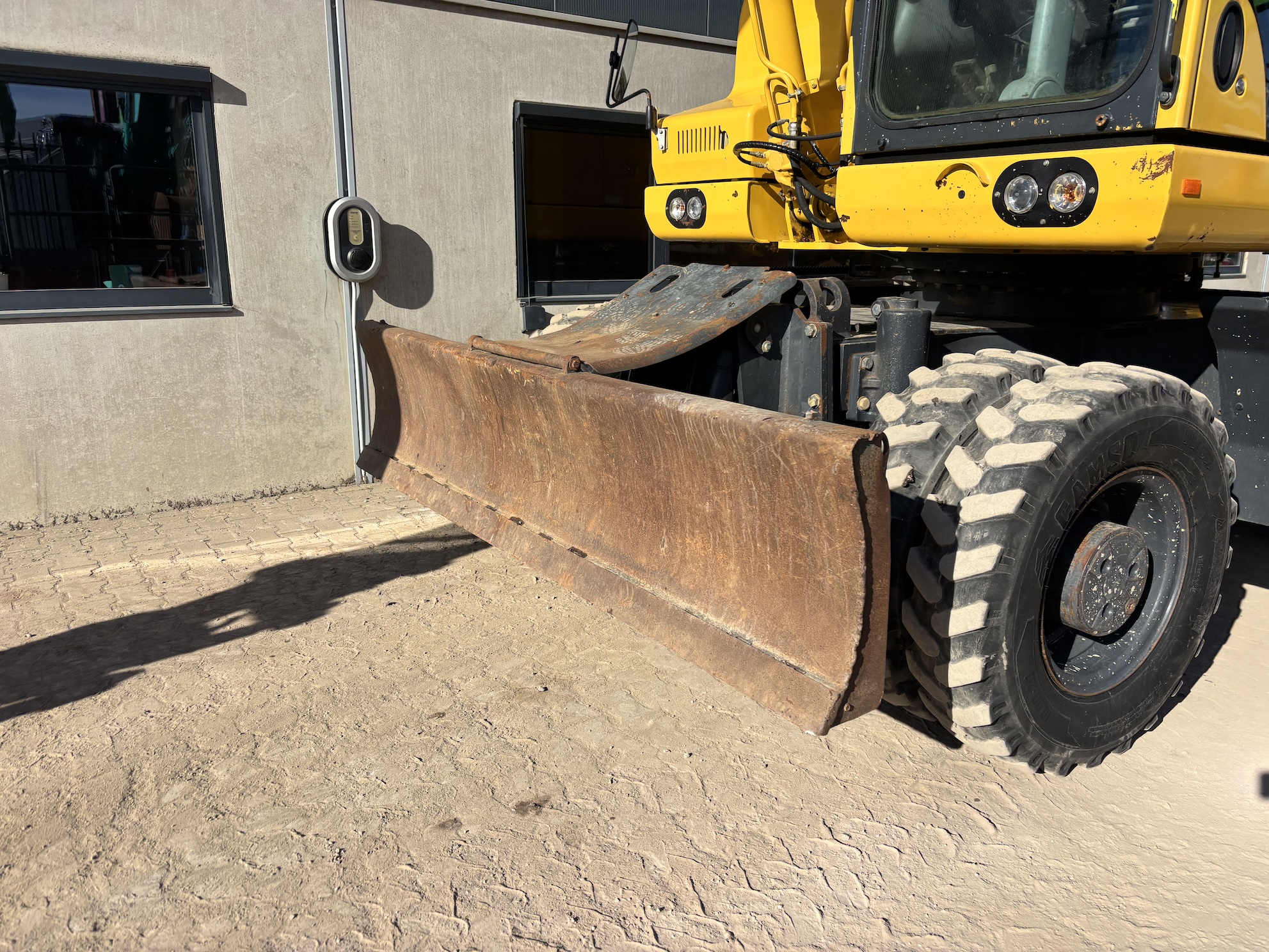 This Komatsu PW160-11 is equipped with a 4 cilinder water cooled turbo charged Komatsu SAA4D107E-3 (110kW) dieseel engine with just 6521 working hours on the service meter. Hydraulic quick hitch, teeth bucket, dozerblade, outriggers, boxing ring, additional work lights, all round camera system, cilinder guard, airco, radio etc.