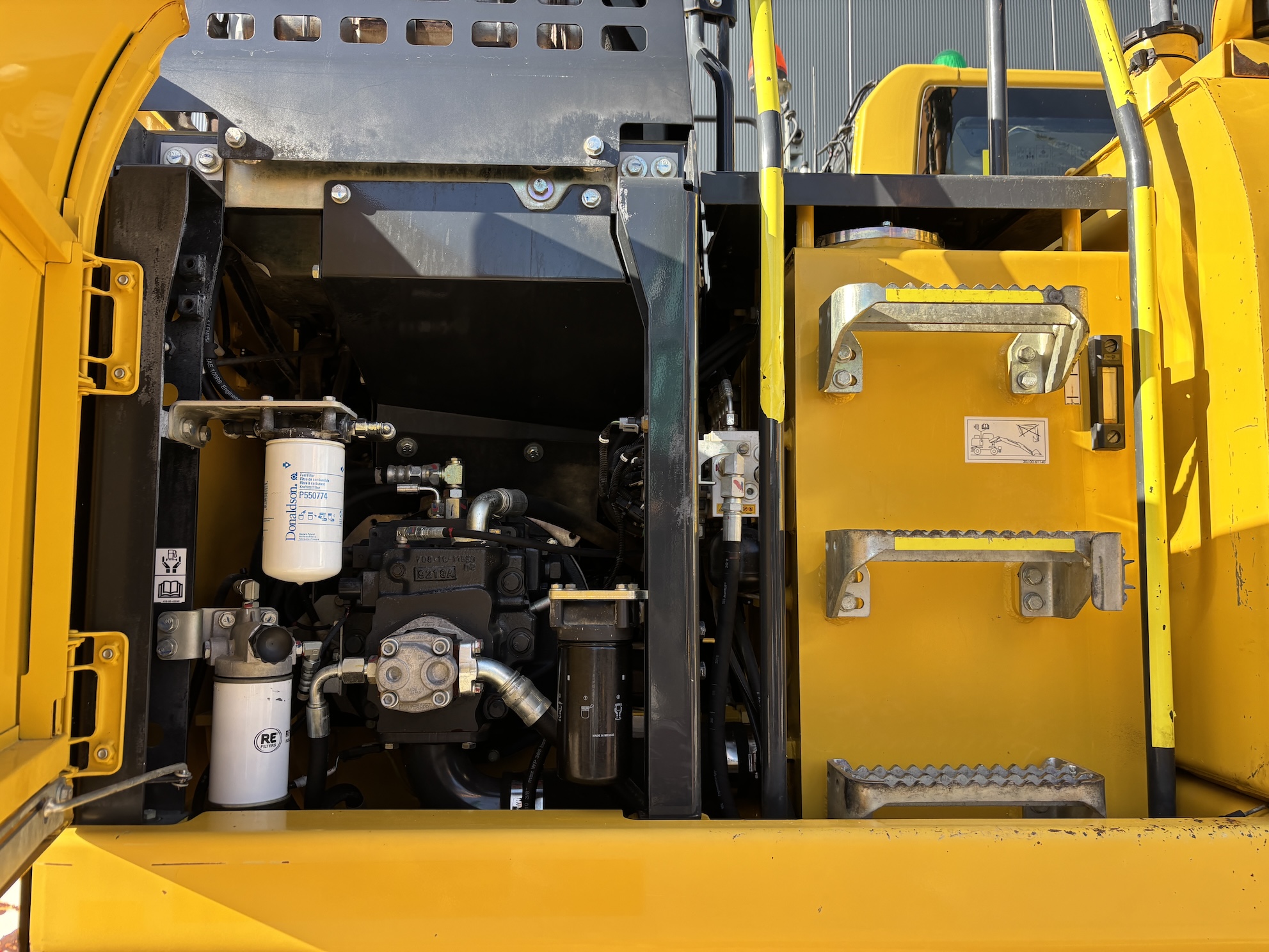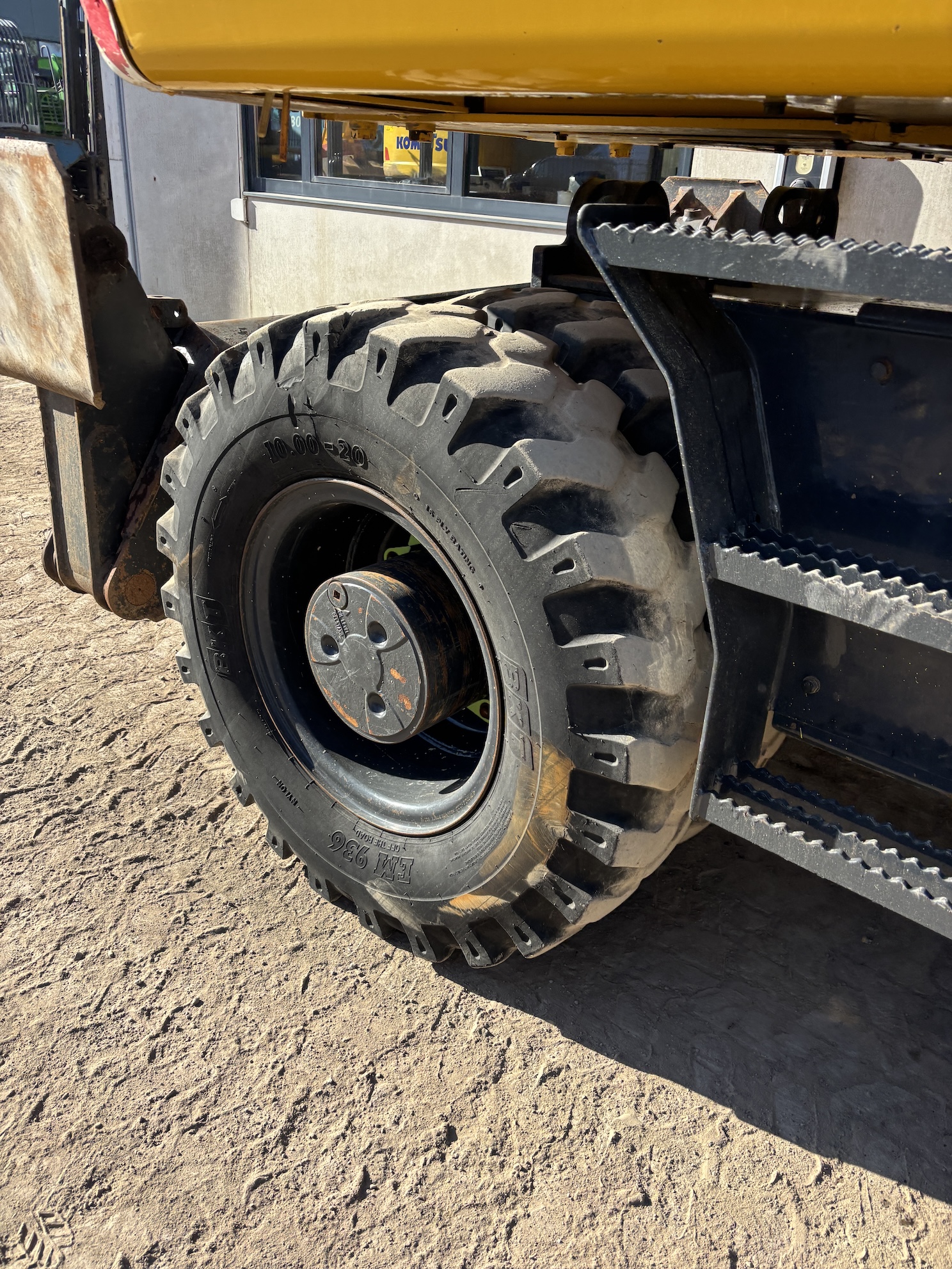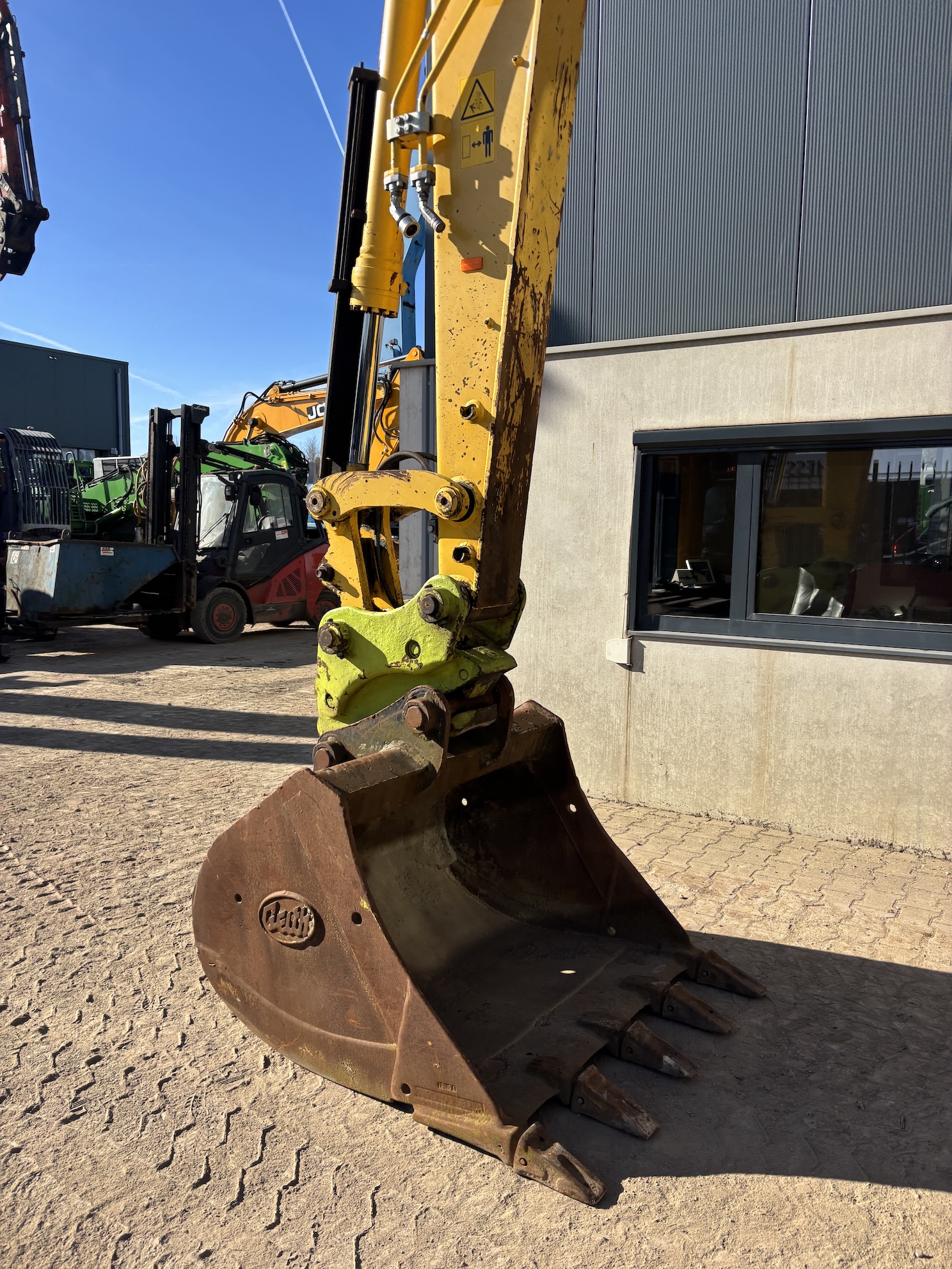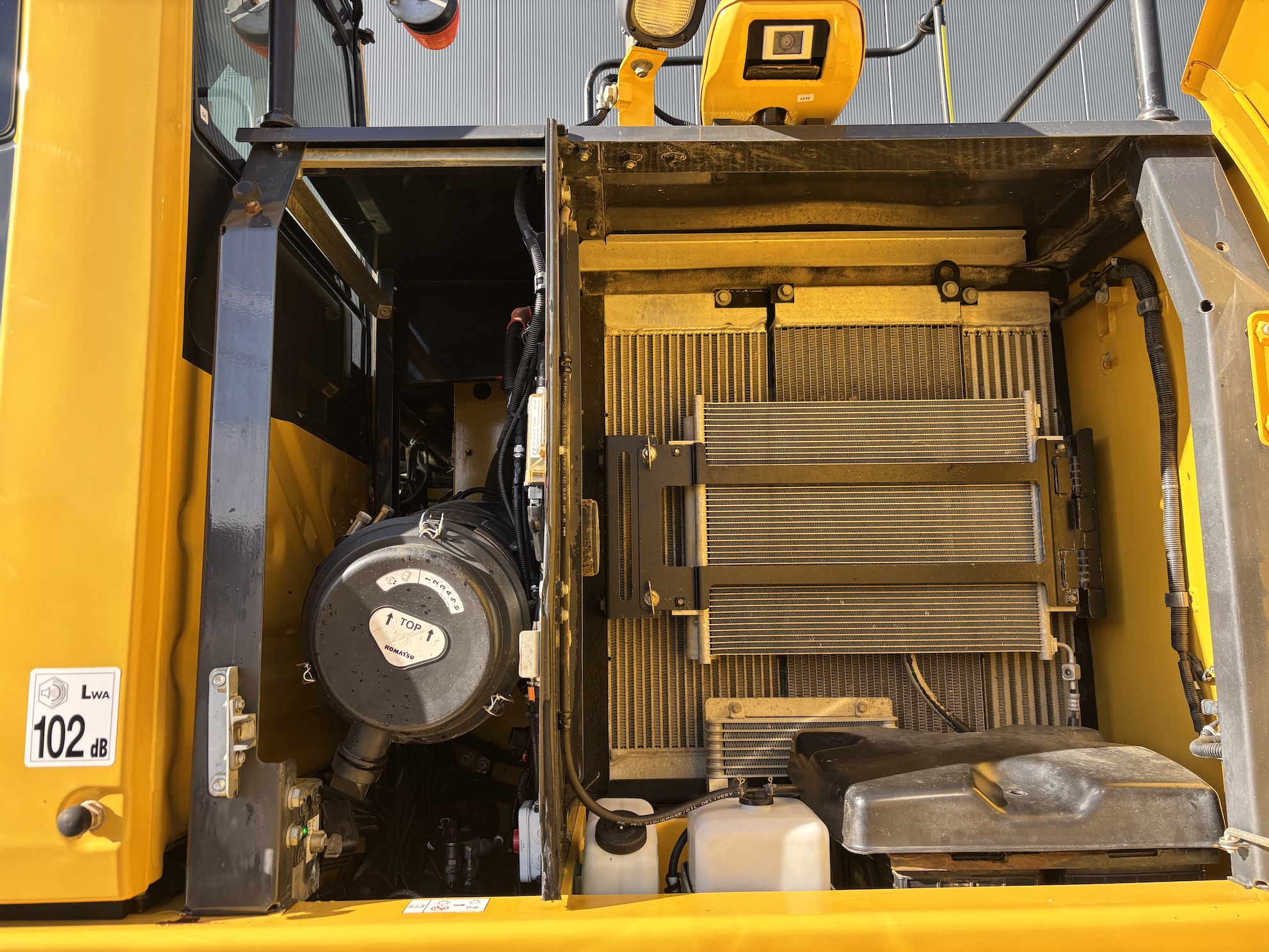 This Komatsu PW160-11 is equipped with a 4 cilinder water cooled turbo charged Komatsu SAA4D107E-3 (110kW) dieseel engine with just 6521 working hours on the service meter. Hydraulic quick hitch, teeth bucket, dozerblade, outriggers, boxing ring, additional work lights, all round camera system, cilinder guard, airco, radio etc.